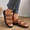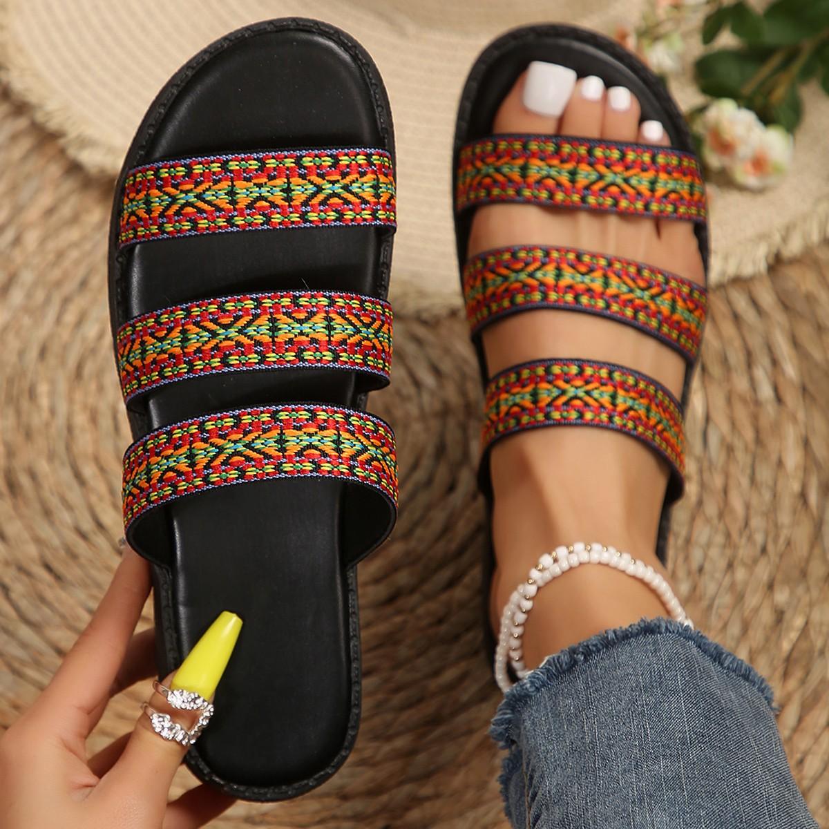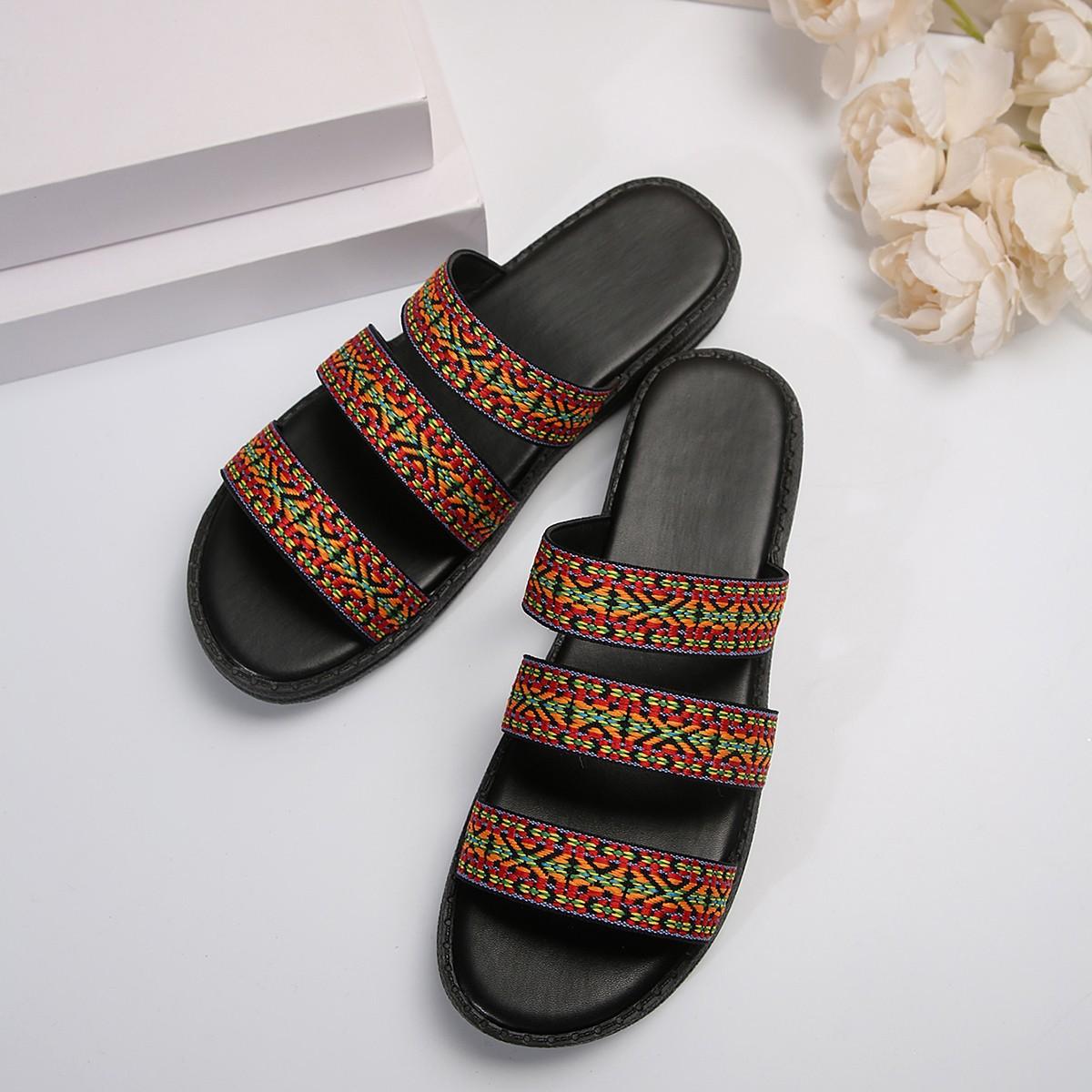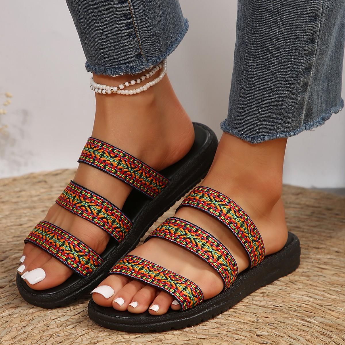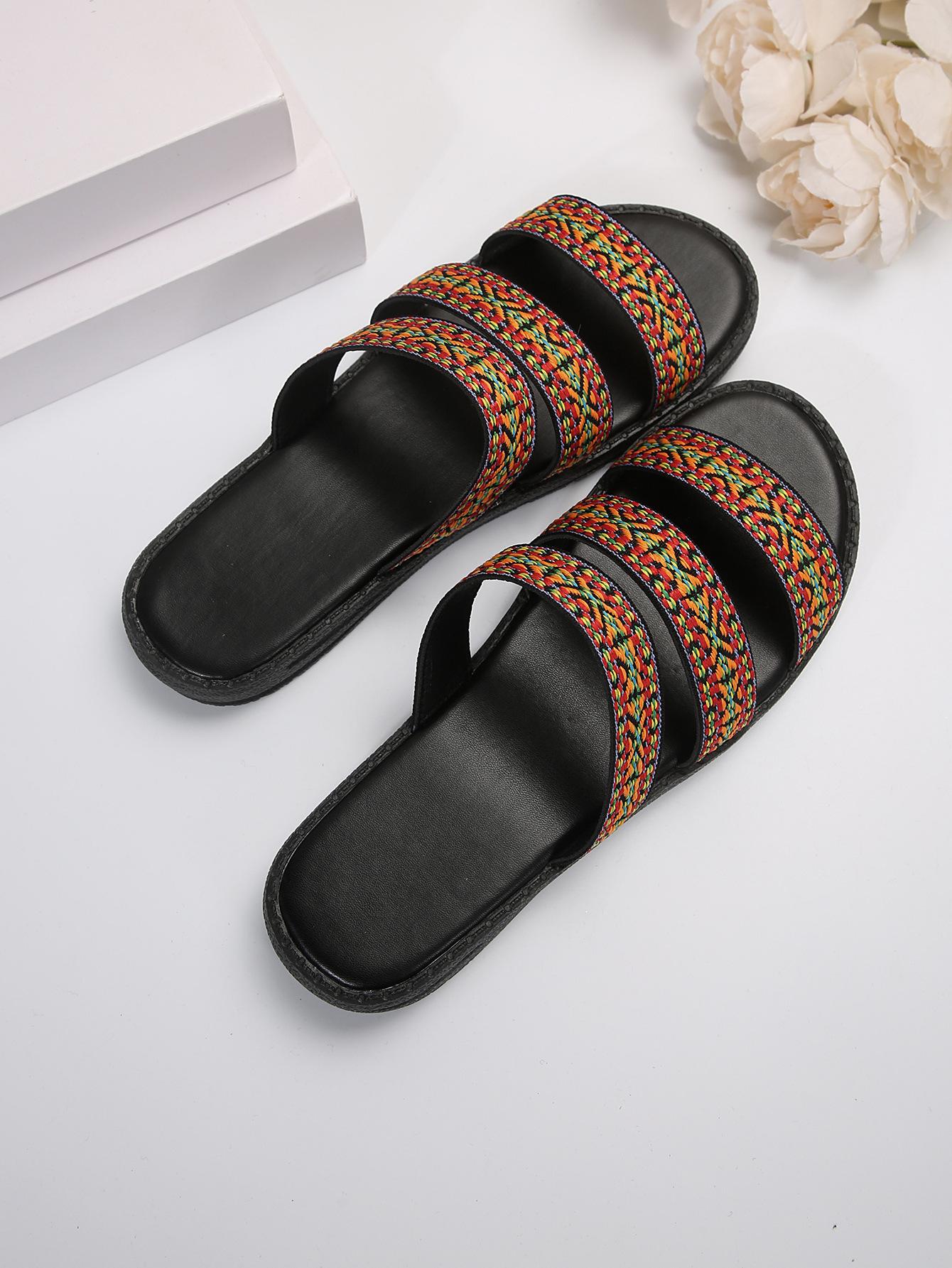 Verano Comercio Exterior Talla Grande Estilo Étnico Tira Ancha Multicolor Tejida Sandalias de Playa Slip-on Zapatos de Mujer