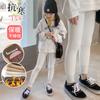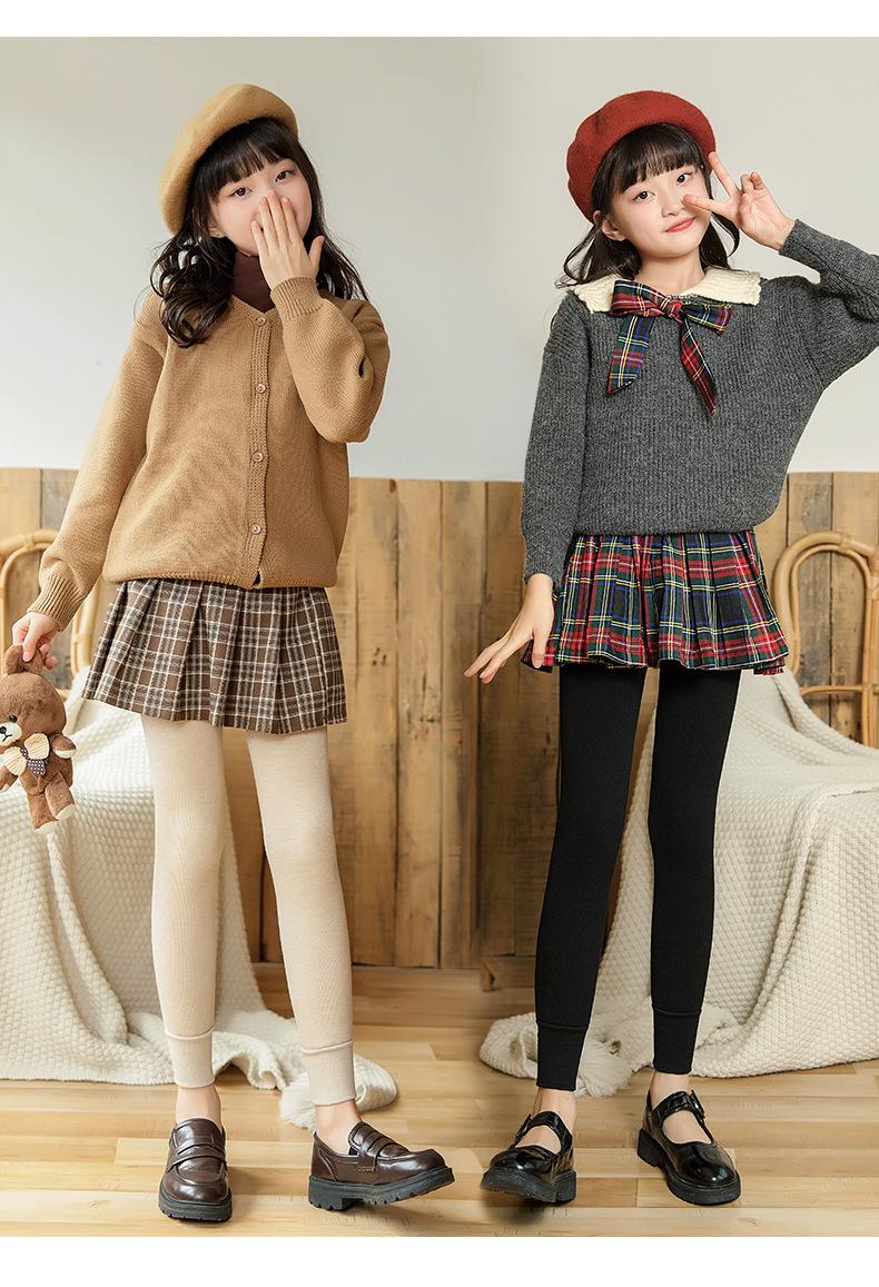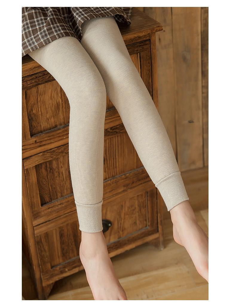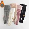 Leggings para bebés y niños, otoño e invierno, con forro polar, gruesos, para niñas, de color liso, con rayas verticales, cálidos para niñas