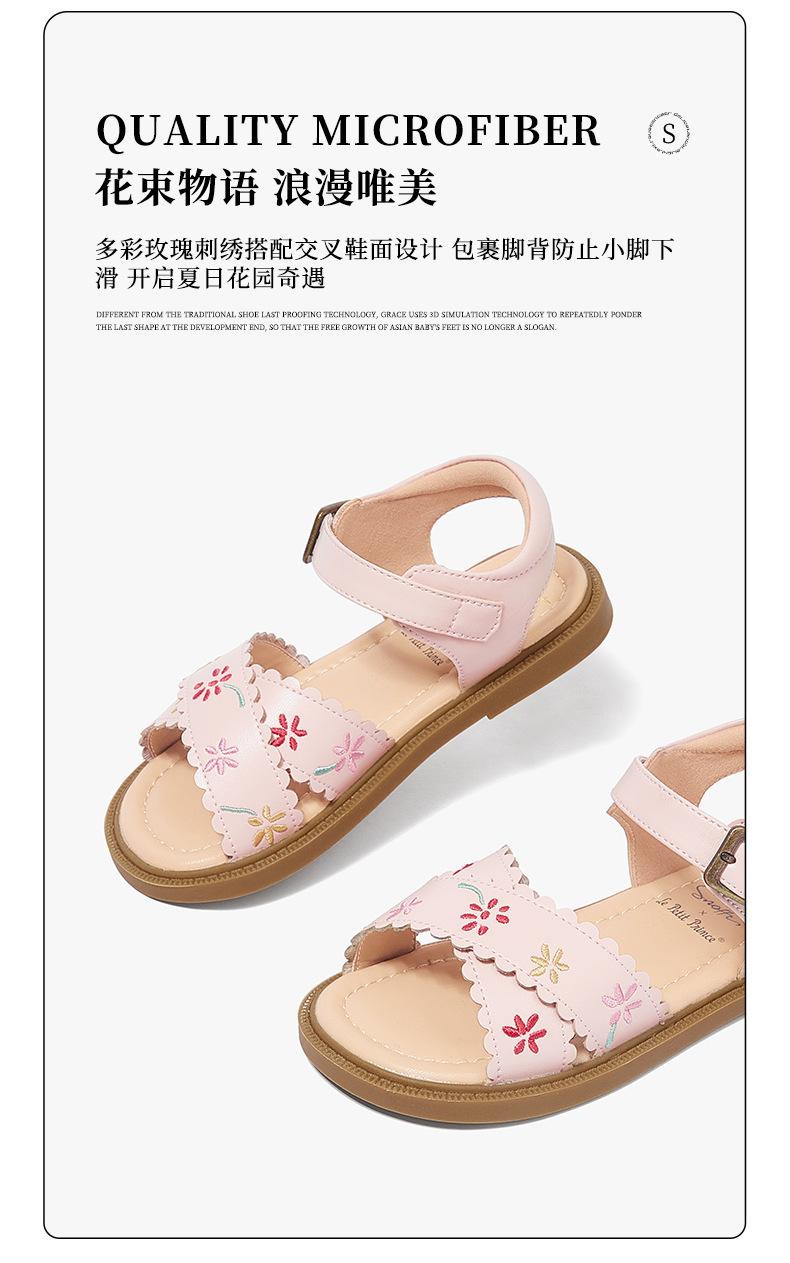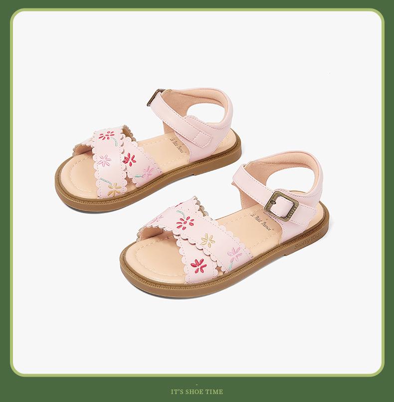 Zapatos Snafi Rose Sandalias para Niños Zapatos Bordados para Niñas Verano Nuevas Sandalias de Punta Abierta