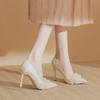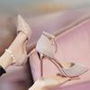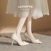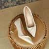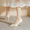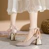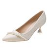 Zapatos de boda de estilo francés color champán para mujer, elegantes, de alta gama, con perlas, para ceremonias adultas y damas de honor, tacones altos.