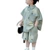 Traje de Verano para Niño 2024 Nuevo Niño Guapo Verano Estilo Delgado Camisa para Niños Conjunto de Dos Piezas de Manga Corta