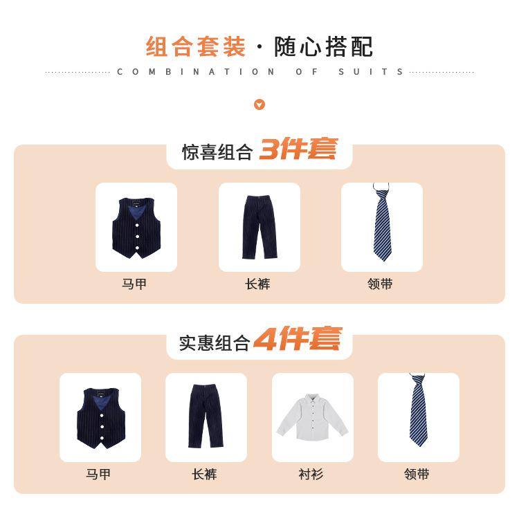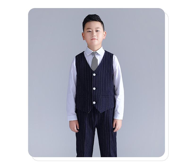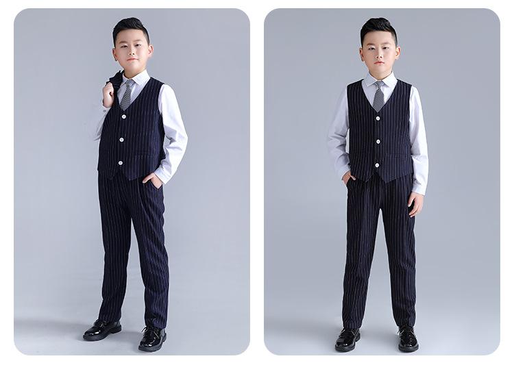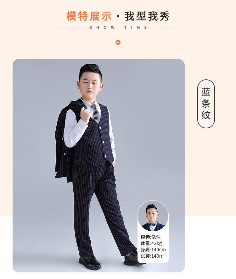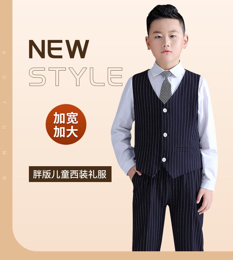 Traje gordo para niños, bebé guapo, conjunto de chaleco a rayas, una generación de versión gorda, vestido de actuación para discurso de anfitrión de escenario