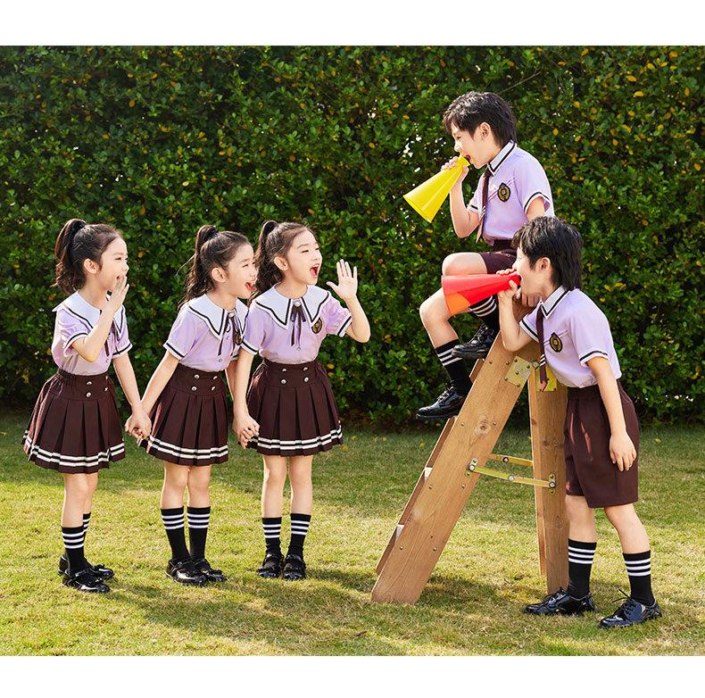 Uniforme Escolar Jk Estudiante de Primaria Verano Estilo Preppy Uniforme de Jardín de Niños Verano Niños Uniforme de Clase de Primer Grado Conjunto de Dos Piezas