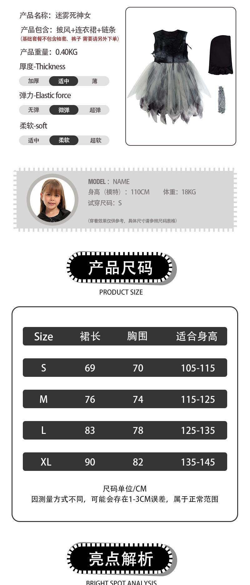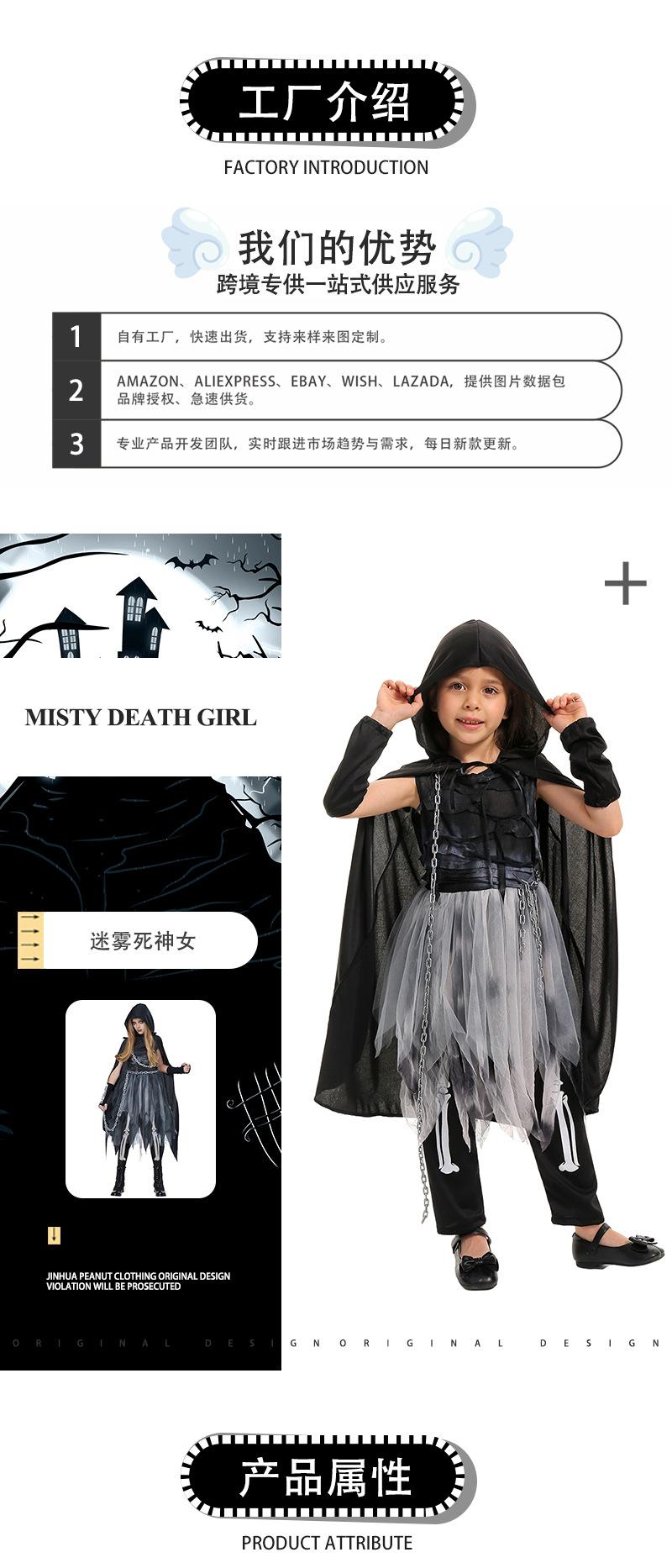 Nuevo disfraz de Halloween para niña de la muerte, disfraz de cosplay para niños de jardín de infantes, disfraz de actuación en el escenario.
