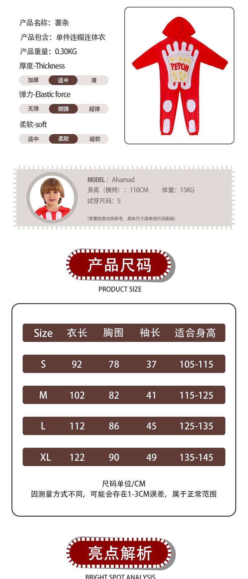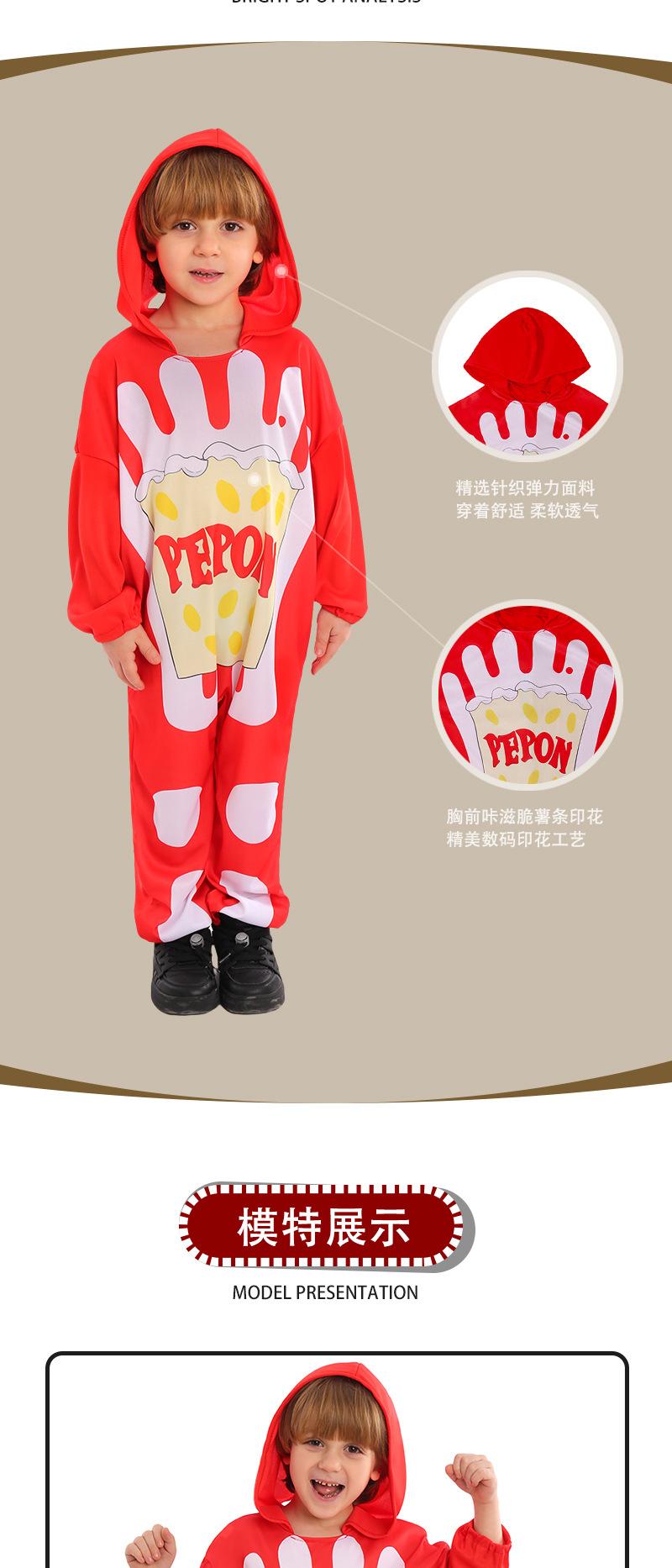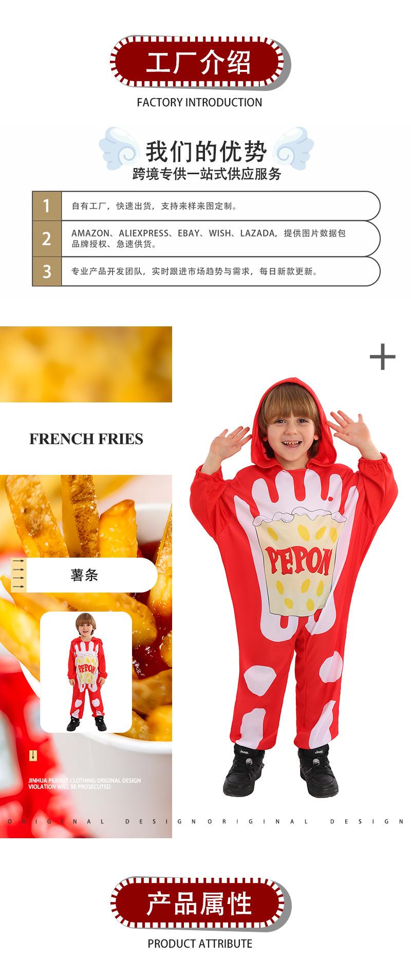 2024 Nuevo disfraz de comida de Halloween, disfraz de papas fritas, disfraz de juego de rol, disfraz de actuación escénica escolar para niños