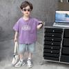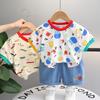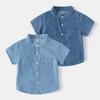 Traje de verano para niño 2024 Verano nuevo para niños camiseta de manga corta con solapa a rayas conjunto de tirantes finos de mezclilla para bebé