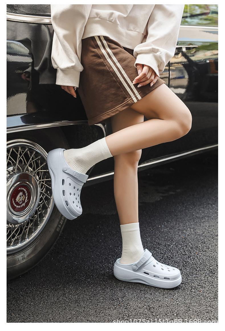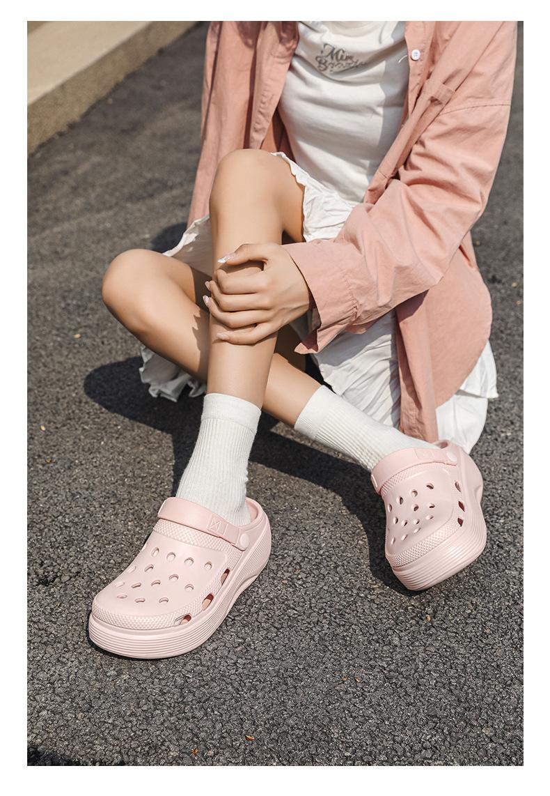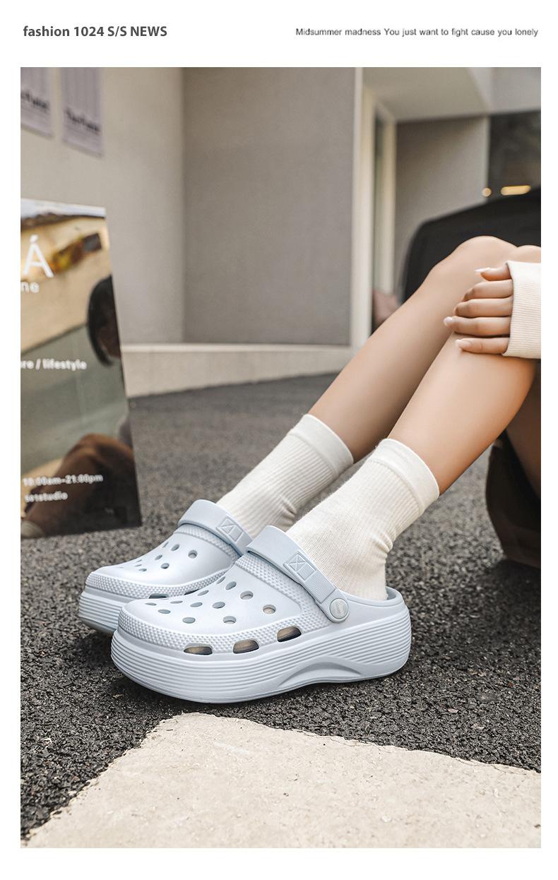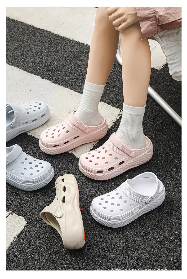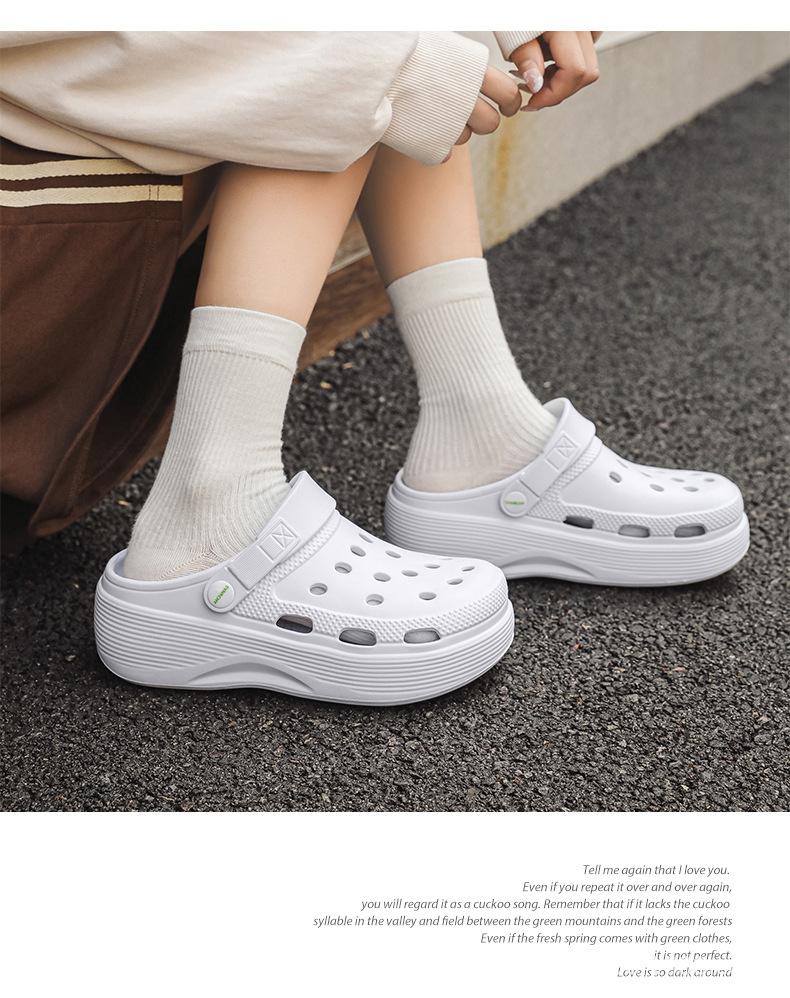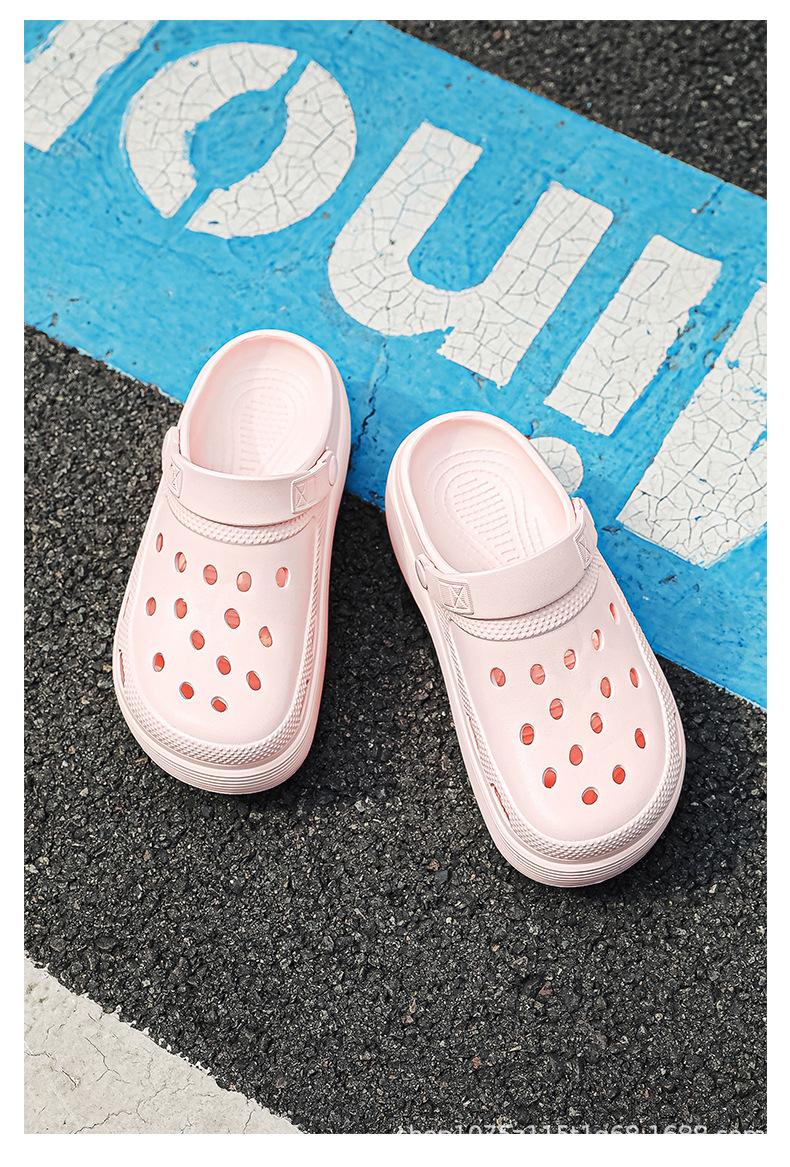Zapatos de Agujeros para Mujer Verano Nuevo Color Sólido Dos Usos Exterior Baotou Resistentes al Desgaste Suela Gruesa Antideslizantes Zapatos Zapatillas de Jardín