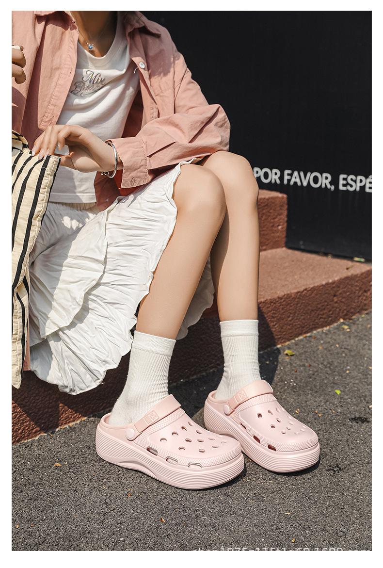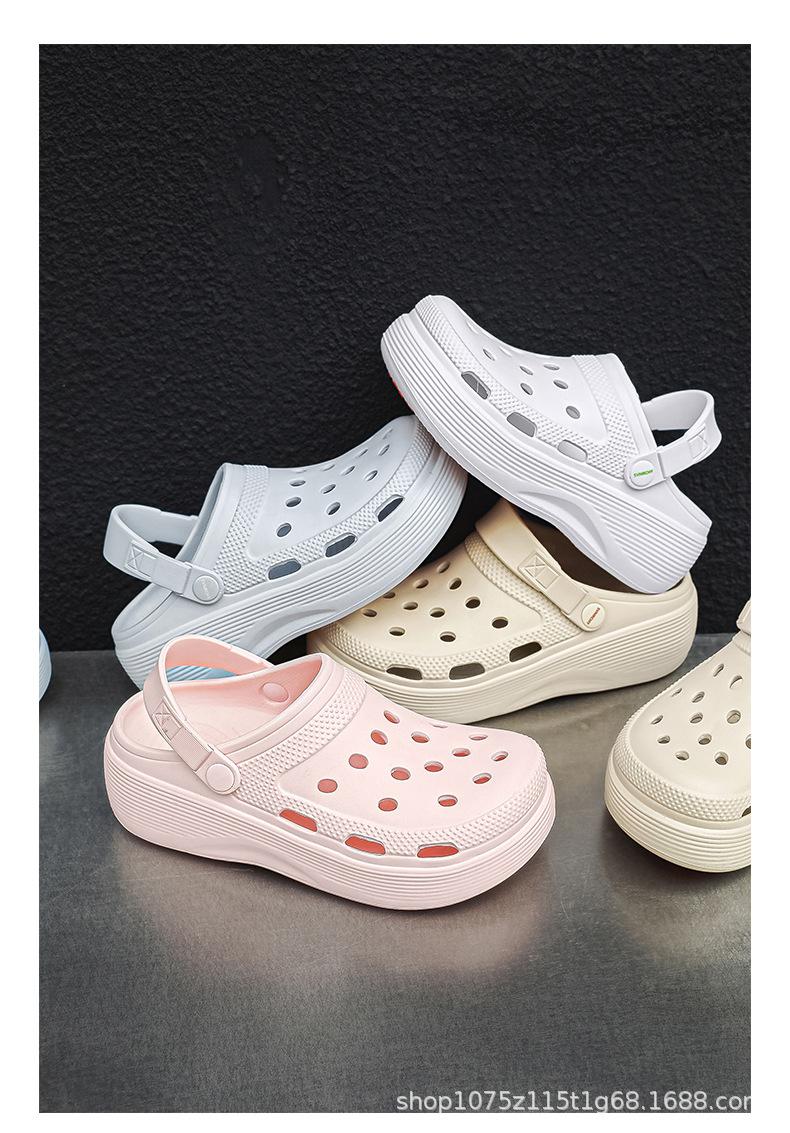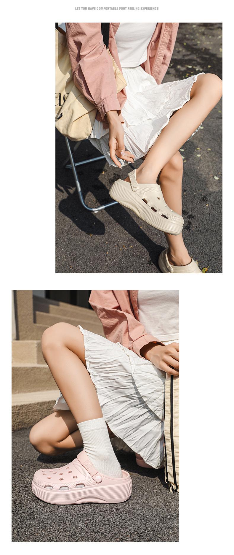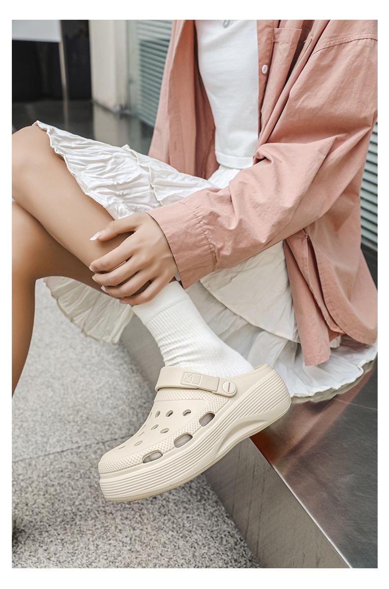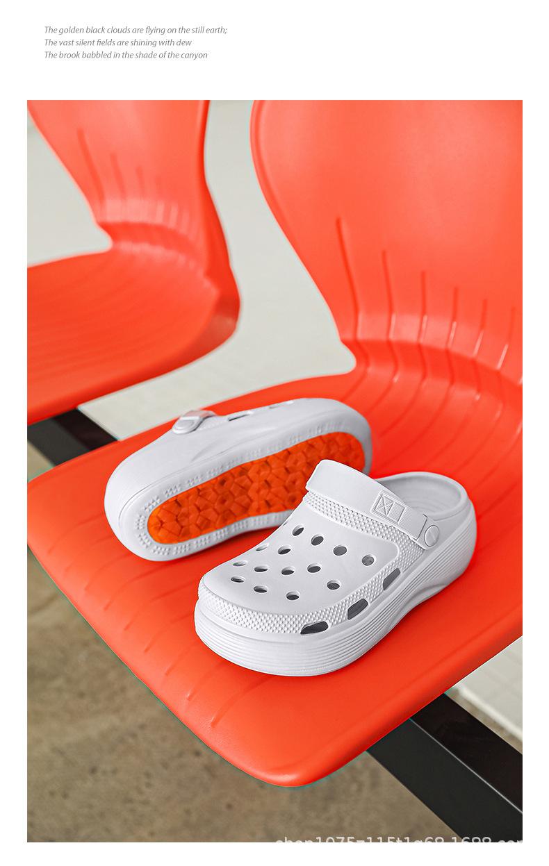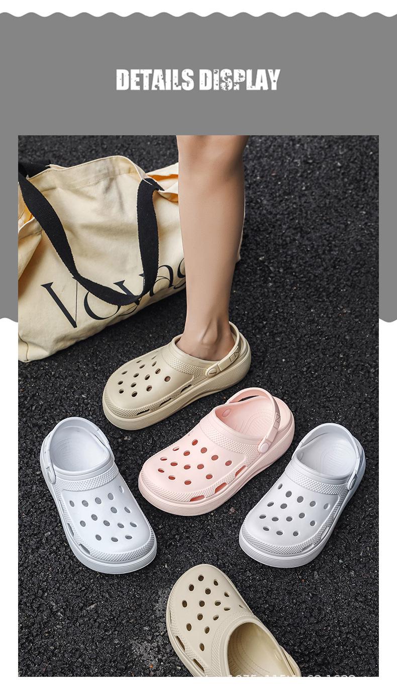 Zapatos de Agujeros para Mujer Verano Nuevo Color Sólido Dos Usos Exterior Baotou Resistentes al Desgaste Suela Gruesa Antideslizantes Zapatos Zapatillas de Jardín