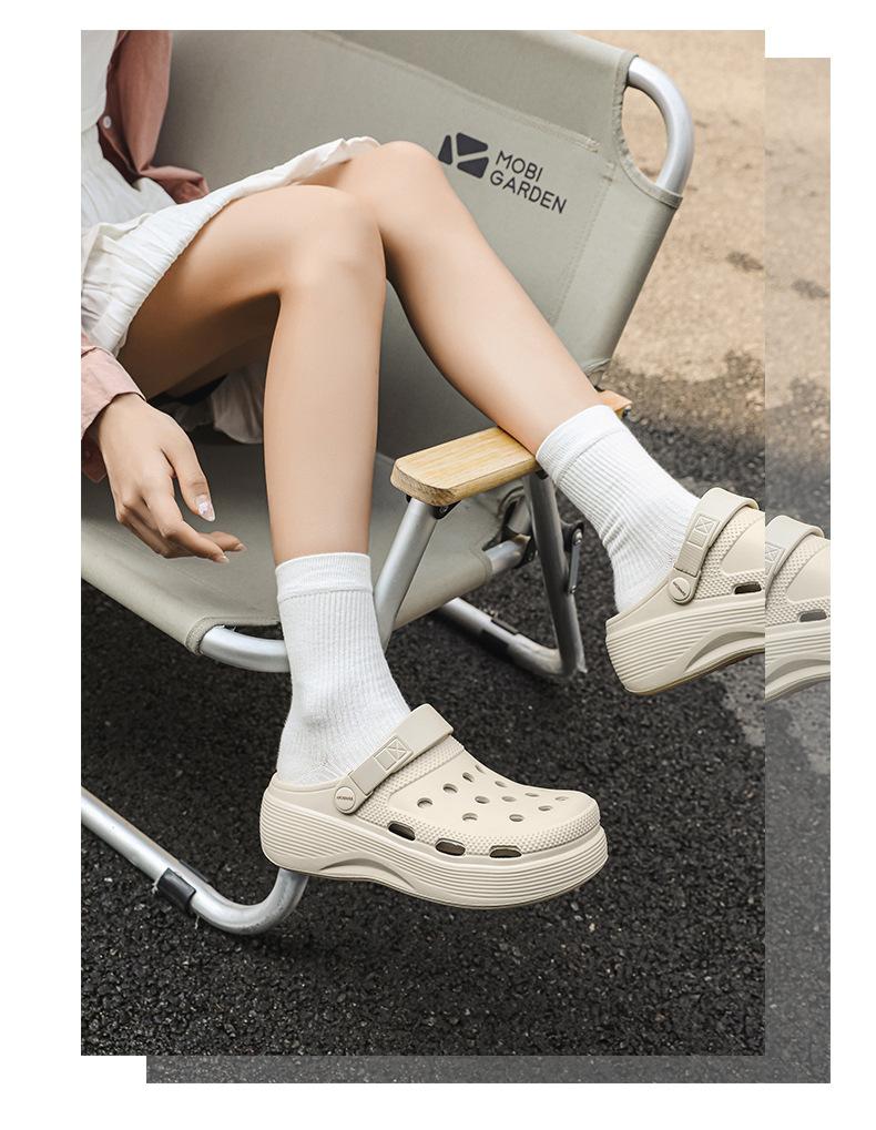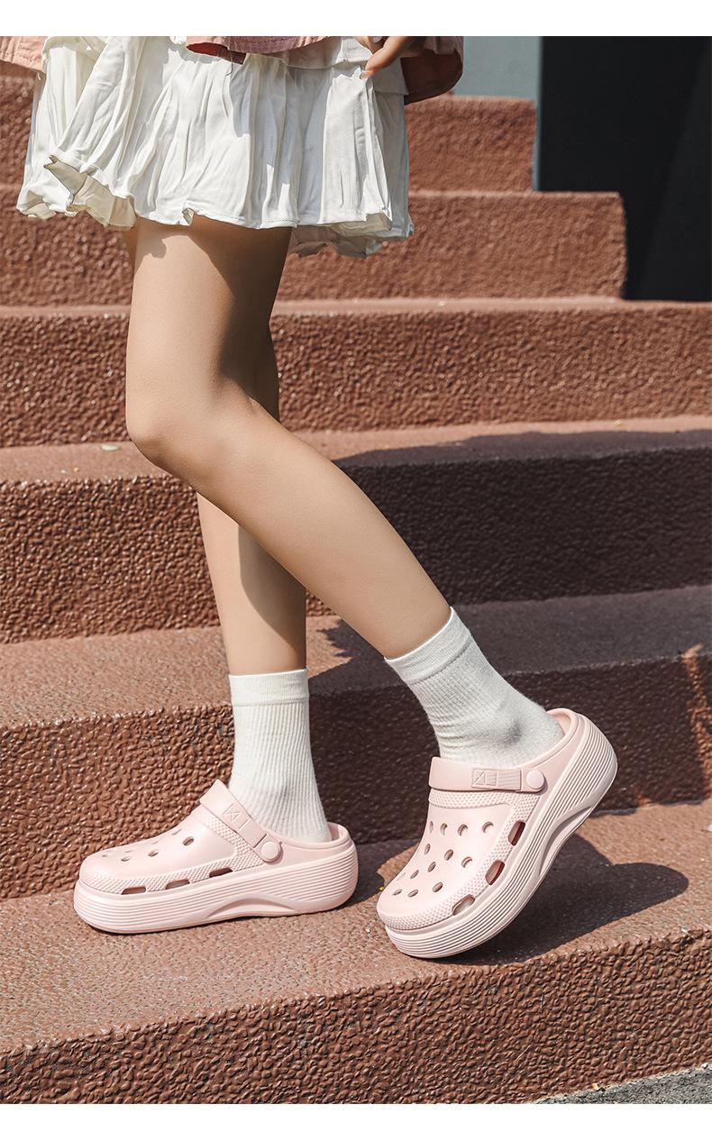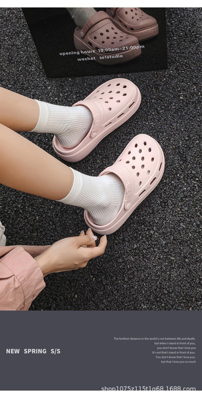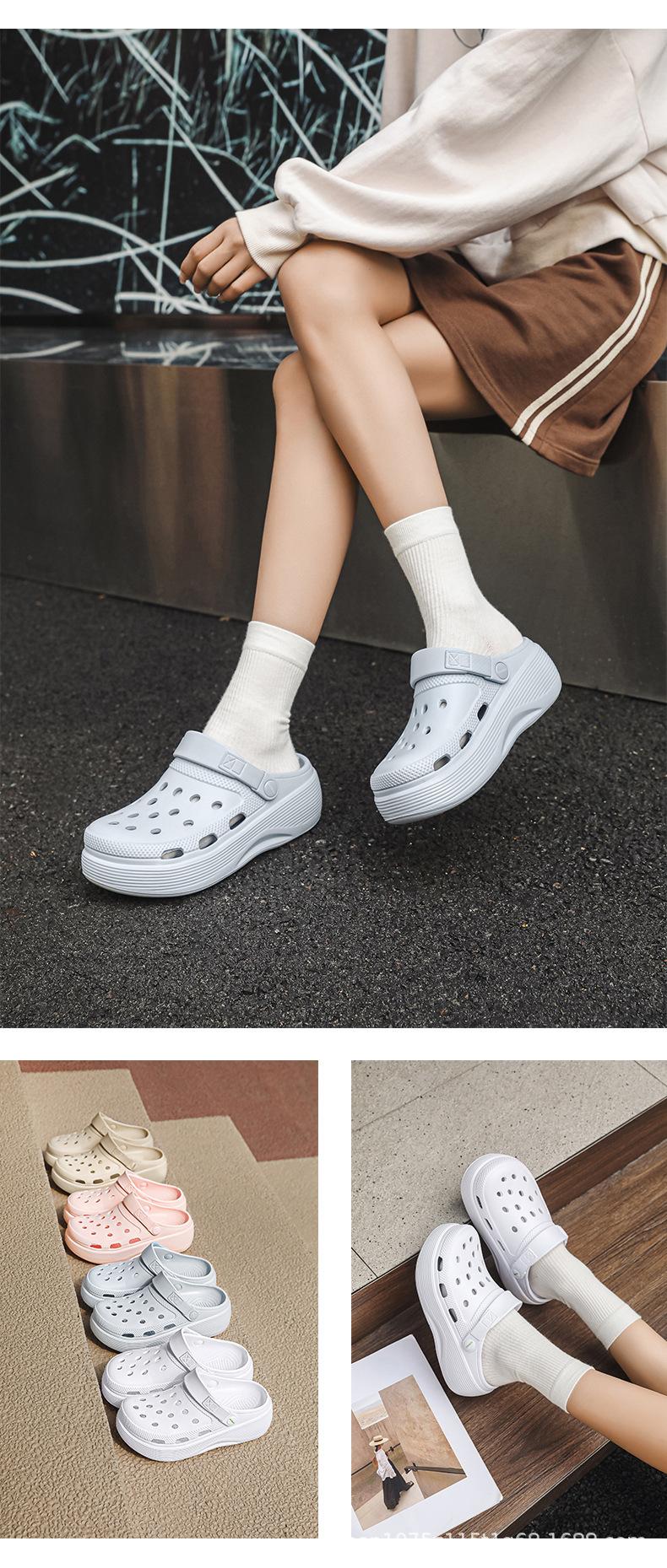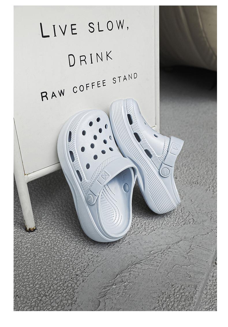 Zapatos de Agujeros para Mujer Verano Nuevo Color Sólido Dos Usos Exterior Baotou Resistentes al Desgaste Suela Gruesa Antideslizantes Zapatos Zapatillas de Jardín