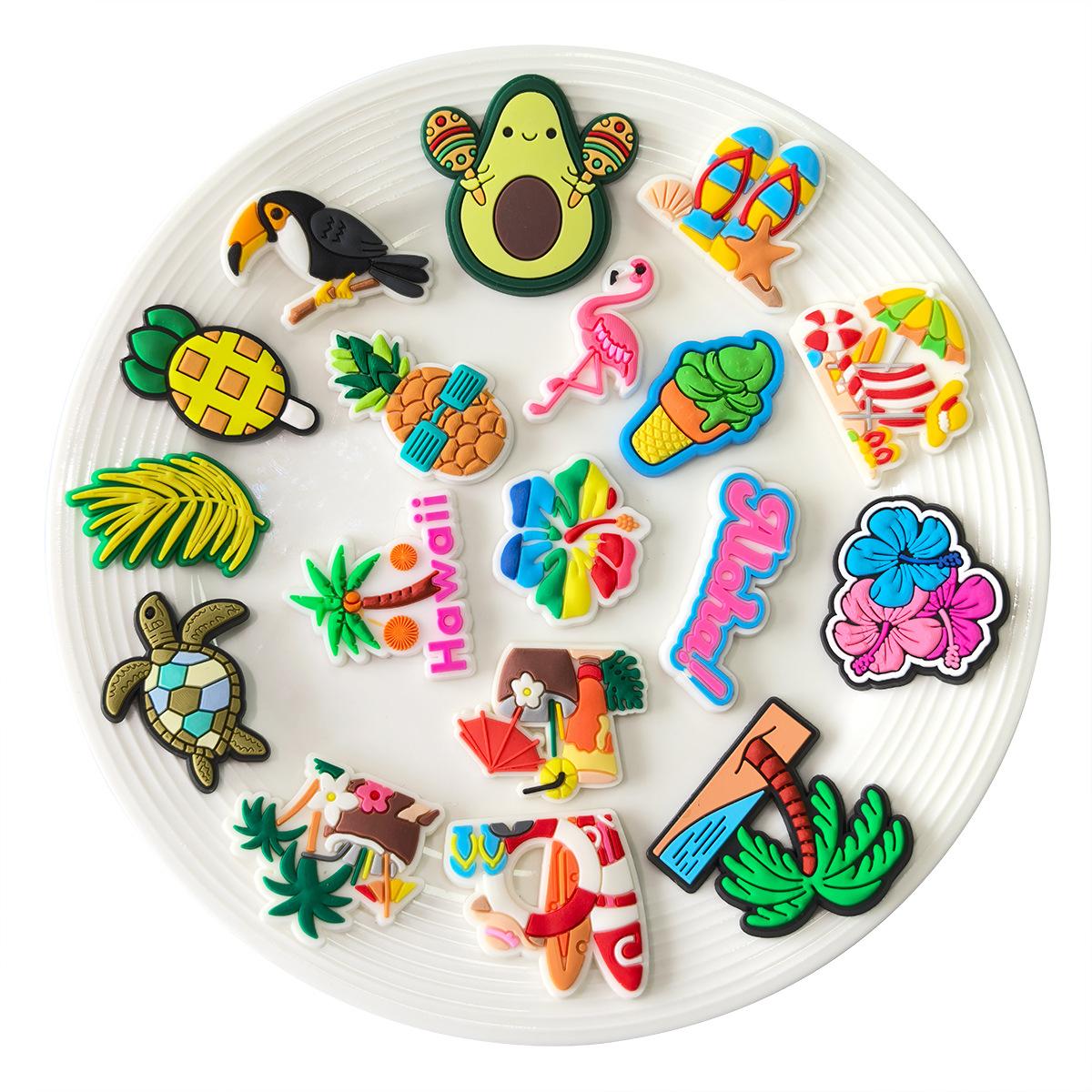 Serie de Verano Dibujos Animados Zapatos de Agujeros Zapatos Flor Hebilla de Zapato DIY Removible PVC Plástico Blando Gota Zapatos de Jardín Accesorios Decorativos