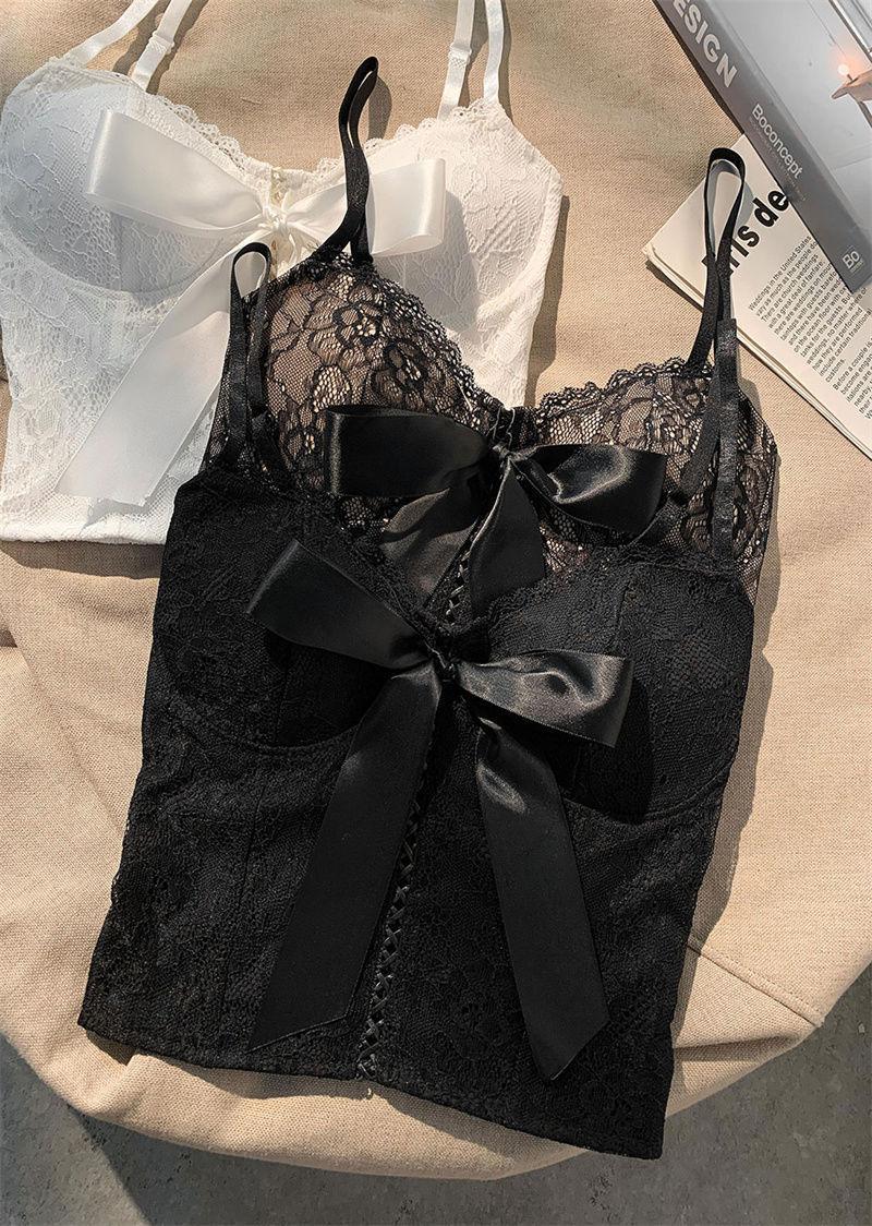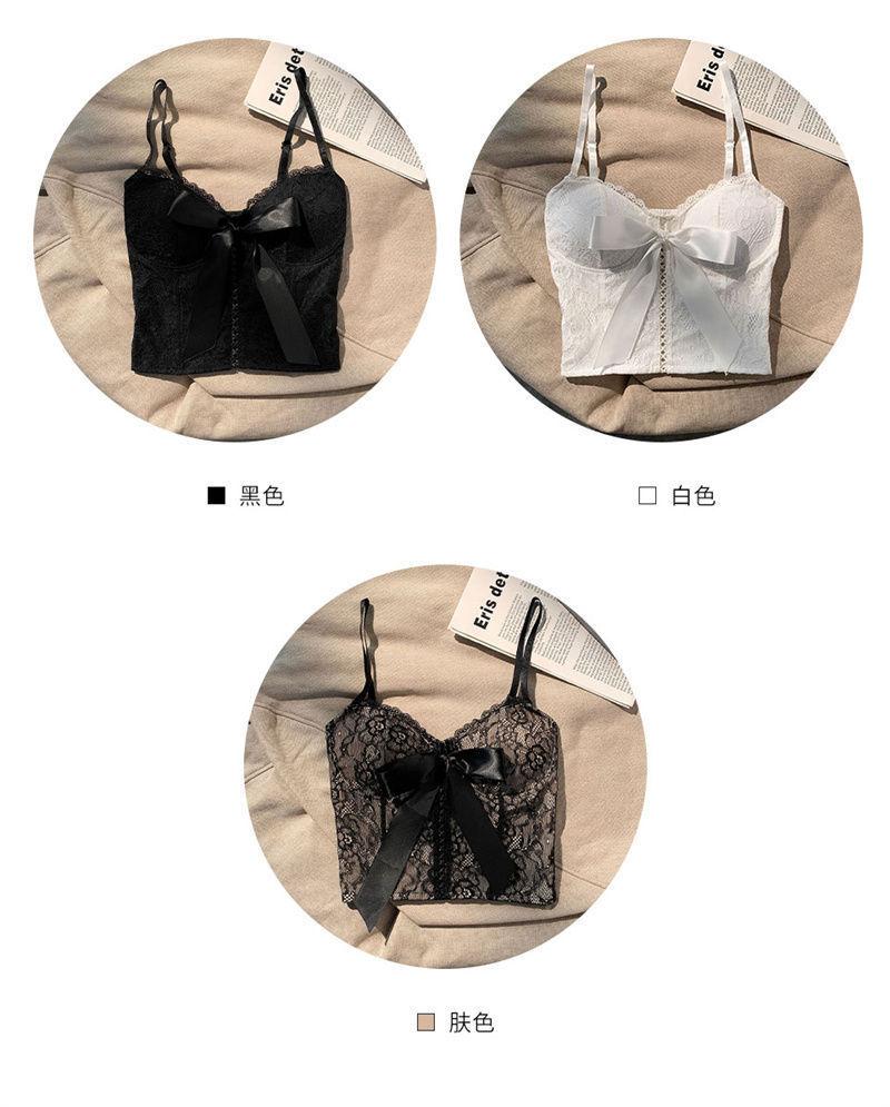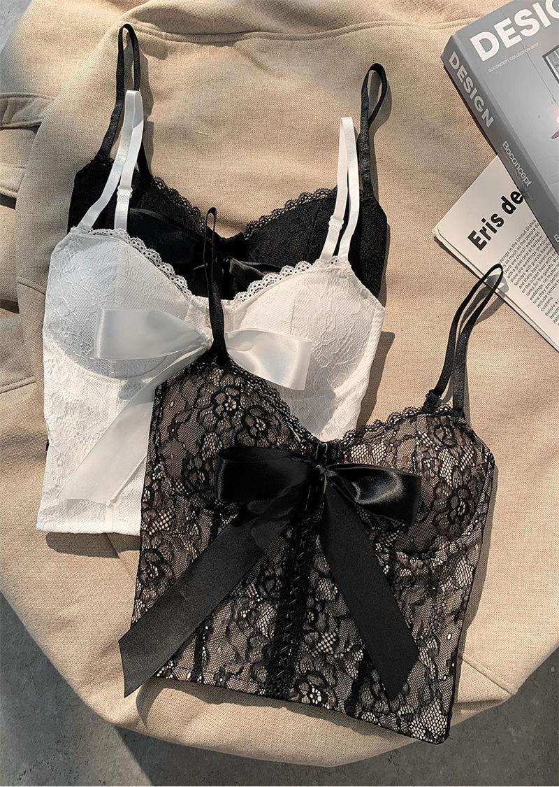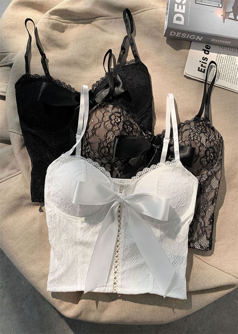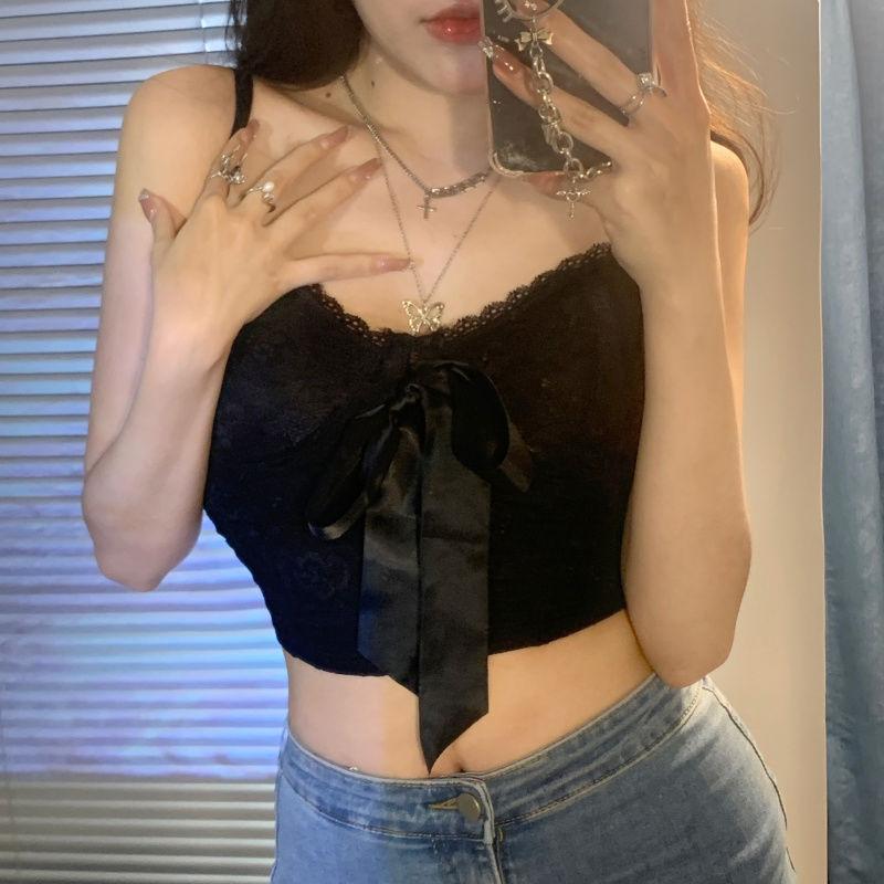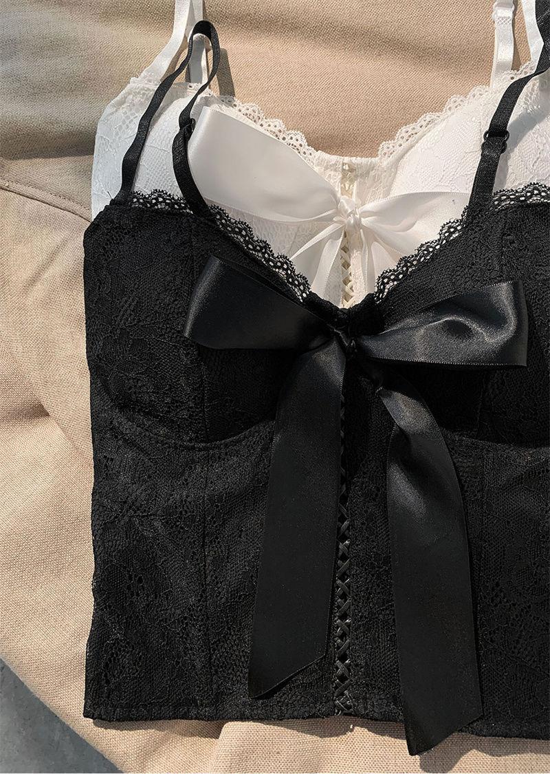 Camisola de encaje con lazo para mujer, con cinturón y almohadilla para el pecho, espalda hermosa, sin tirantes, corte entallado, interior corto, estilo puro, top Spice Girl