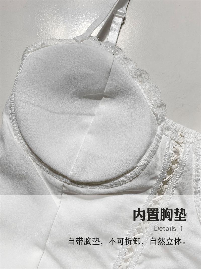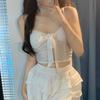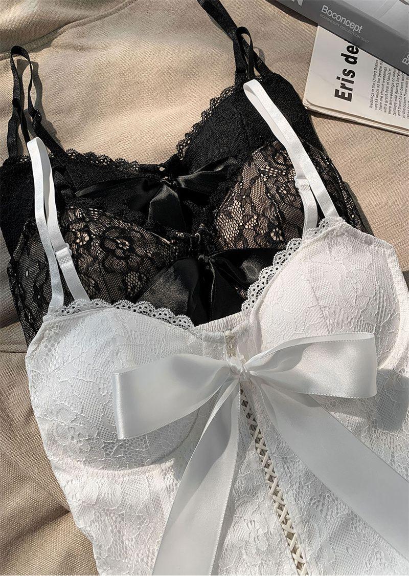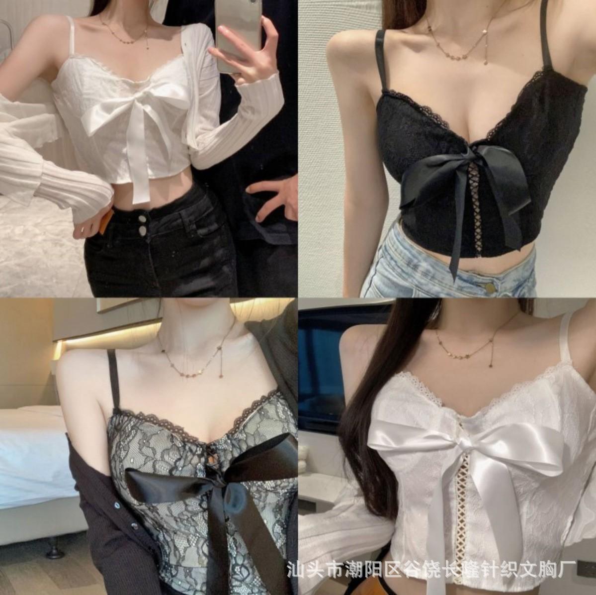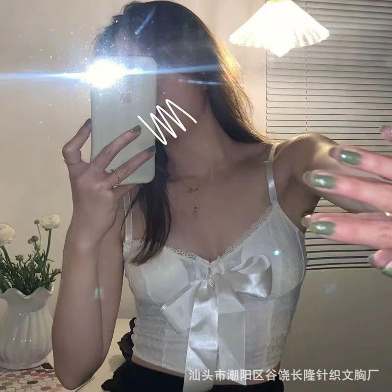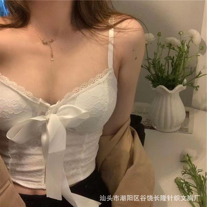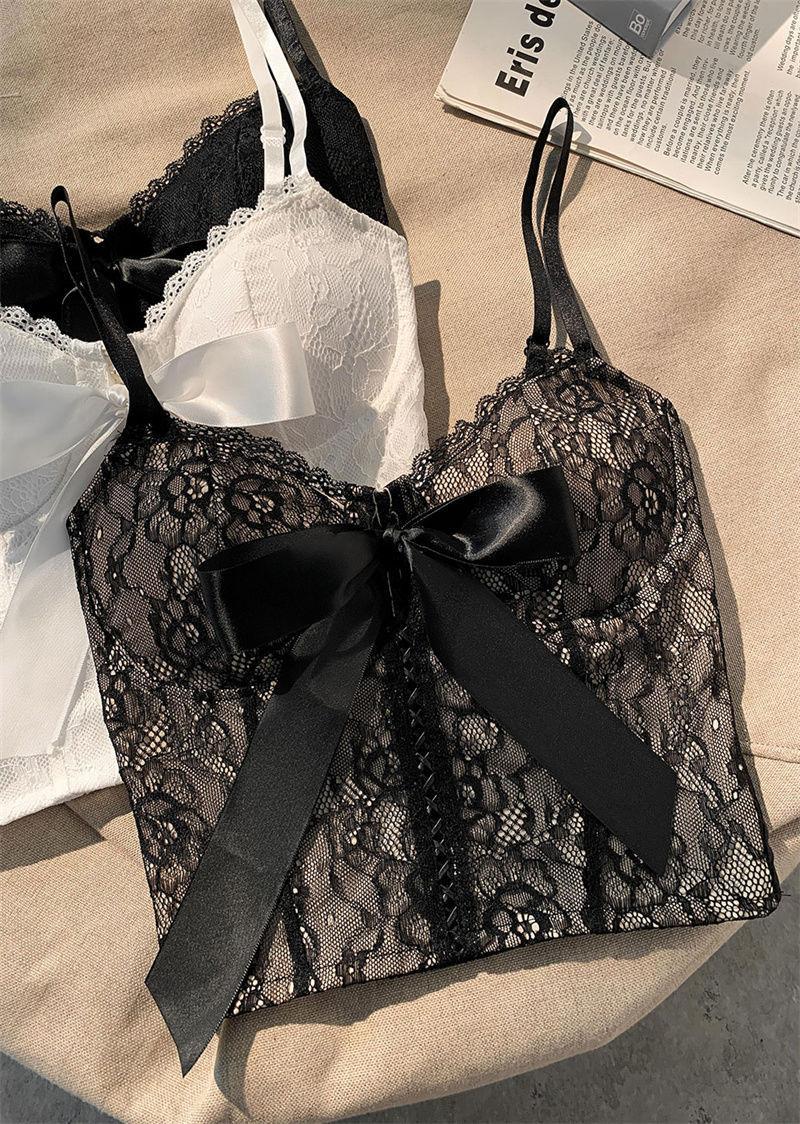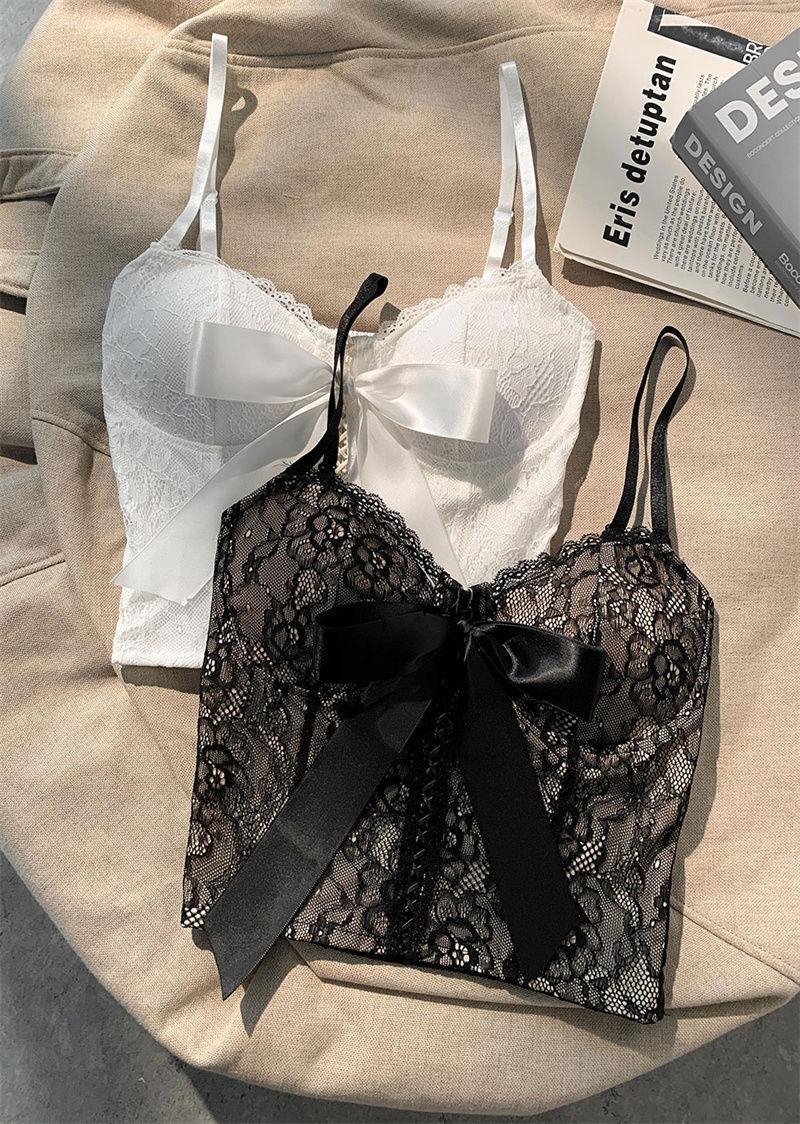Camisola de encaje con lazo para mujer, con cinturón y almohadilla para el pecho, espalda hermosa, sin tirantes, corte entallado, interior corto, estilo puro, top Spice Girl