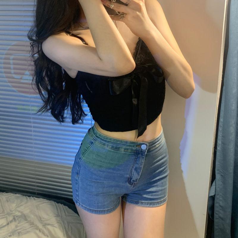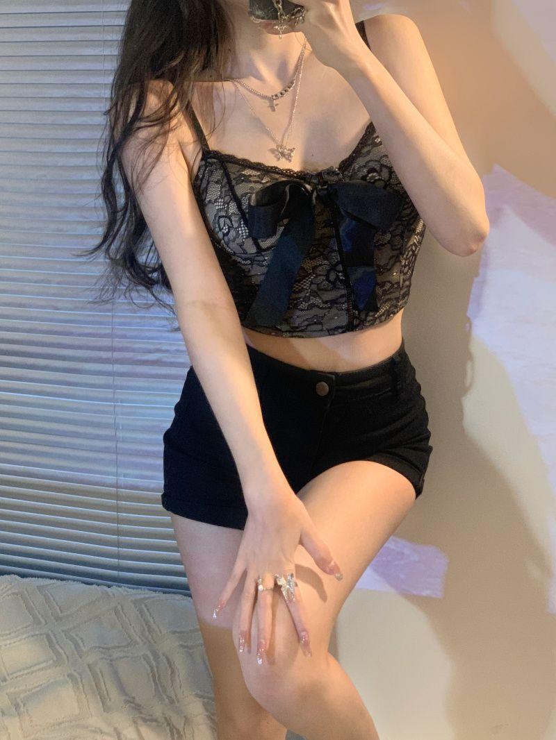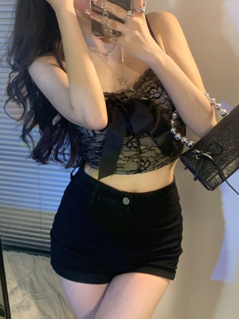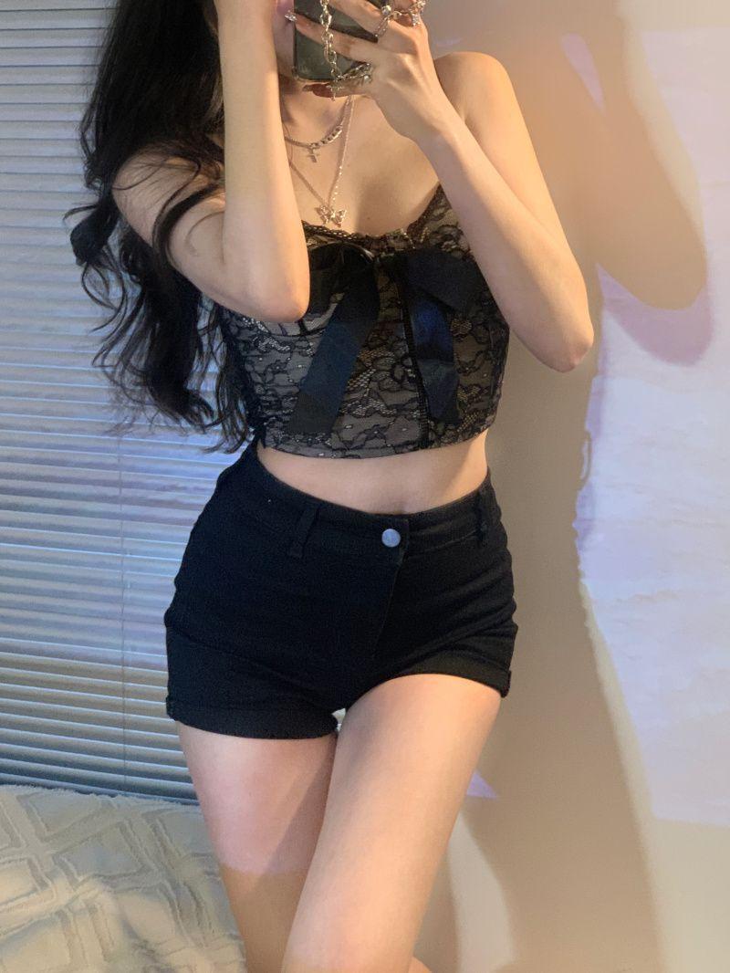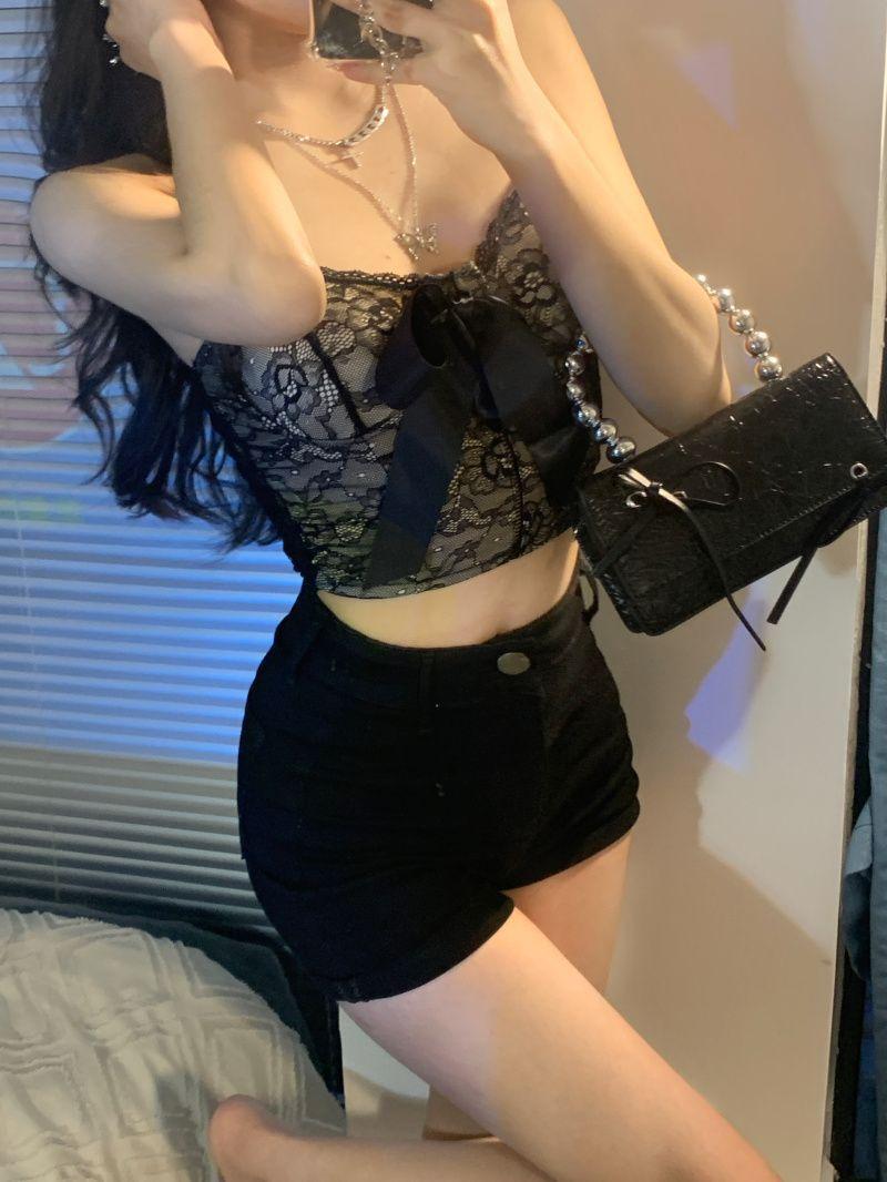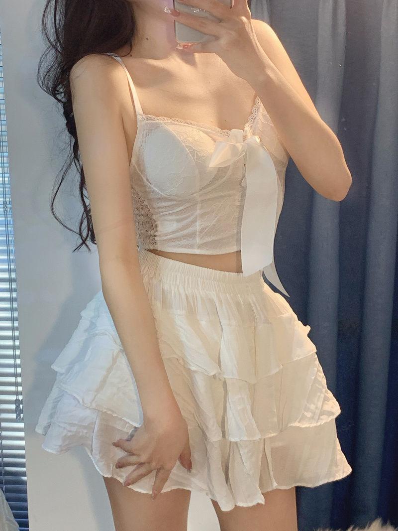 Camisola de encaje con lazo para mujer, con cinturón y almohadilla para el pecho, espalda hermosa, sin tirantes, corte entallado, interior corto, estilo puro, top Spice Girl