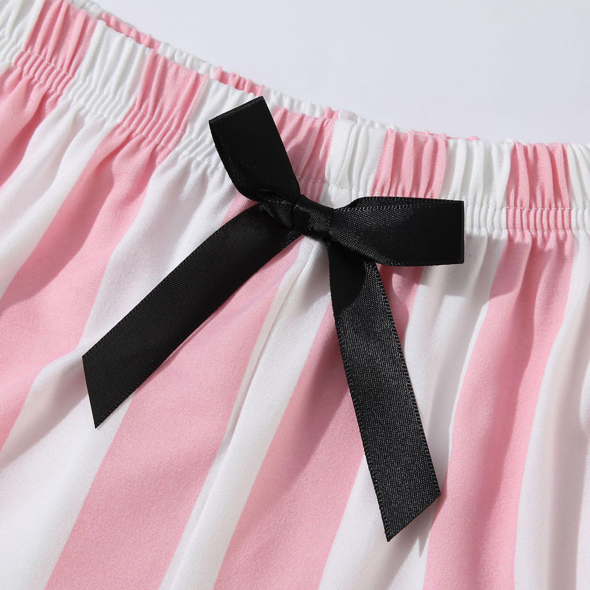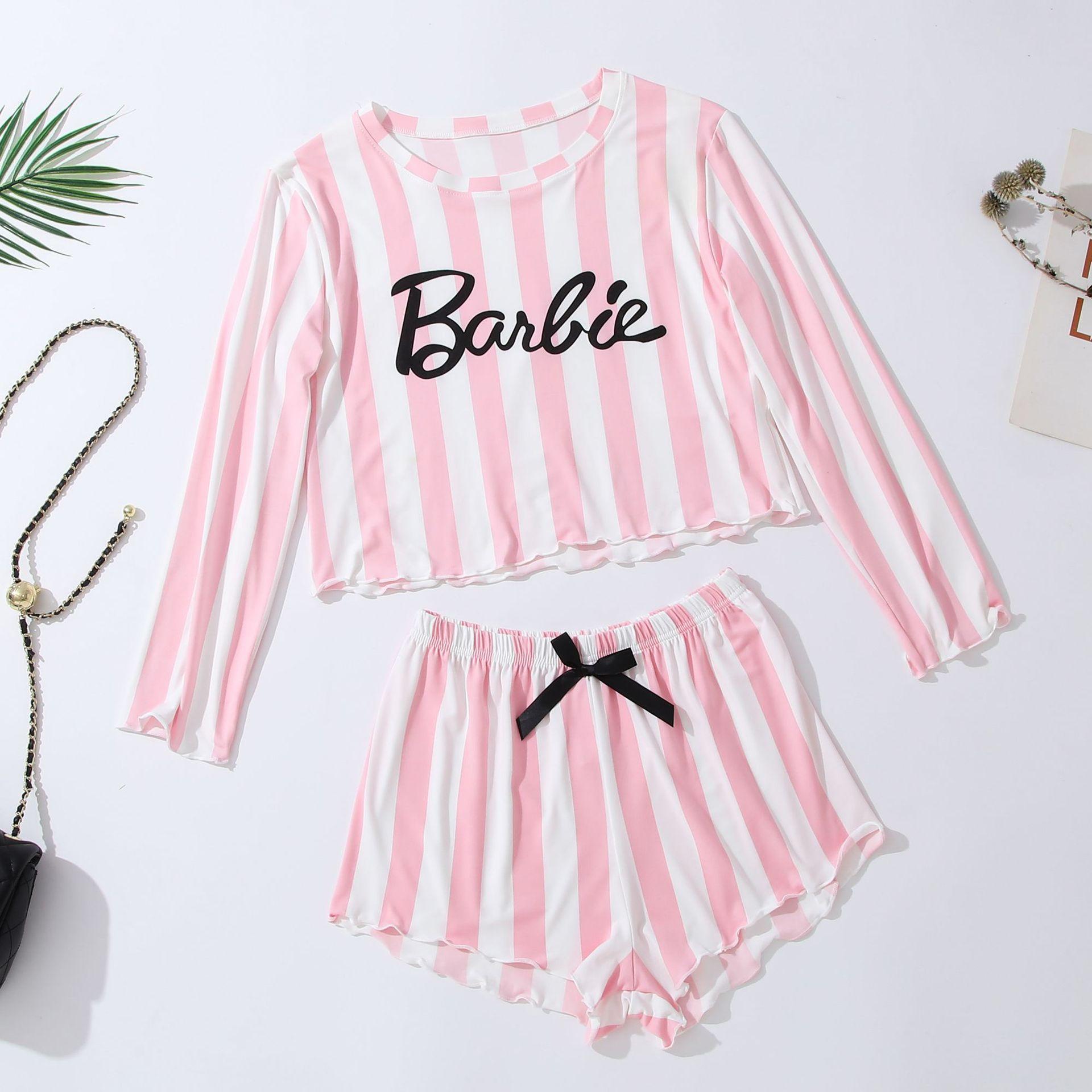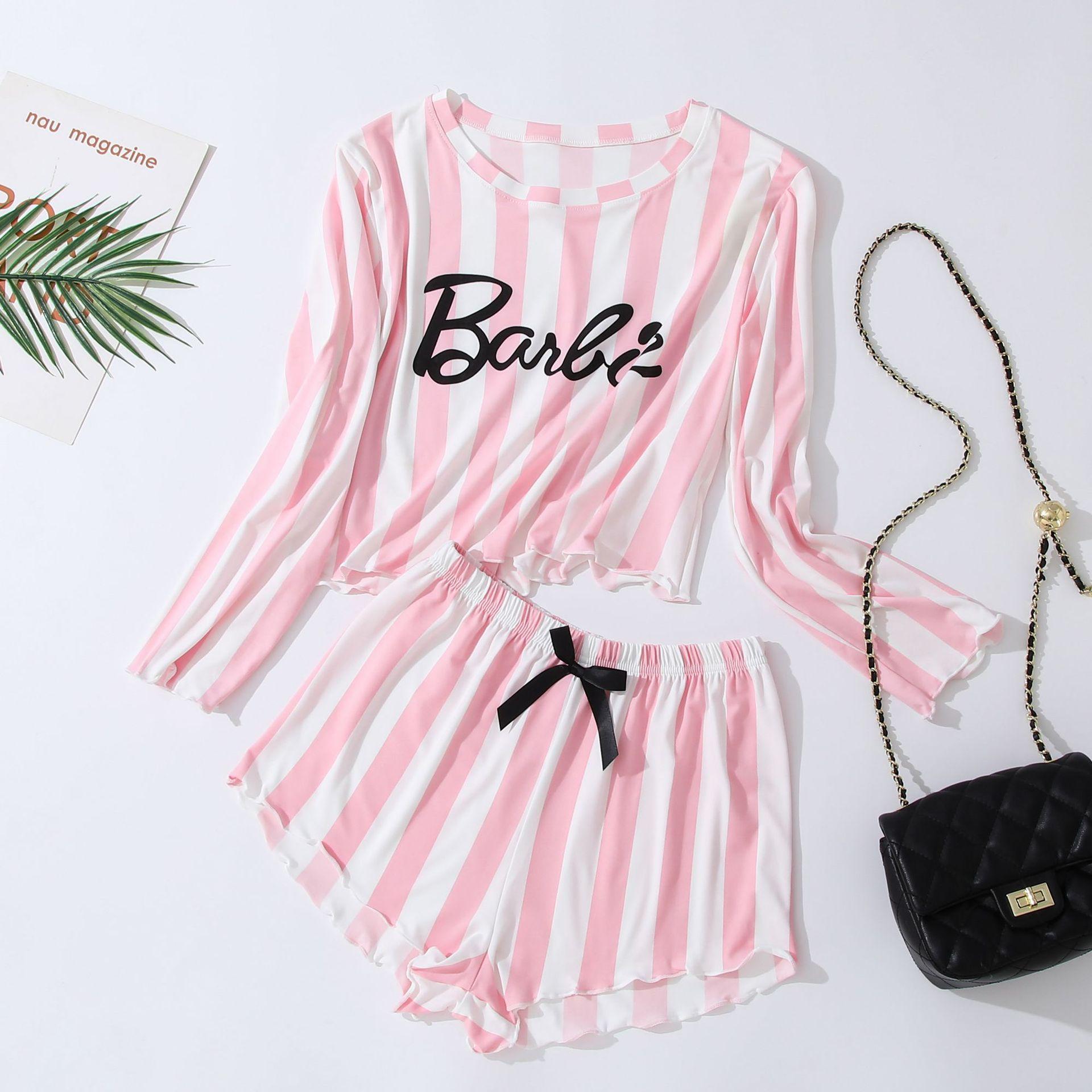 Pijama de rayas rosas y blancas Explosiones Transfronterizas Traje de mujer Casual Manga larga Shorts Ropa de casa para mujer Conjunto de dos piezas