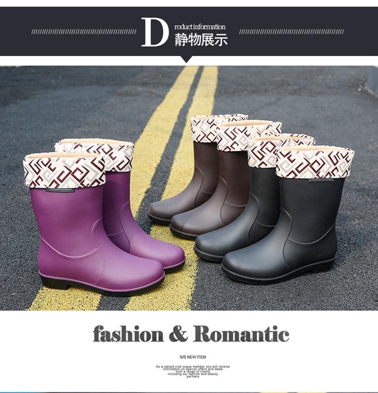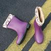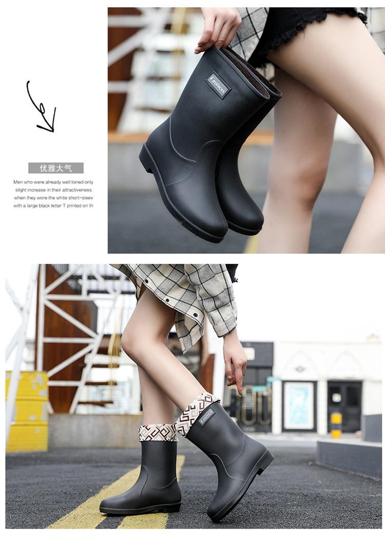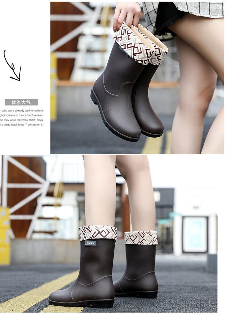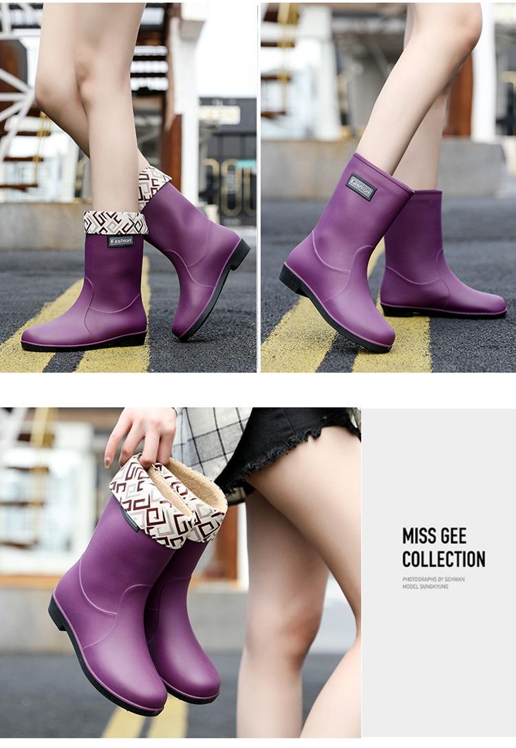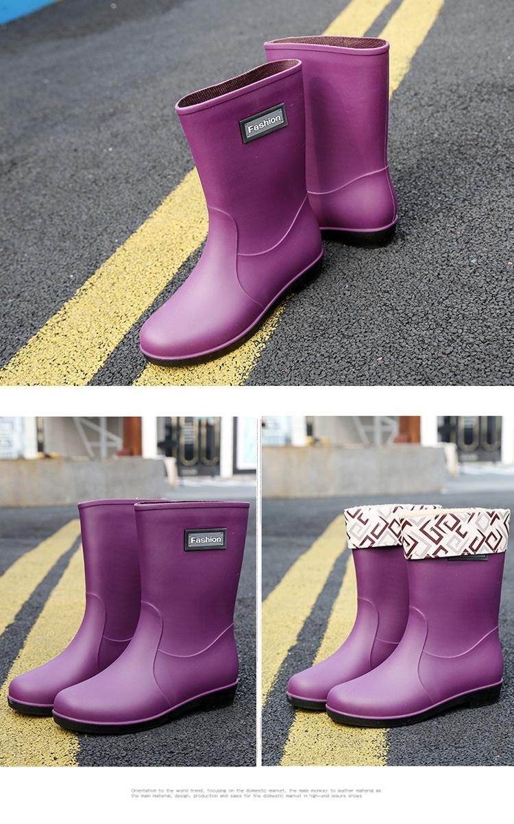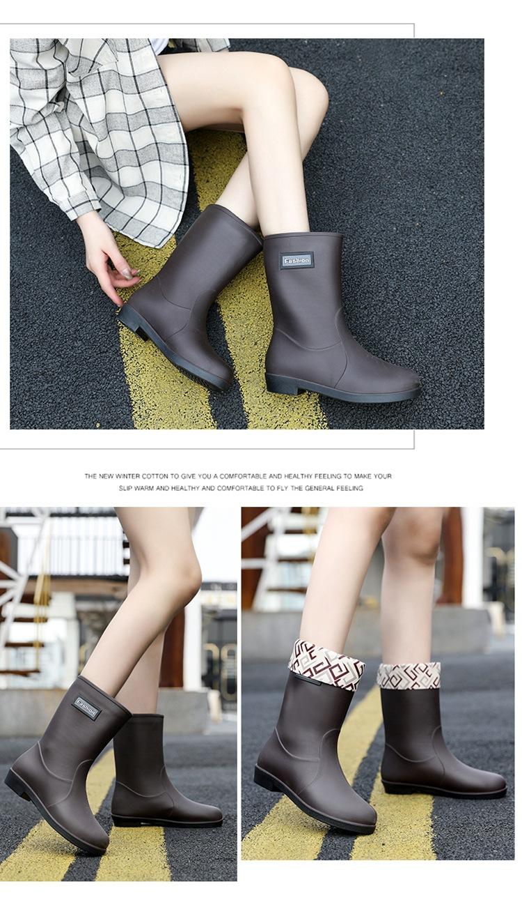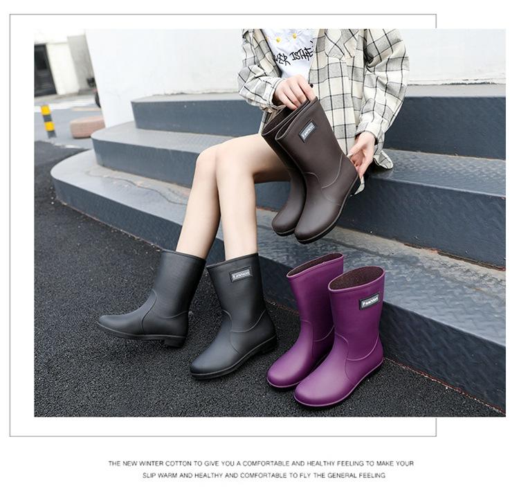 Zapatos de lluvia de moda para damas de caña media, forrados en polar, cálidos, de suela gruesa, resistentes al desgaste, impermeables, zapatos de lluvia para cocina, compras, goma antideslizante