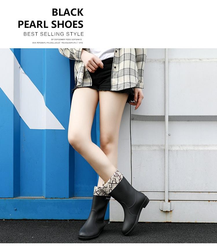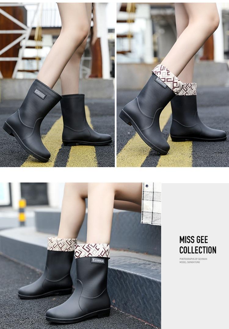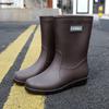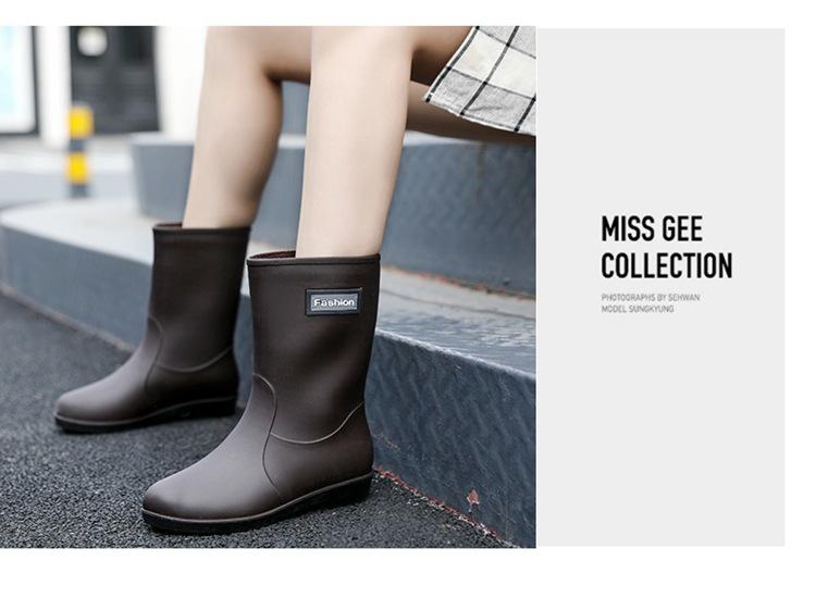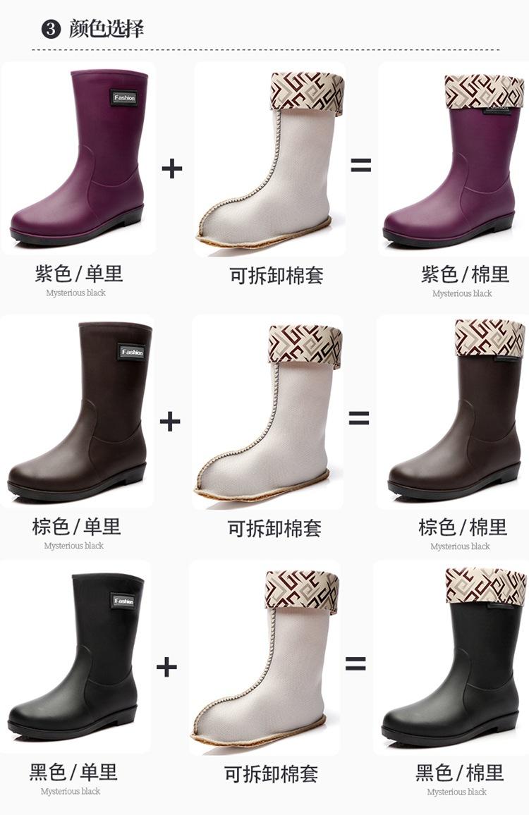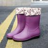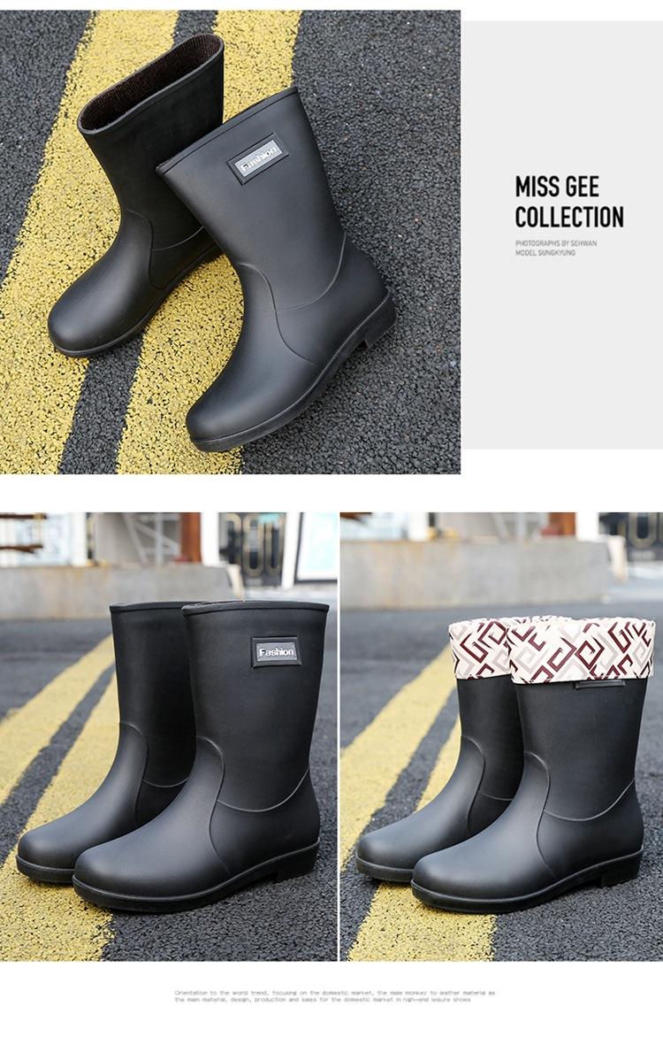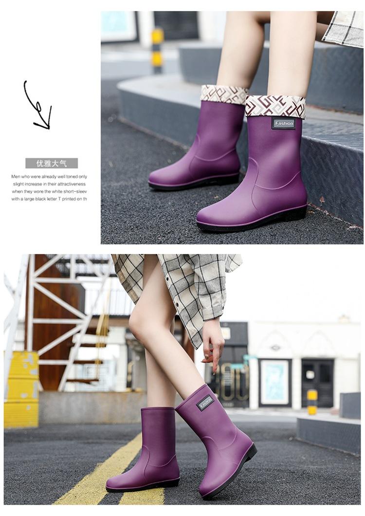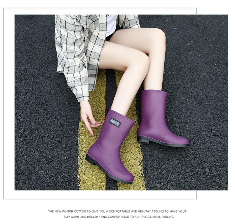 Zapatos de lluvia de moda para damas de caña media, forrados en polar, cálidos, de suela gruesa, resistentes al desgaste, impermeables, zapatos de lluvia para cocina, compras, goma antideslizante