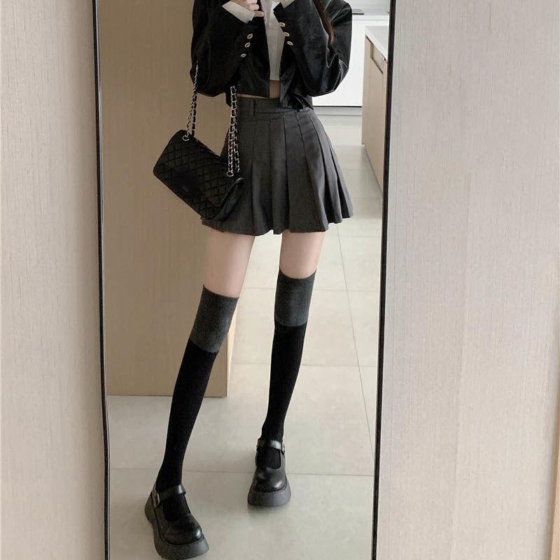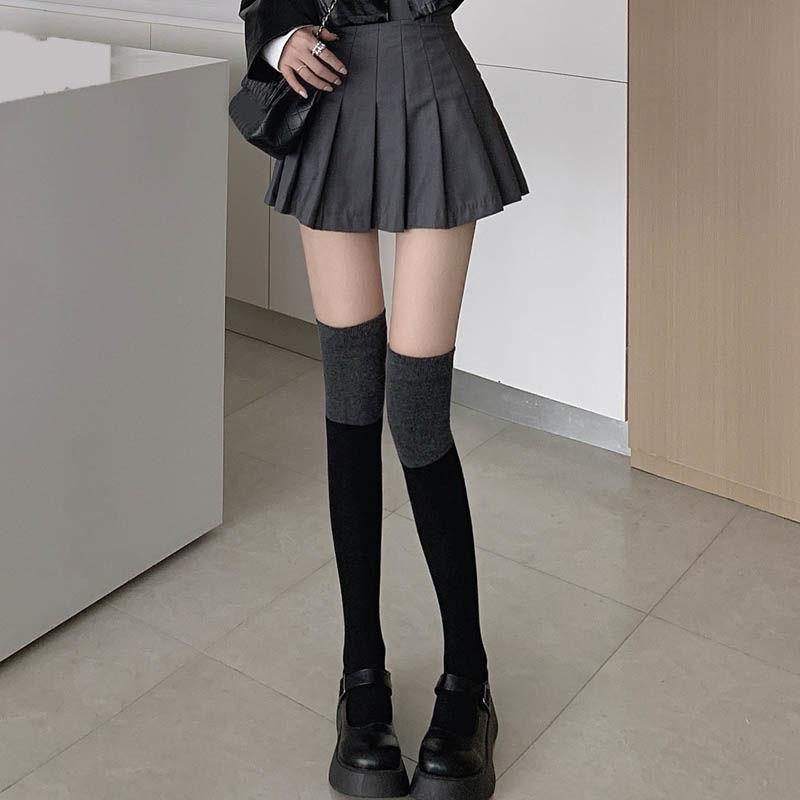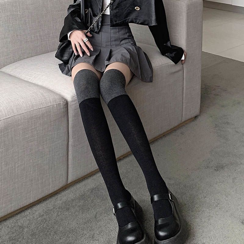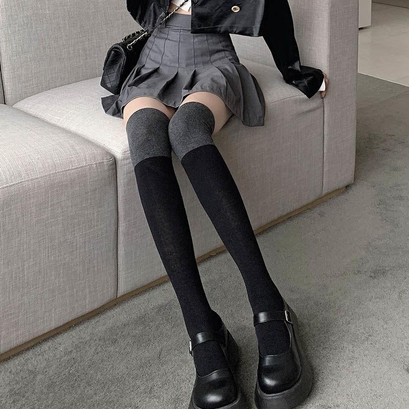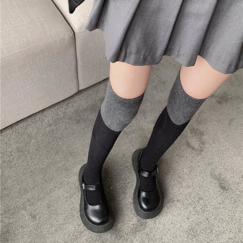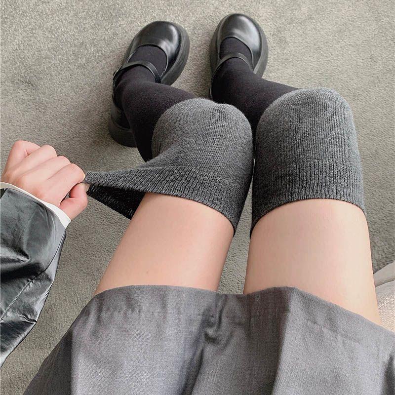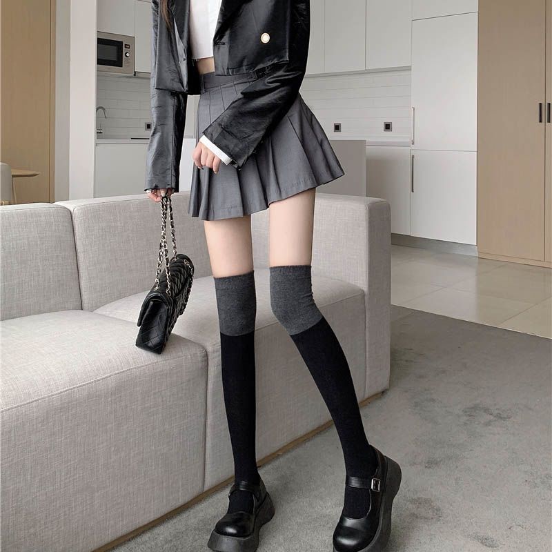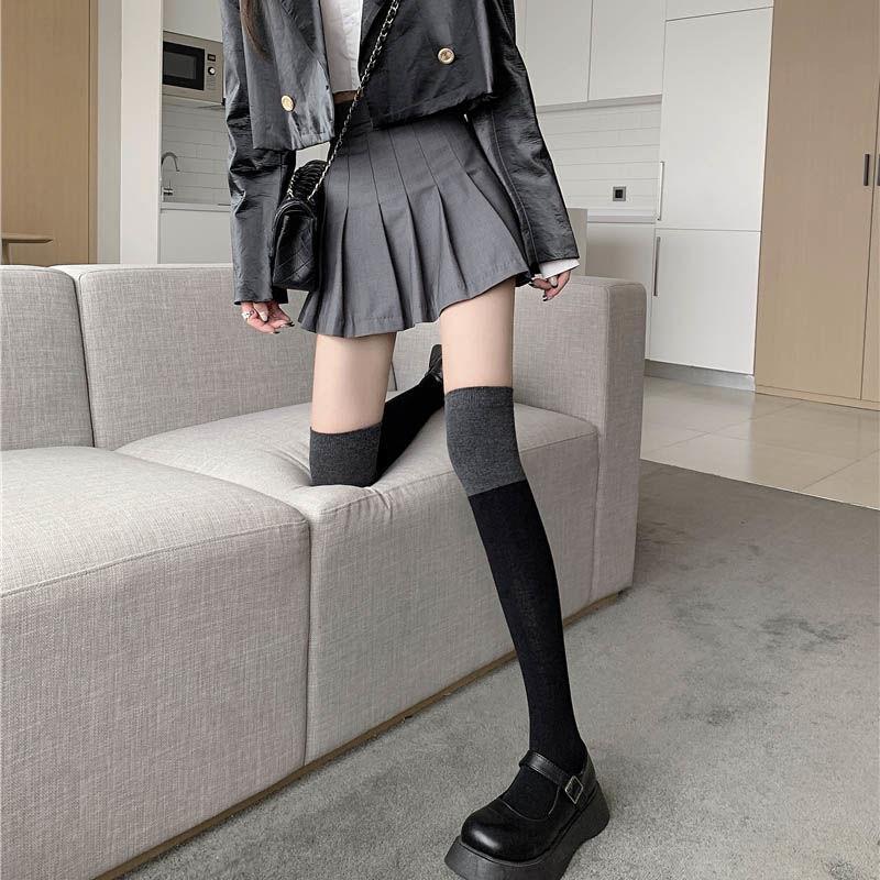 Calcetines largos de tubo por encima de la rodilla para mujer, de algodón, para primavera y otoño, piernas delgadas, con cubierta negra, medias altas de tubo, rodilleras para otoño e invierno.