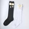 Medias para niños, de algodón, en blanco y negro, de color liso, con lazo de felpa, decoración, calcetines para bebés, venta al por mayor