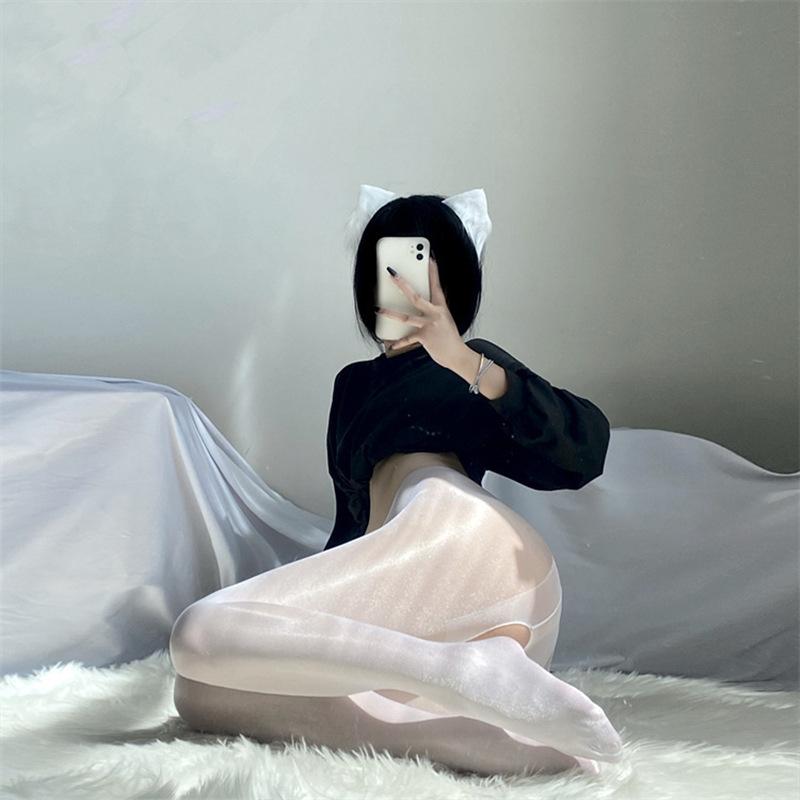Medias Sexys Brillantes Negras de Seda Blanca de Seda Medias Sedosas Aceitosas Negras Abiertas Tentación Perladas Estilo Ultradelgado