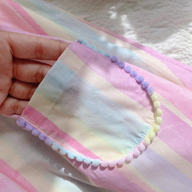 El diseño de solapa grande es muy lindo. Los pompones coloridos están todos cosidos a mano.