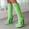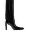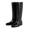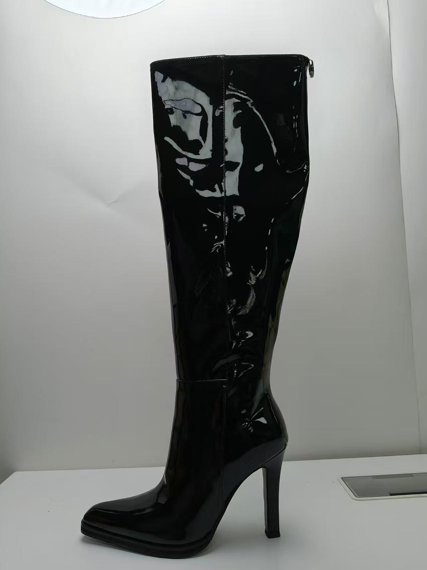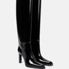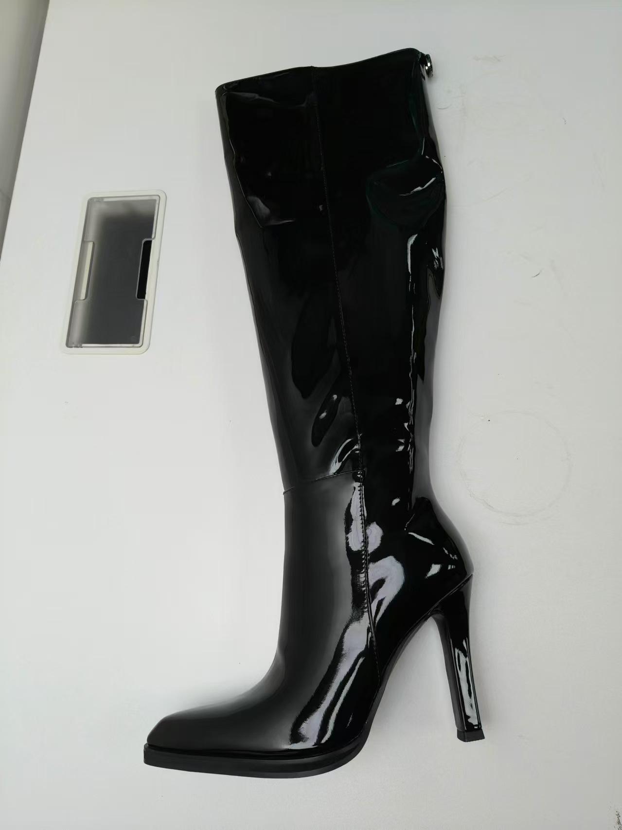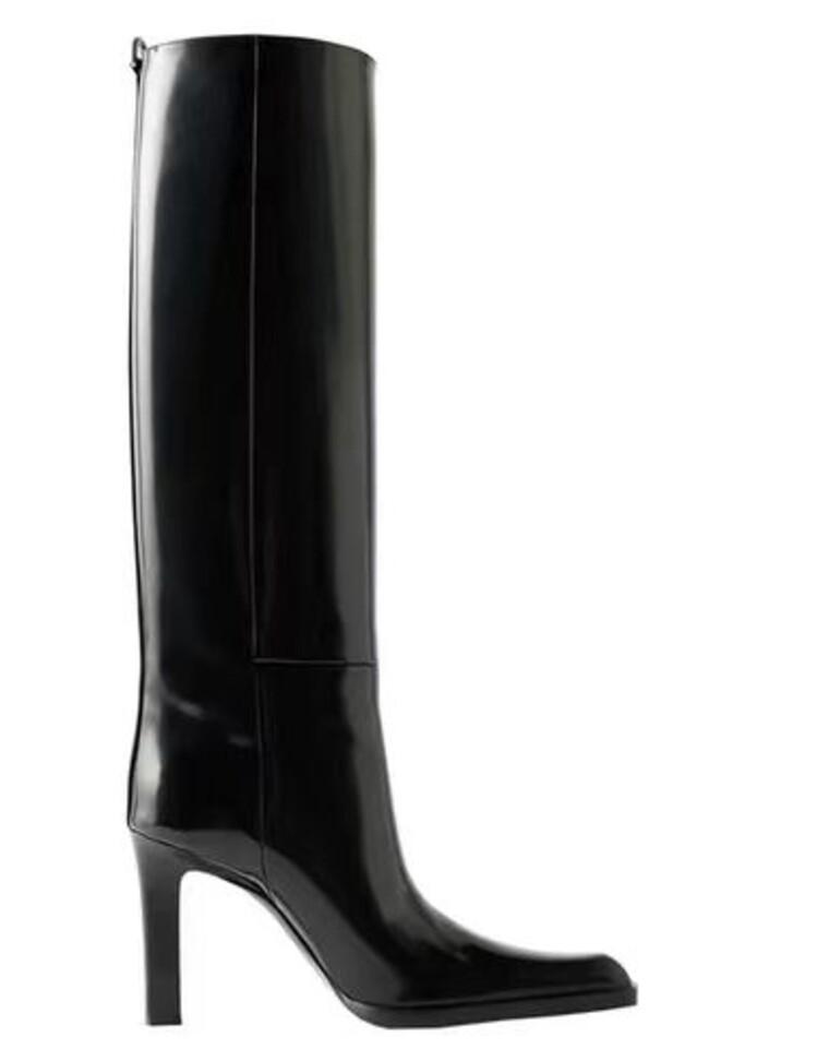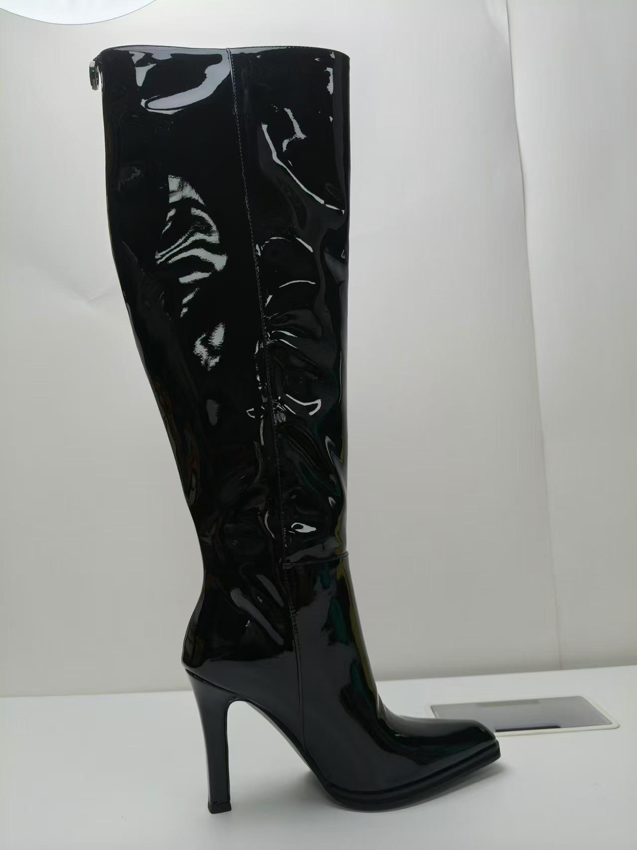 Botas altas de charol de comercio exterior para mujer, nuevas botas negras de 2024, punta cuadrada, tacón fino de moda pero hasta la rodilla.