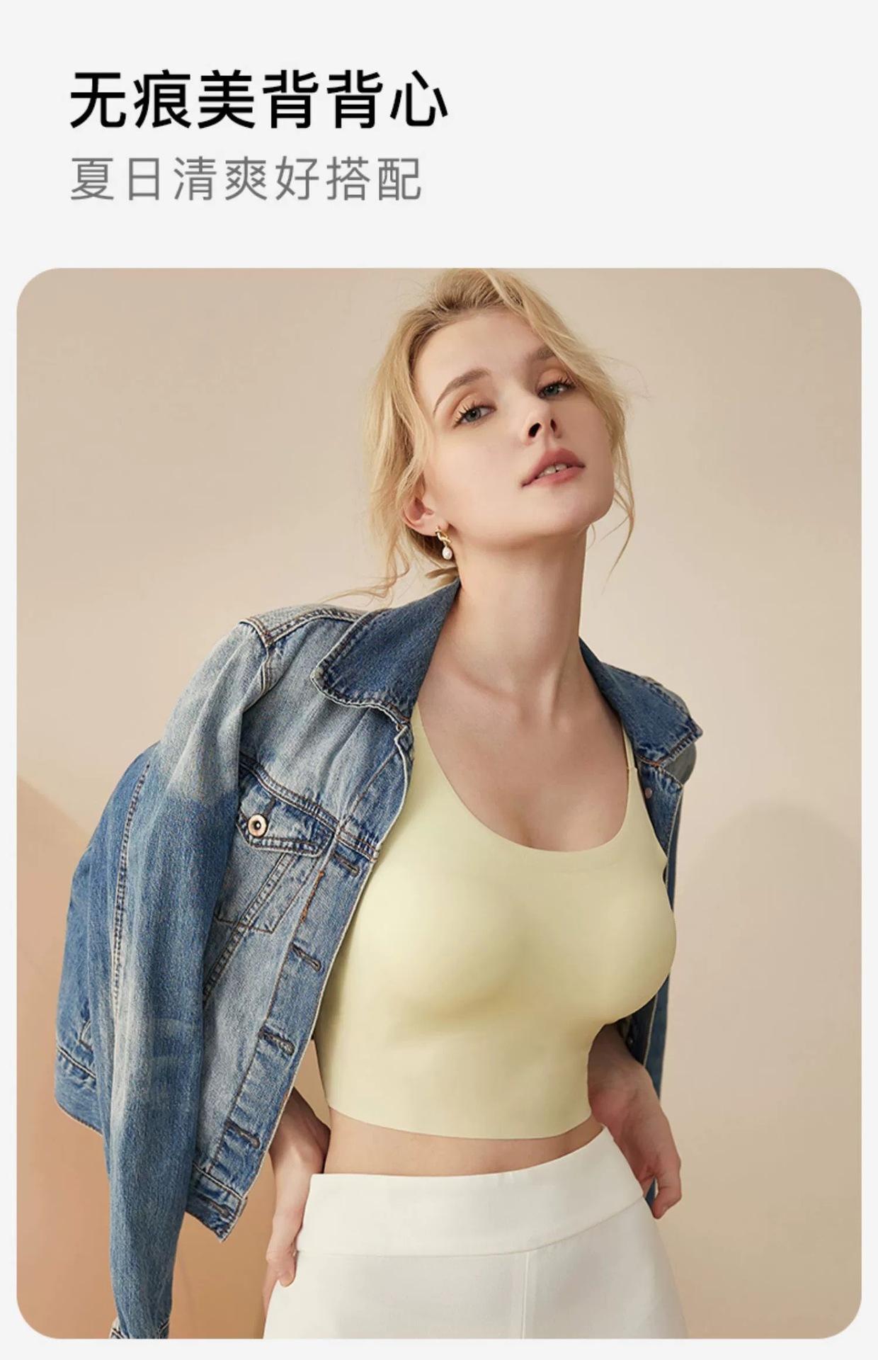 Chaleco de verano sin costuras de seda helada con pequeño arnés, cinturón con almohadilla para el pecho, copa fija, ropa exterior envolvente, ropa interior para la espalda, ropa interior para mujer