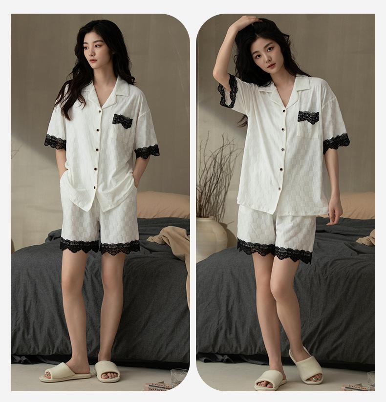 Pijamas de algodón y licra de estilo nuevo de verano para mujer, pantalones cortos de manga corta, moda informal, ropa de casa de algodón fino para estudiantes, traje