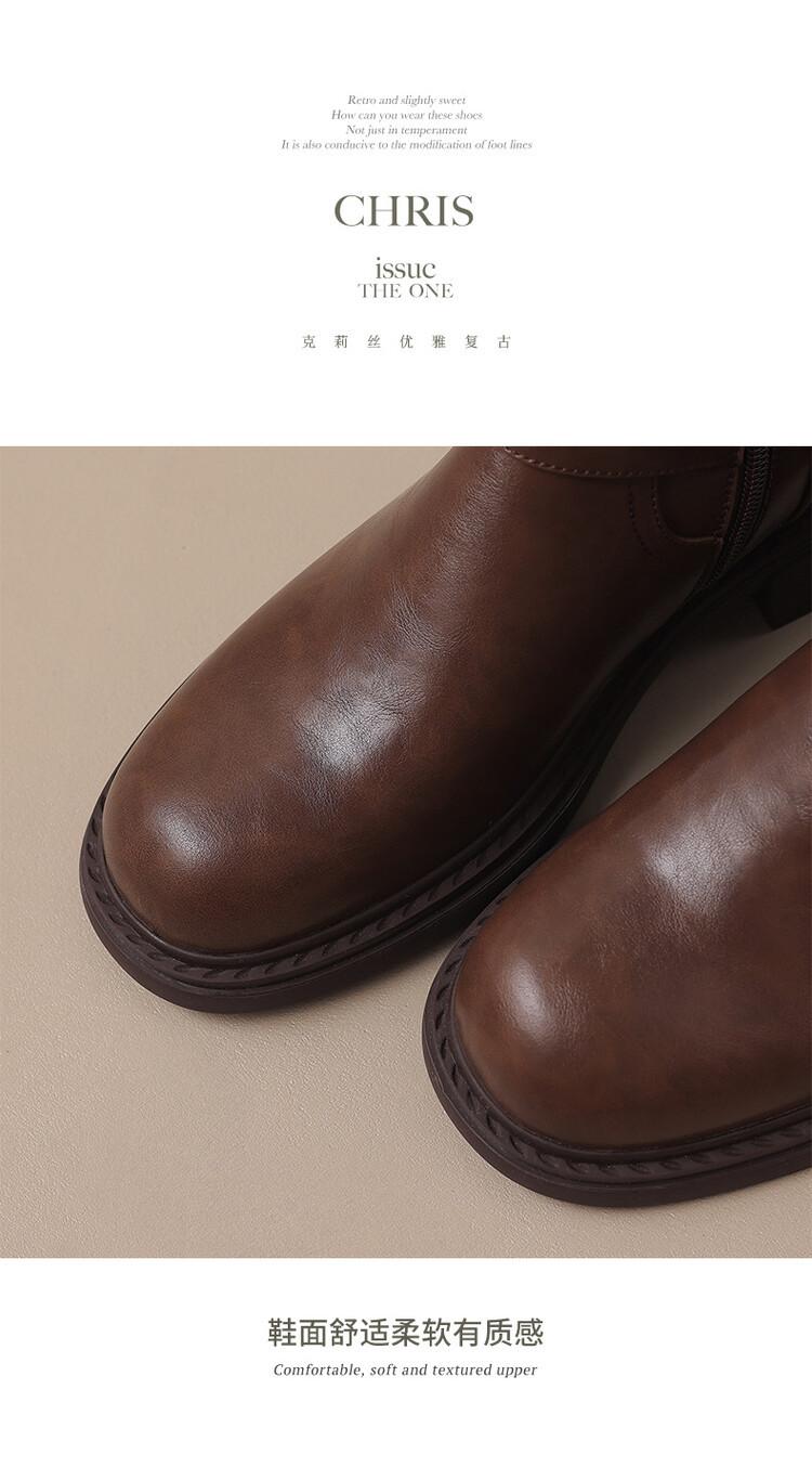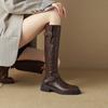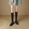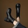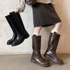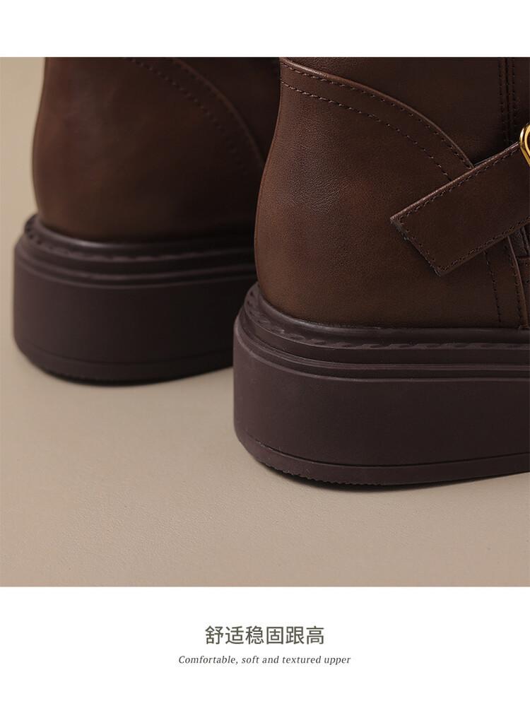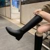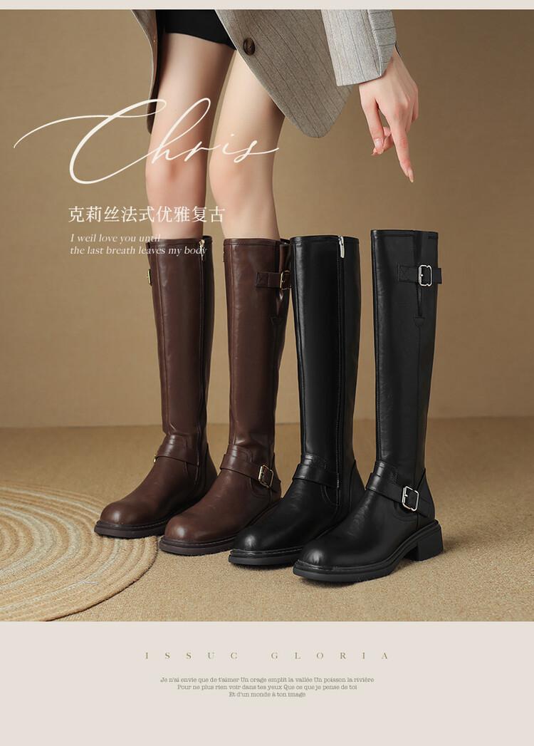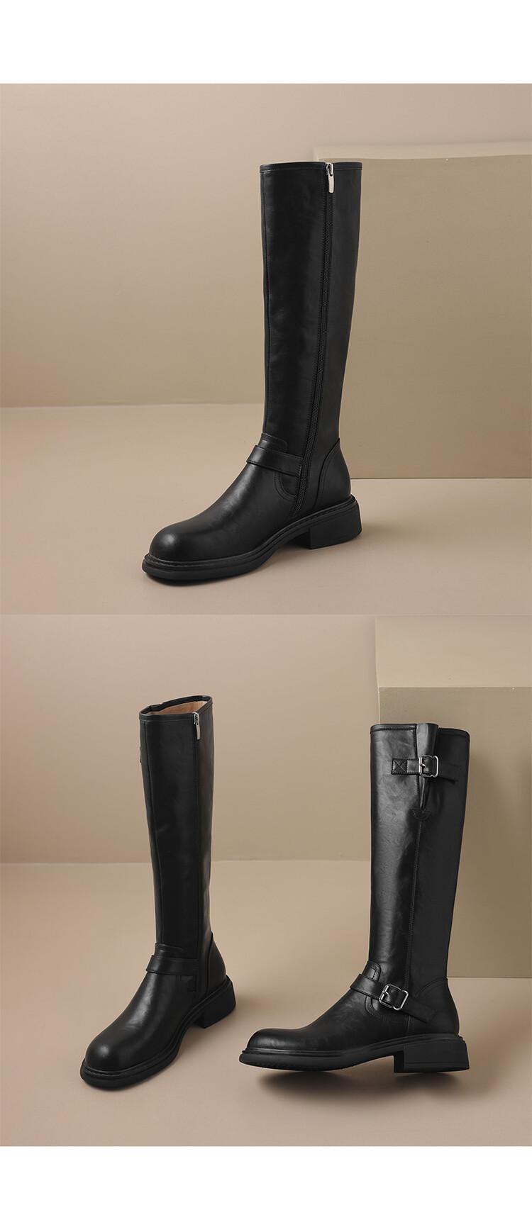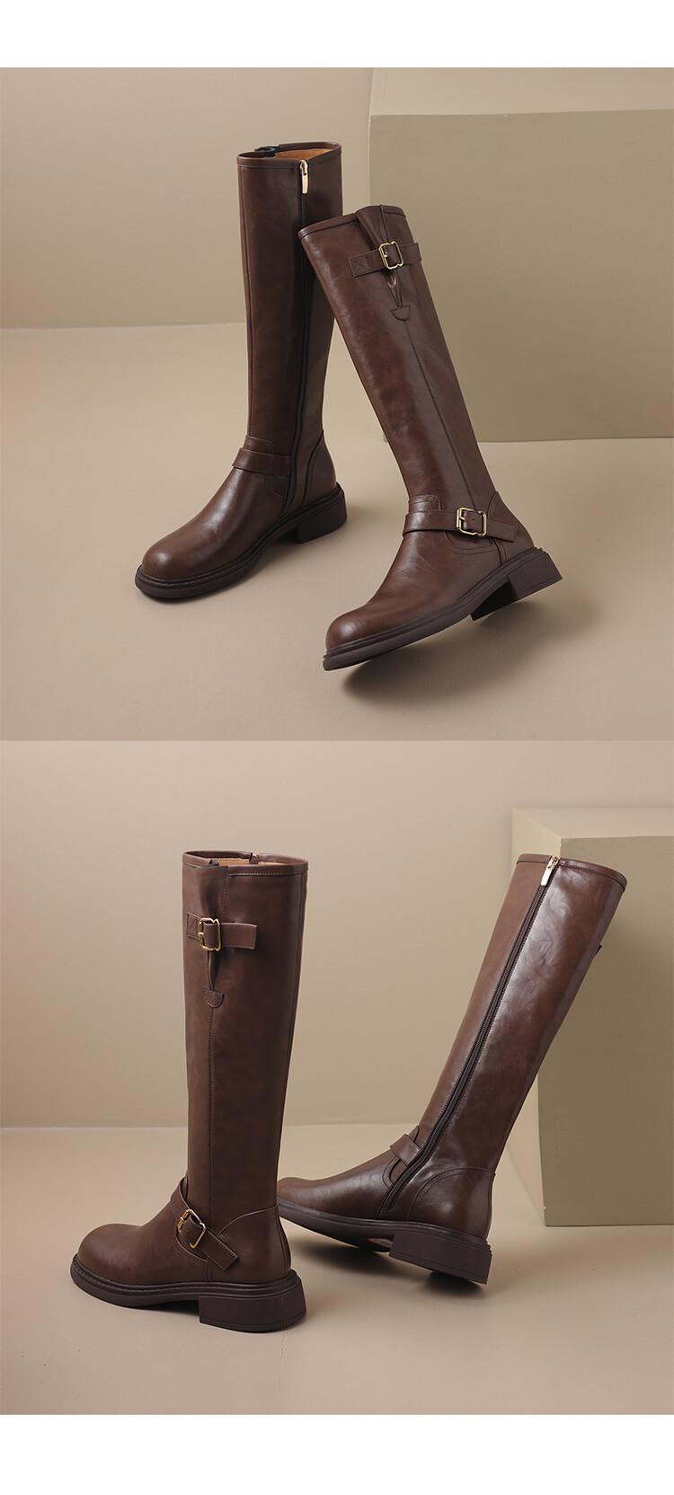 Botas Rectas de Cuero para Mujer 2025 Otoño e Invierno Punta Redonda Tacón Medio Hebilla de Cinturón Sobre la Rodilla Cremallera Lateral Botas de Equitación
