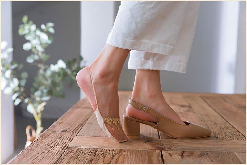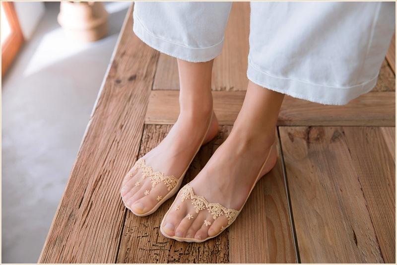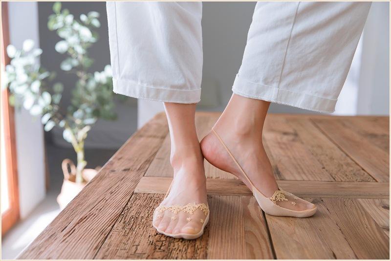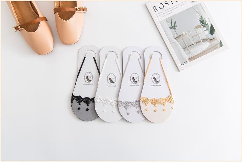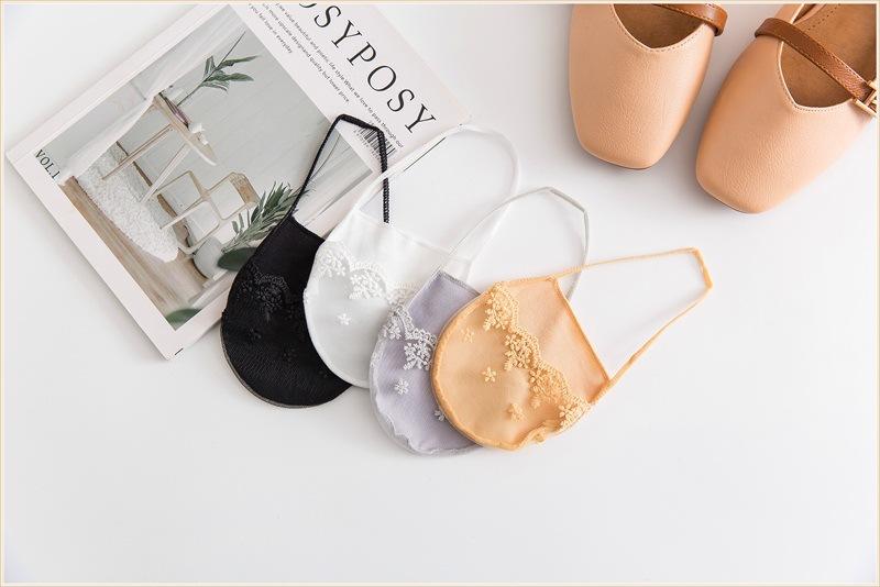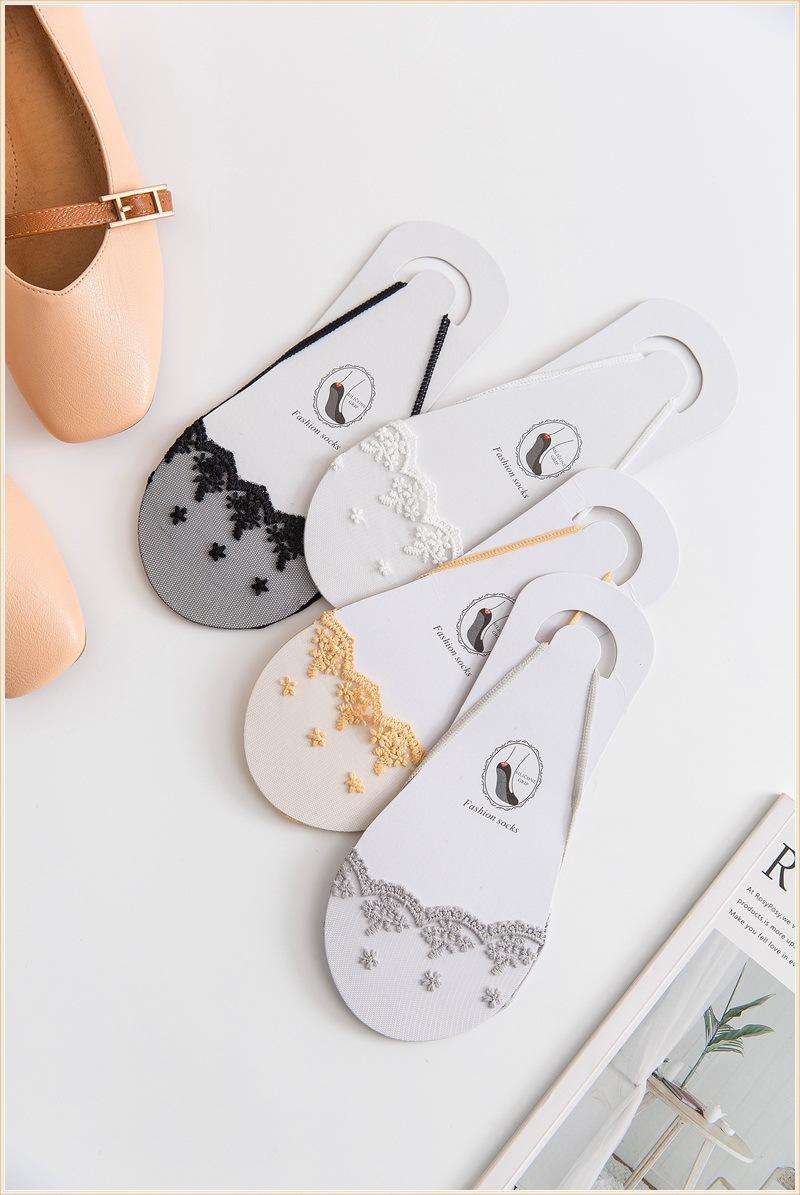 Calcetines invisibles de verano para mujer, calcetín japonés de media palma con boca baja y encaje bordado, estilo náutico.