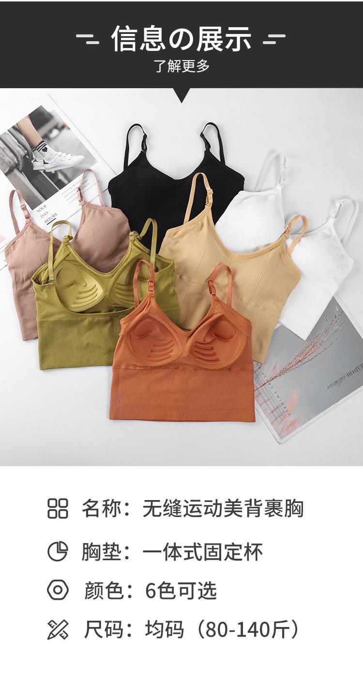 Sujetador de tubo con copa fija de una pieza, espalda hermosa en forma de U grande envuelta, sin costuras, sin aro de acero, con banda base, ropa interior, sujetador deportivo