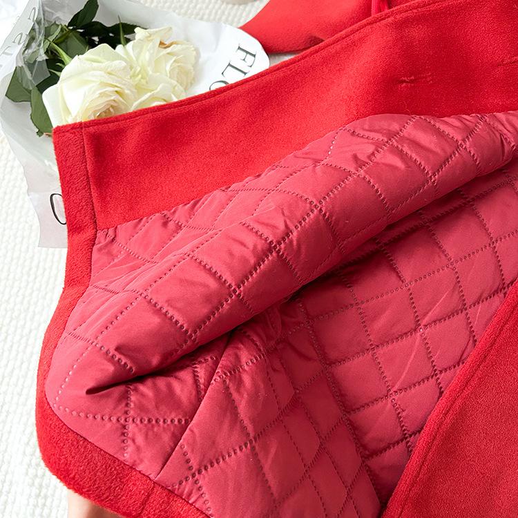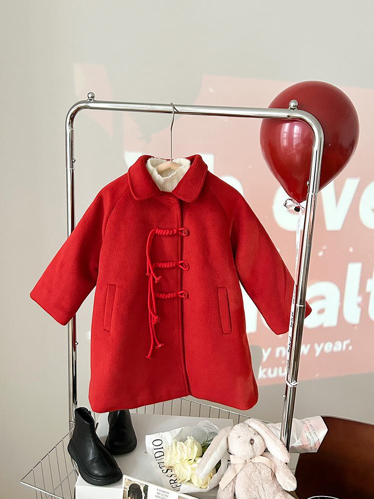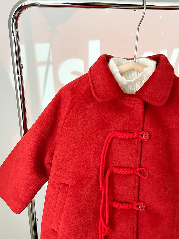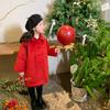 [Liquidación] Chaqueta de cachemira con cuello grueso para niña, estilo Año Nuevo coreano, abrigo acolchado rojo chino de longitud media