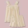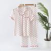 Pijama de crepé de algodón de verano para mujer, traje de encaje con cuello cuadrado de color liso, estilo coreano, pantalones cortos de manga corta, jersey de gasa, ropa para el hogar