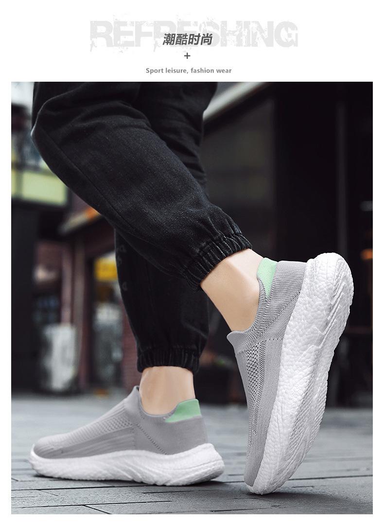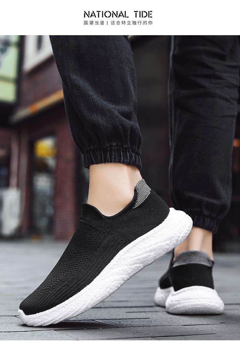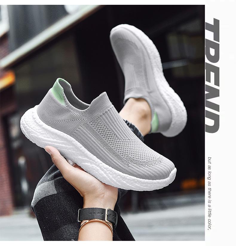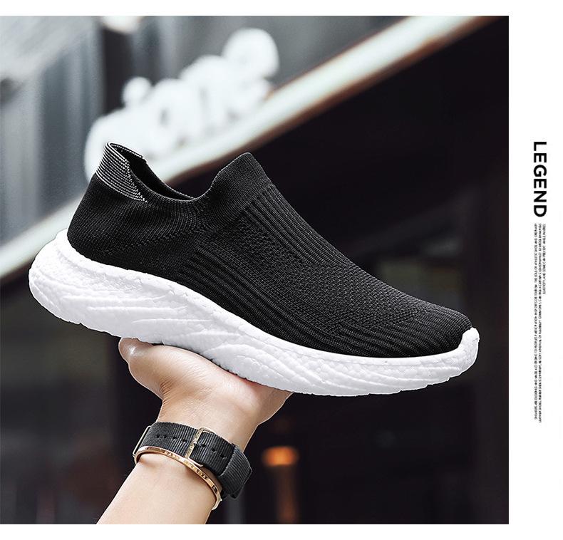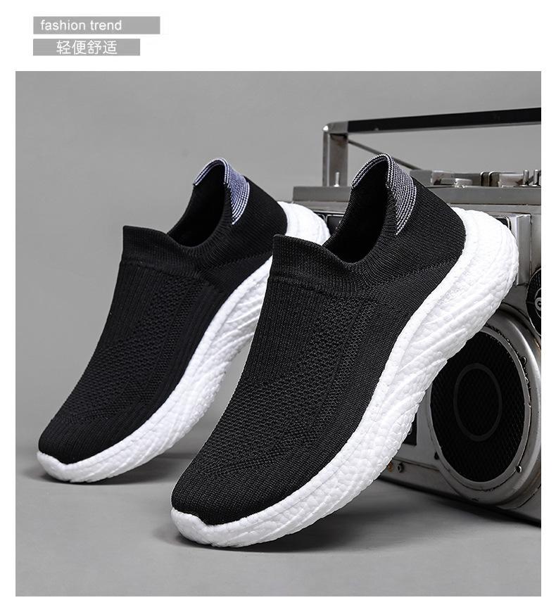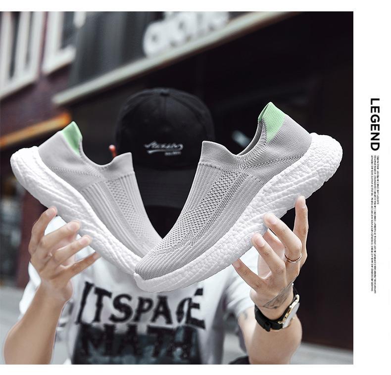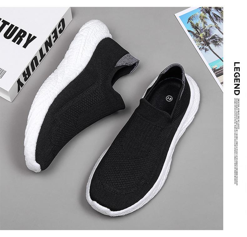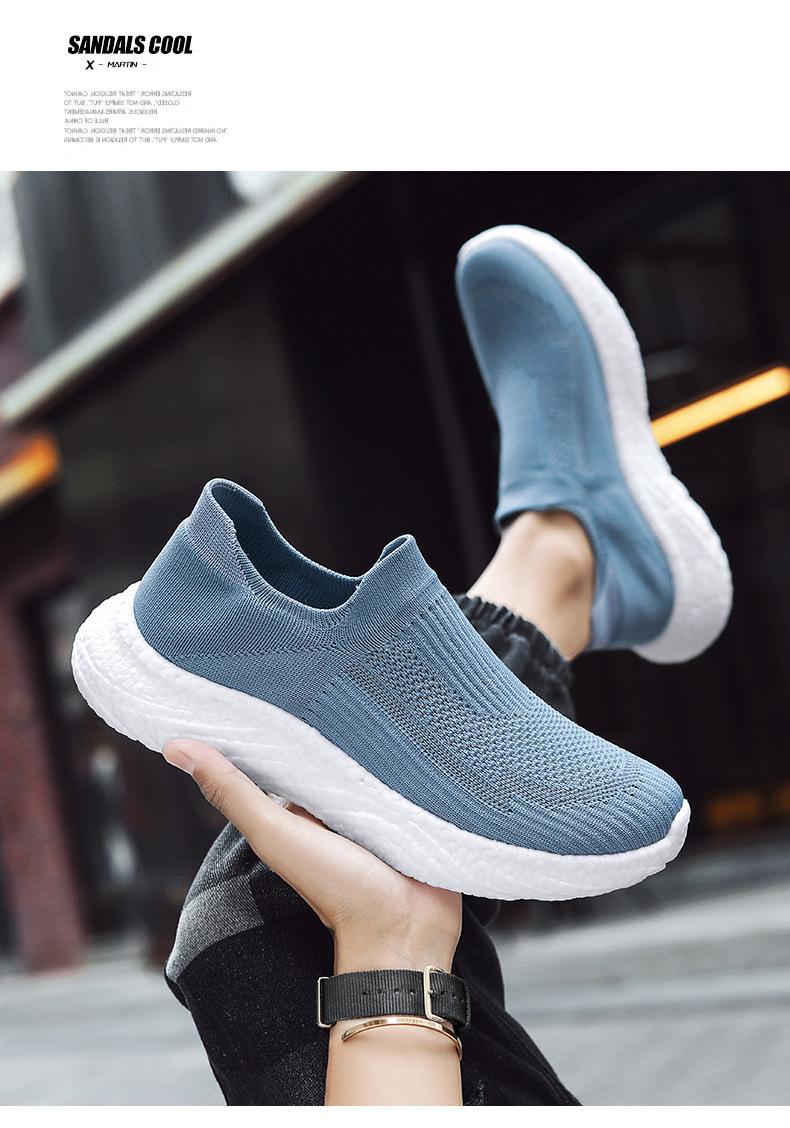 Zapatillas de verano para hombre, sin cordones, transpirables, con malla tejida voladora, suela de palomitas de maíz, ligeras y casuales.