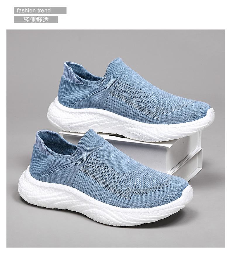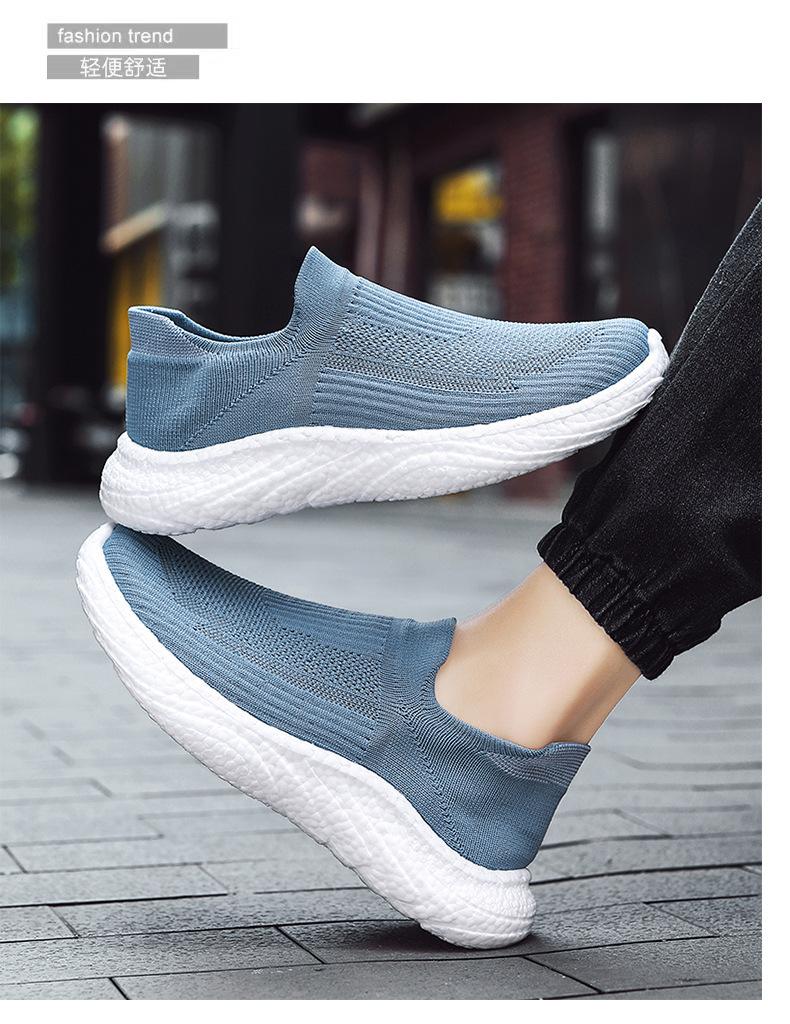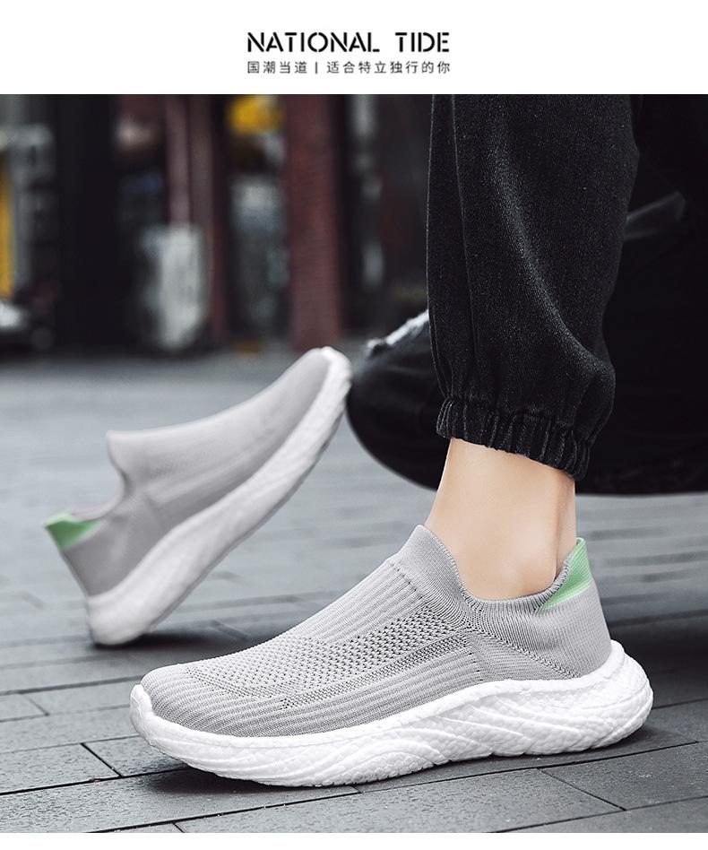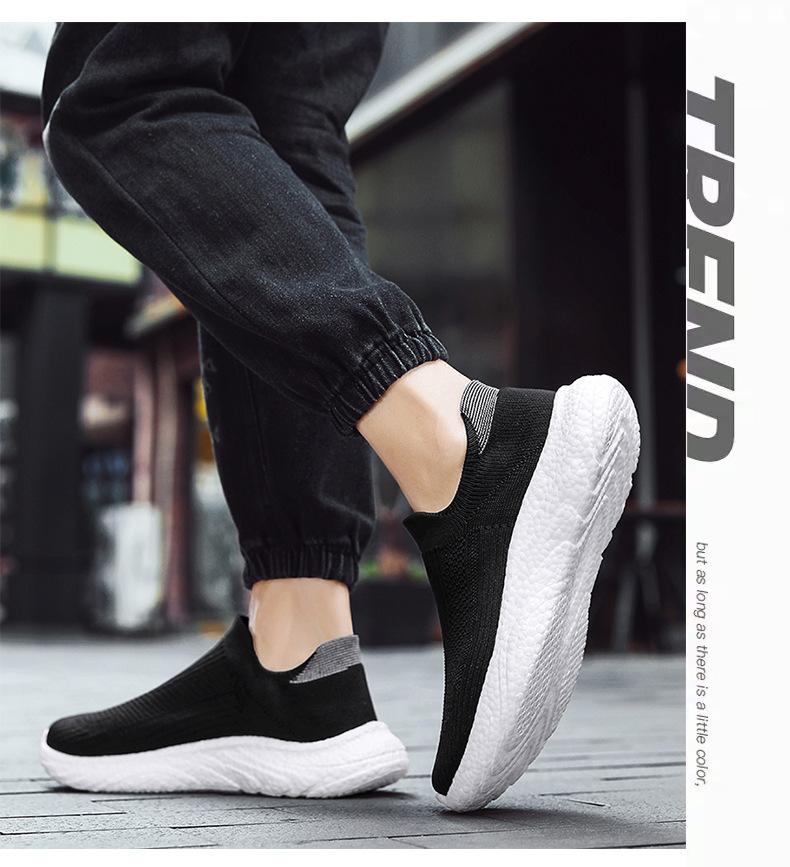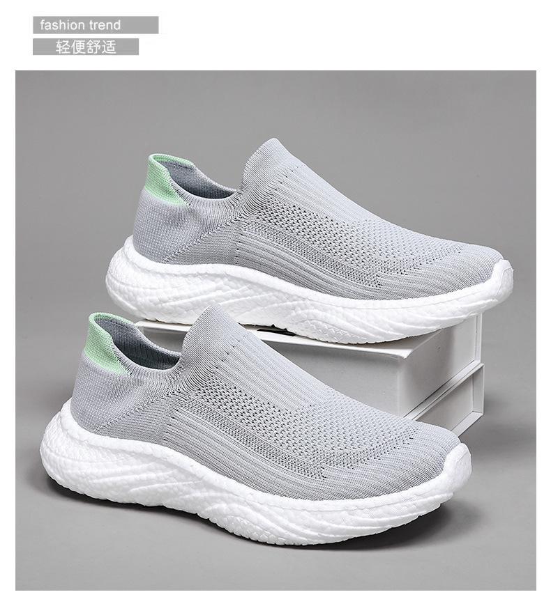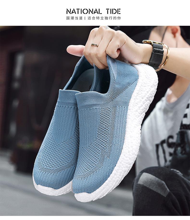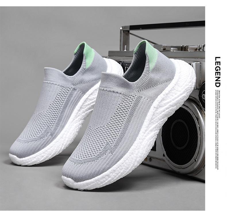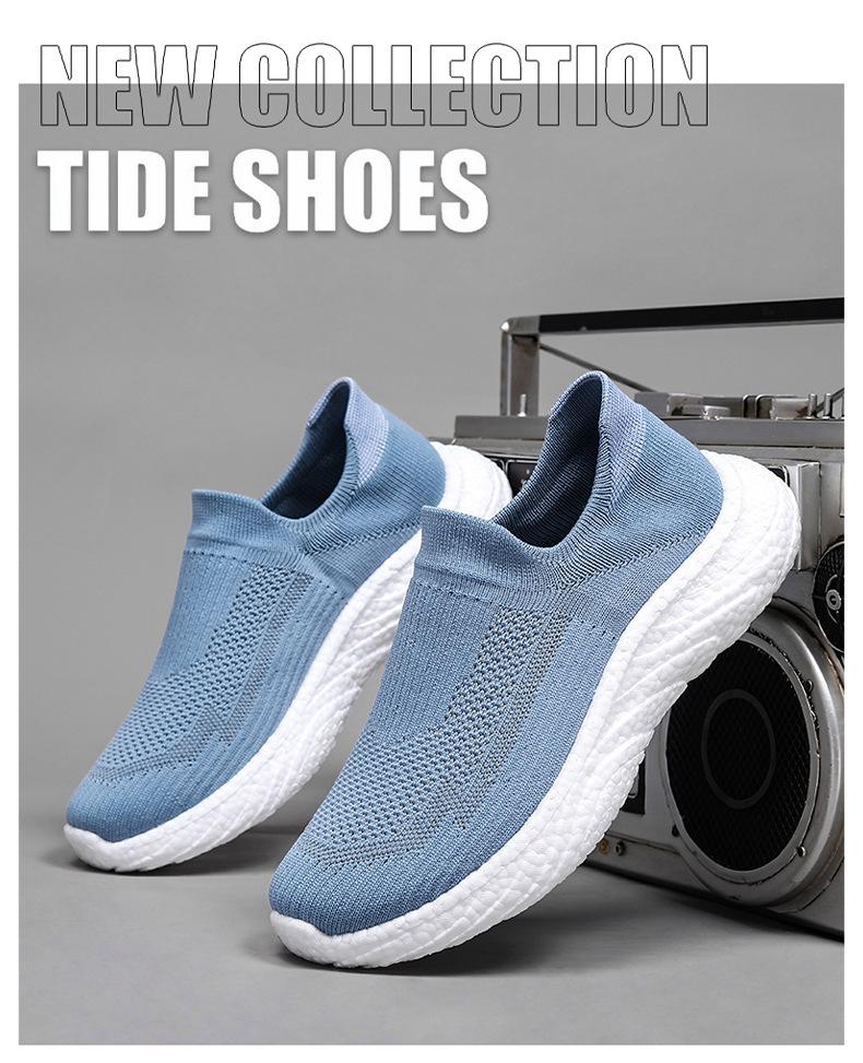 Zapatillas de verano para hombre, sin cordones, transpirables, con malla tejida voladora, suela de palomitas de maíz, ligeras y casuales.