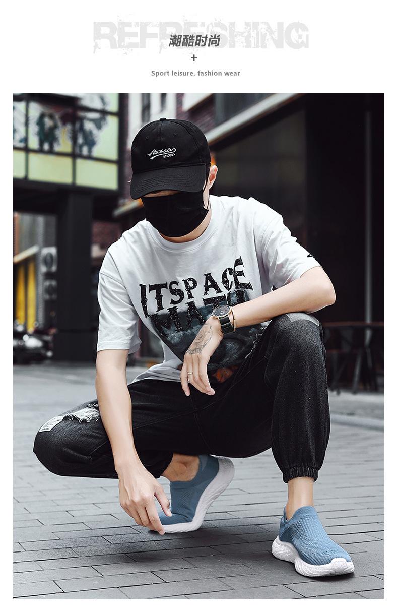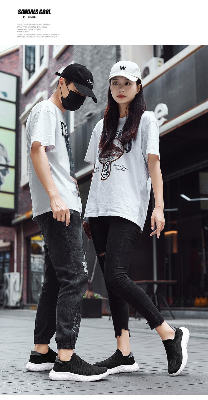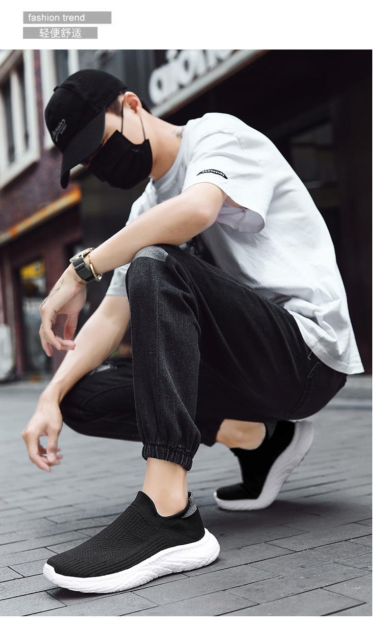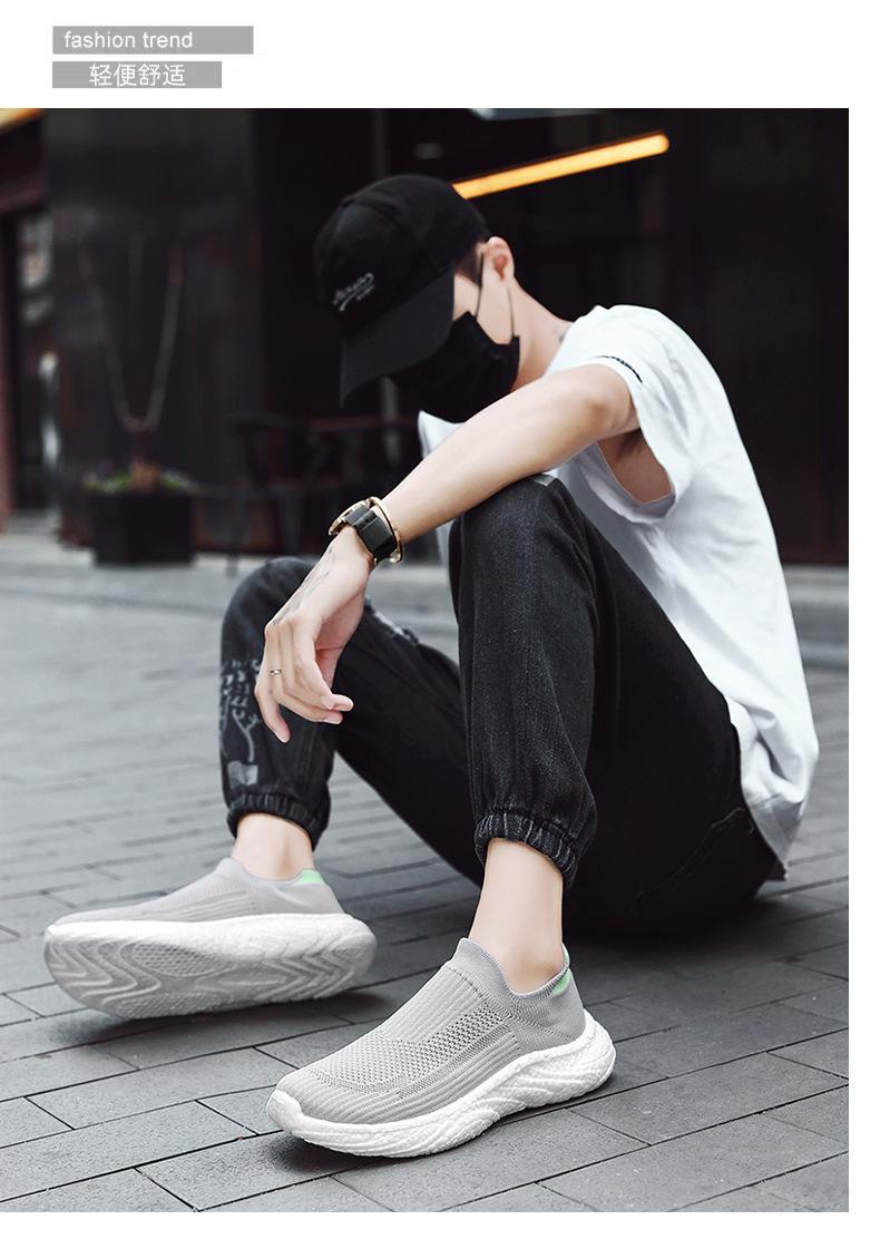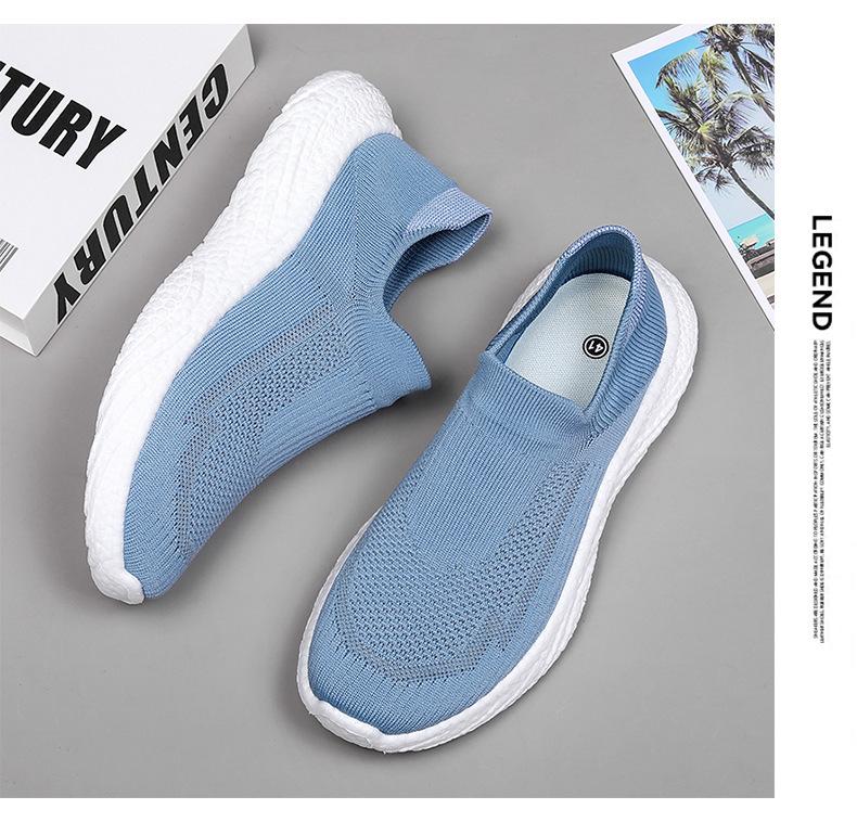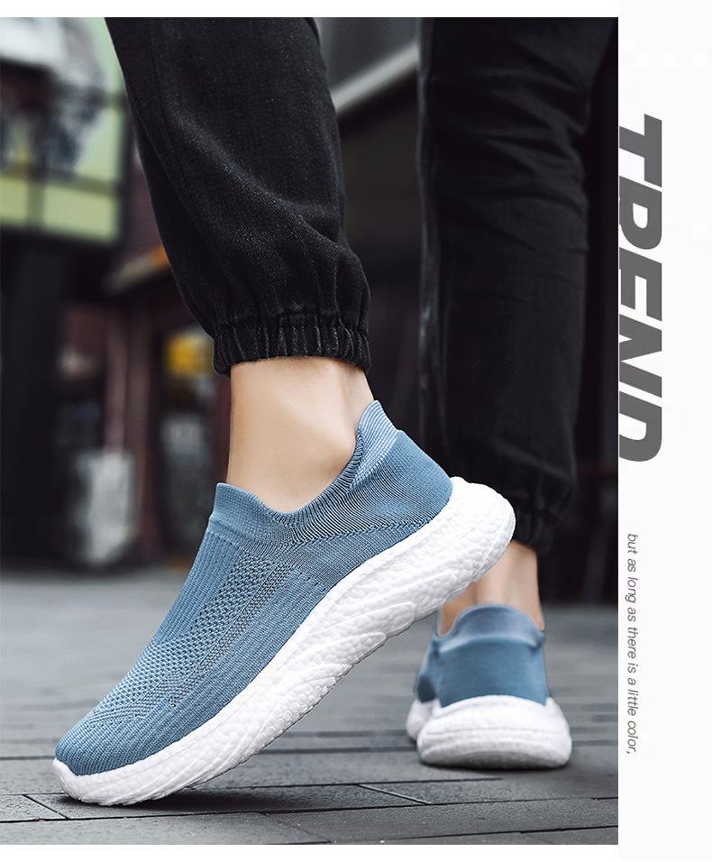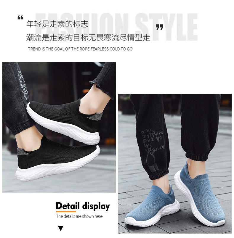 Zapatillas de verano para hombre, sin cordones, transpirables, con malla tejida voladora, suela de palomitas de maíz, ligeras y casuales.
