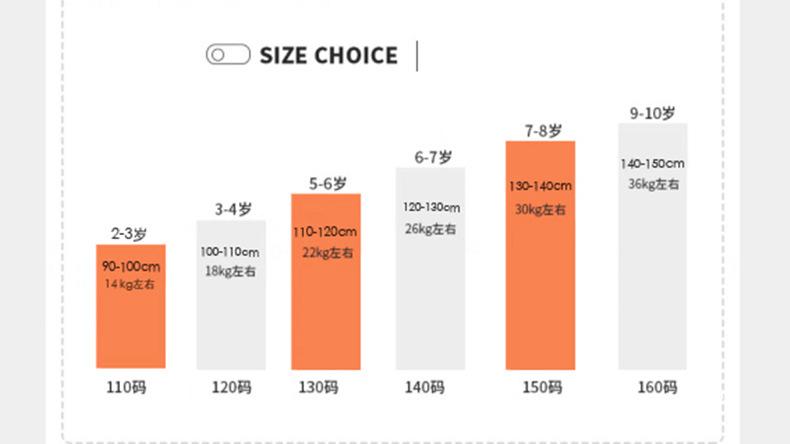 100cm, 110cm, 120cm, 130cm, 140cm, 150cm, 160cm
