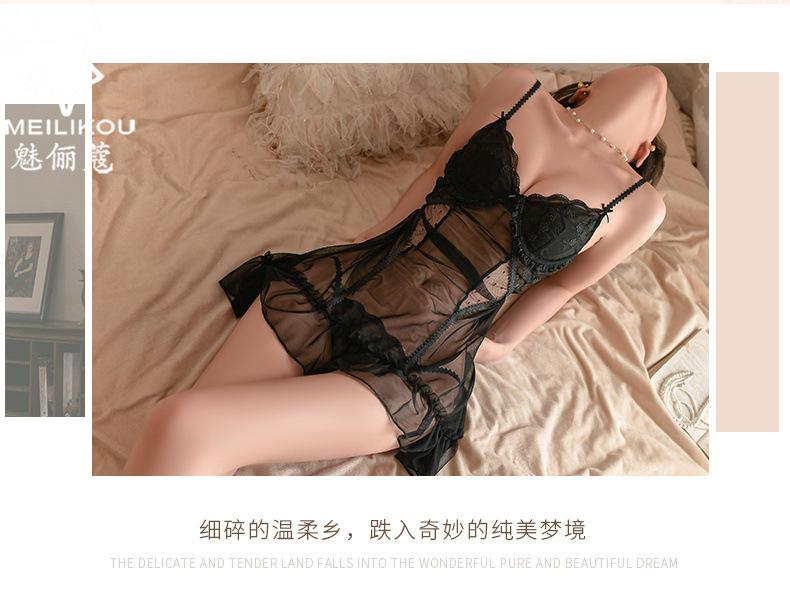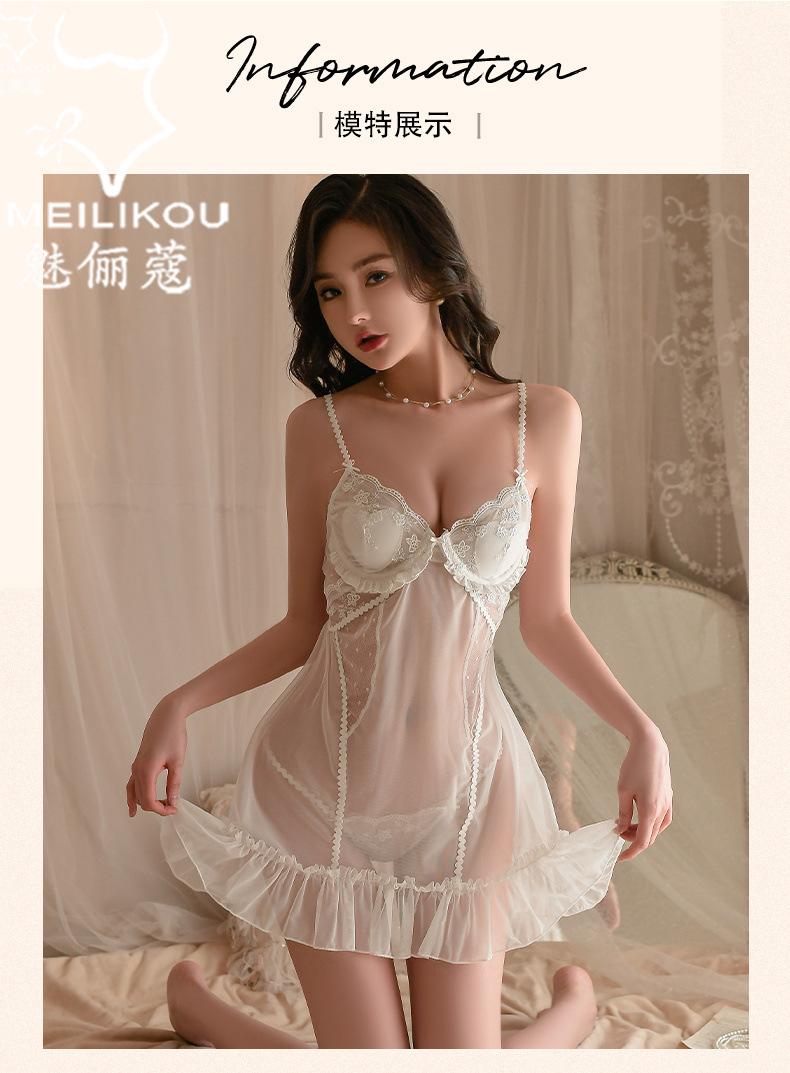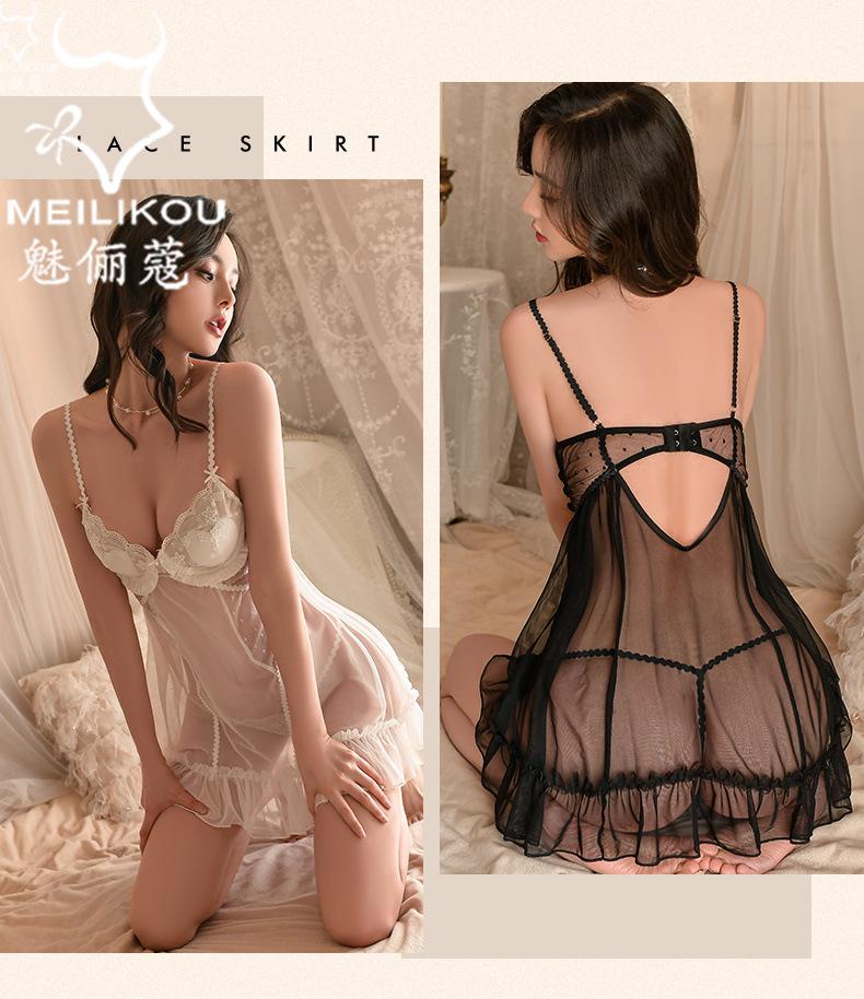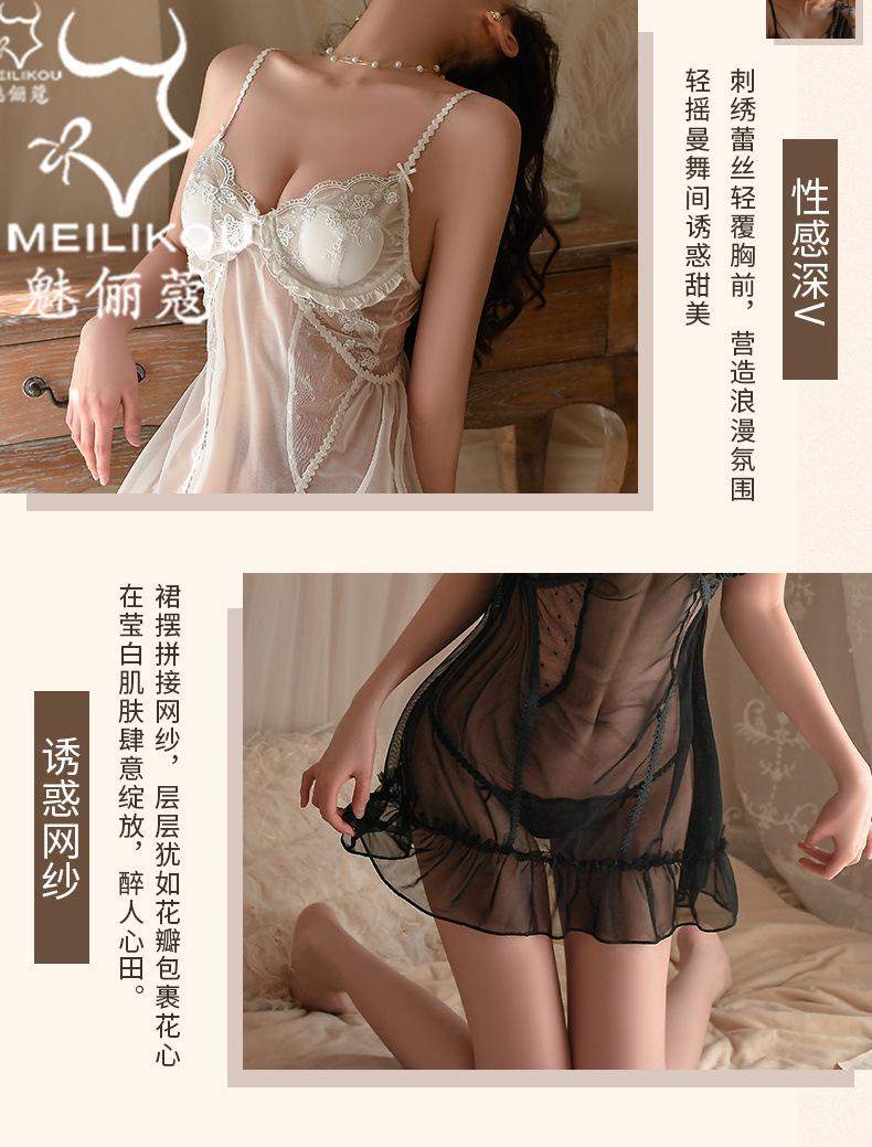 Camisón de Lencería Sexy Verano Fino con Almohadilla para el Busto Estilo Pura Lujuria para Mujer Conjunto de Camisón de Malla Transparente para el Hogar 2102