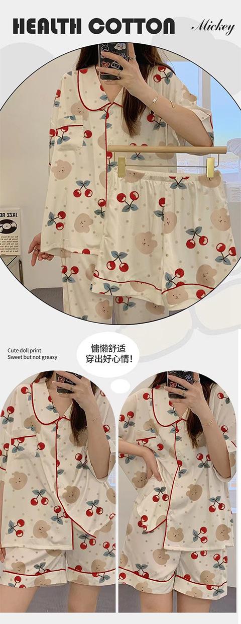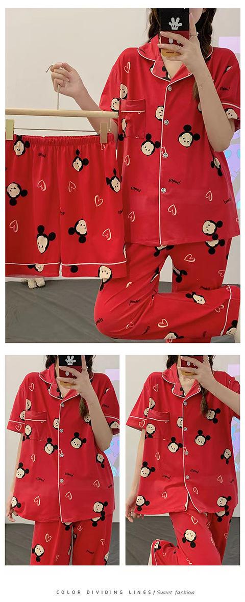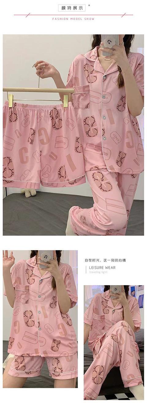 Pijama Nuevo de Verano para Mujer de Manga Corta, Pantalón, Cárdigan, Casual, Talla Grande, Ropa Exterior de Tres Piezas, Estilo Coreano, Traje de Ropa para el Hogar
