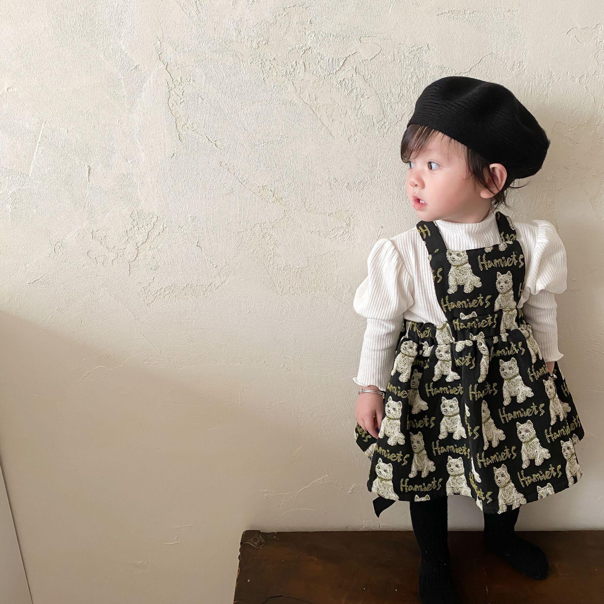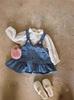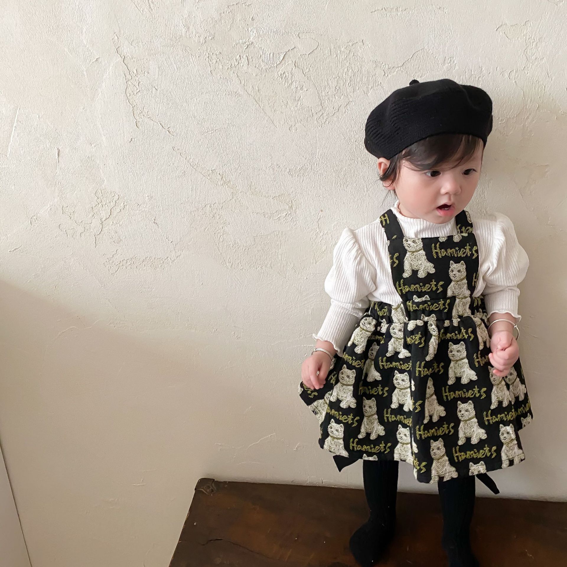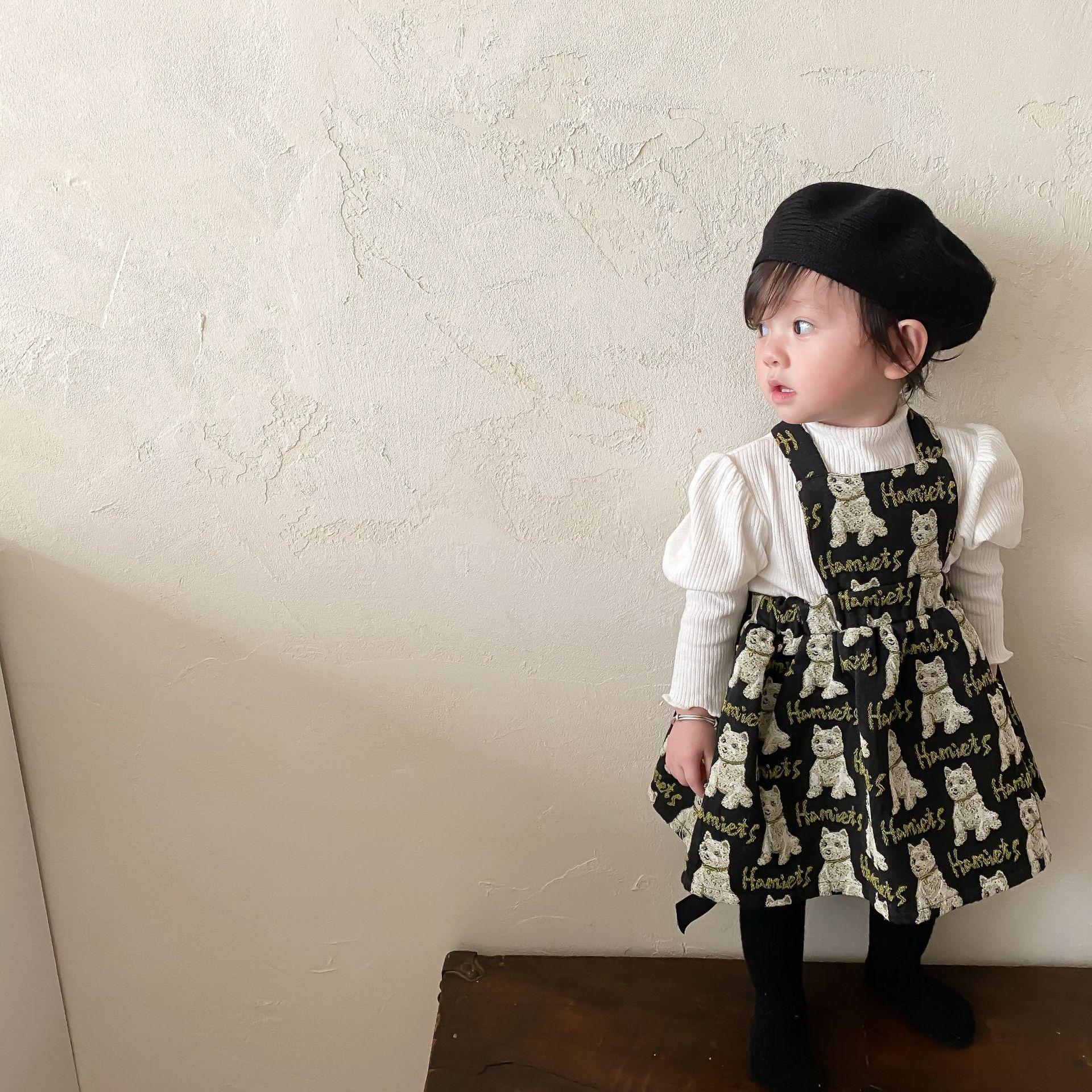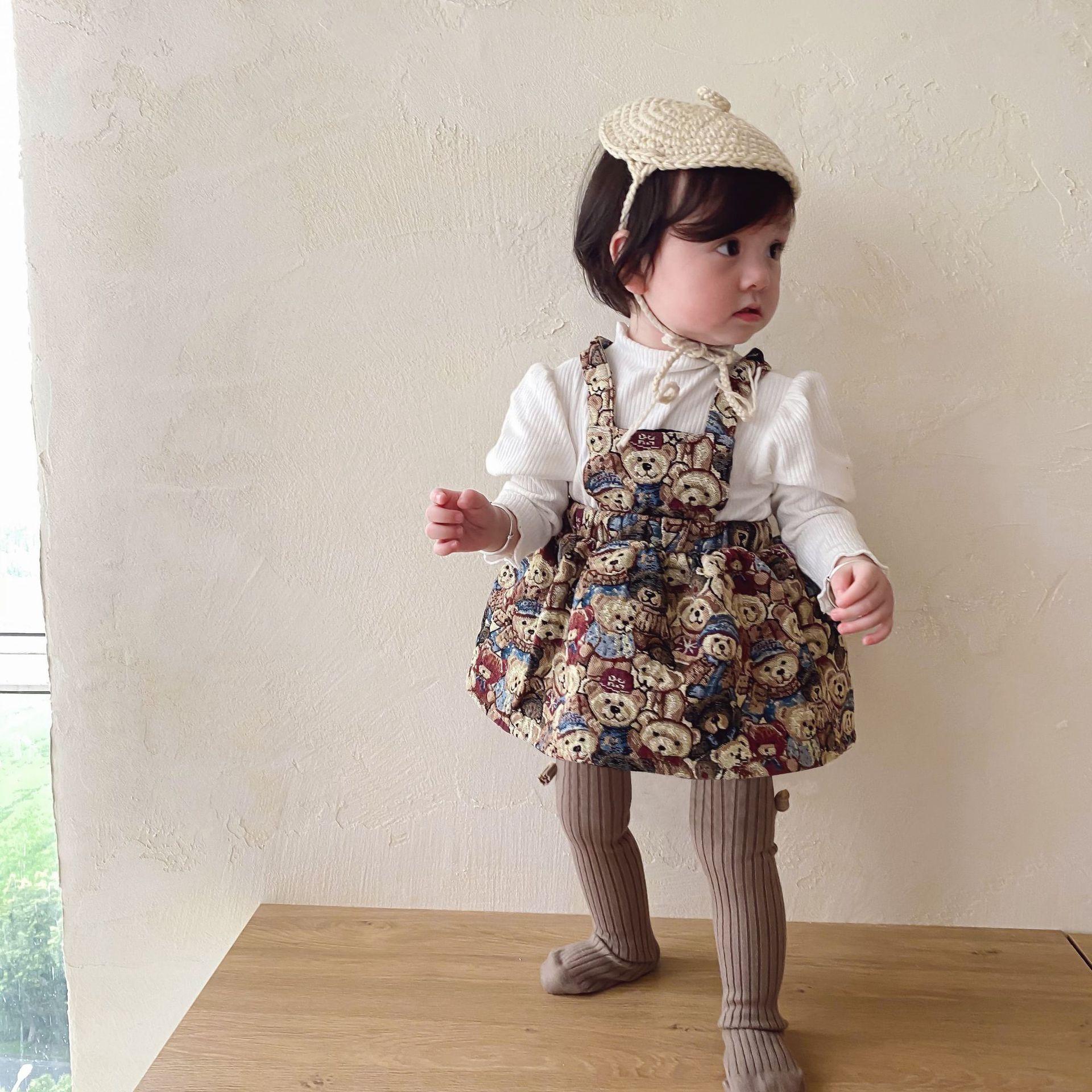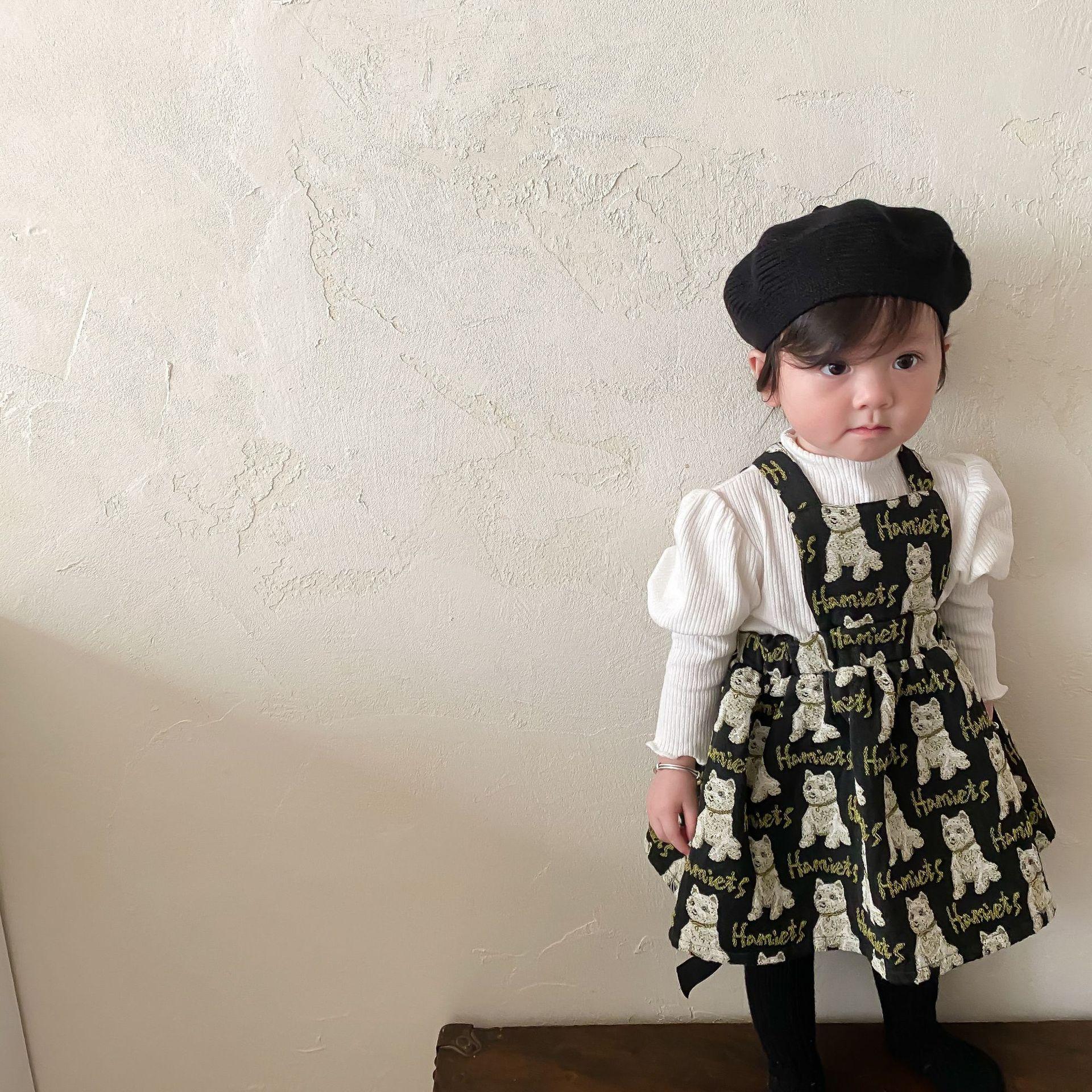 [Estilo de Gran Venta] Traje Niñas Falda de Tirantes Manga Abullonada Ropa Infantil Coreana Ropa Infantil para Bebé Primavera Niña
