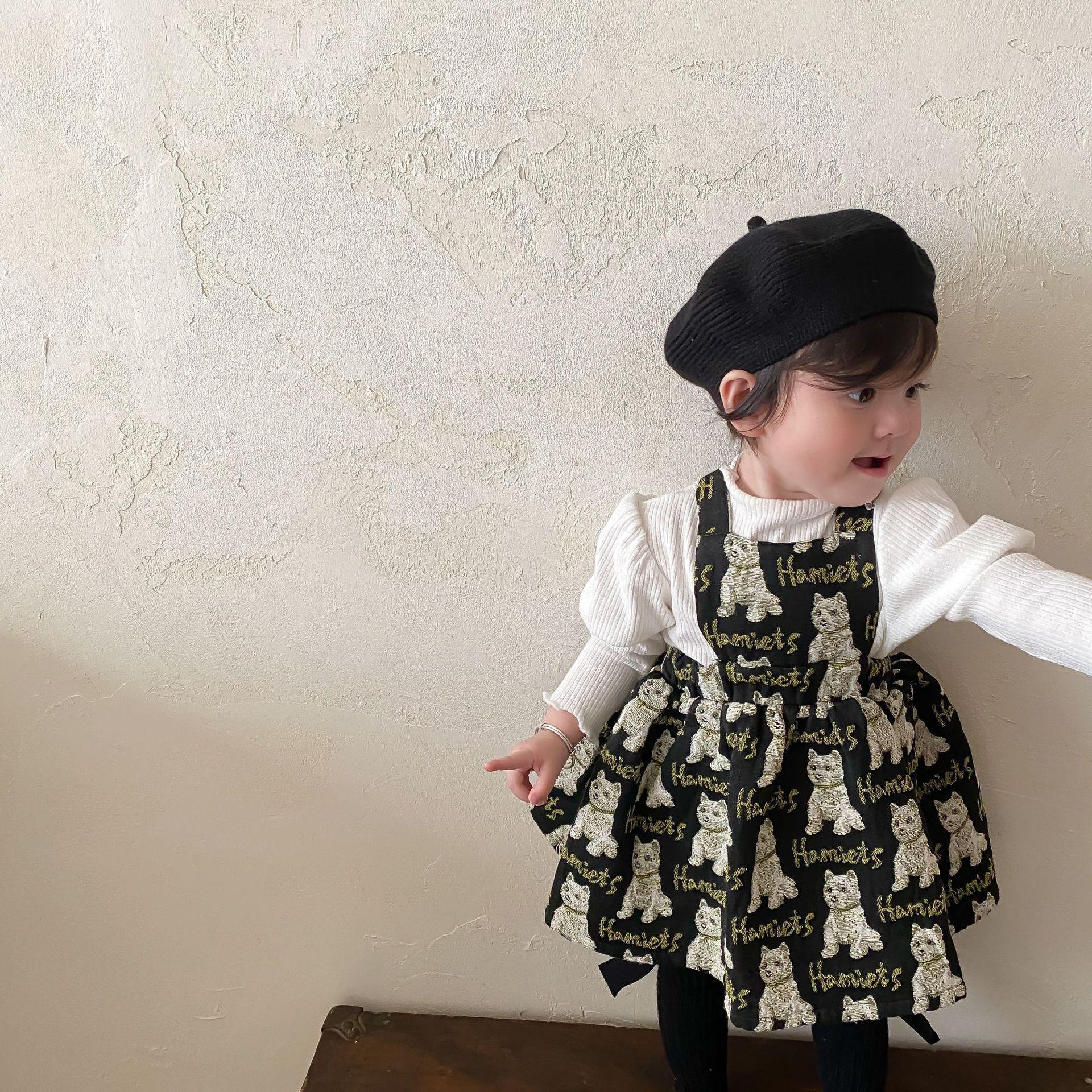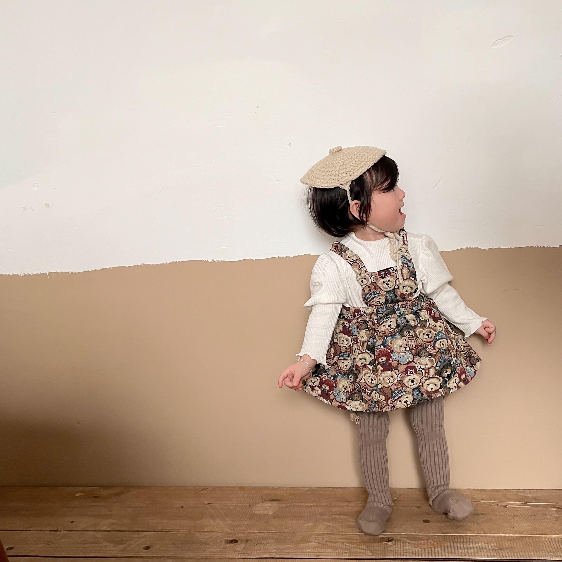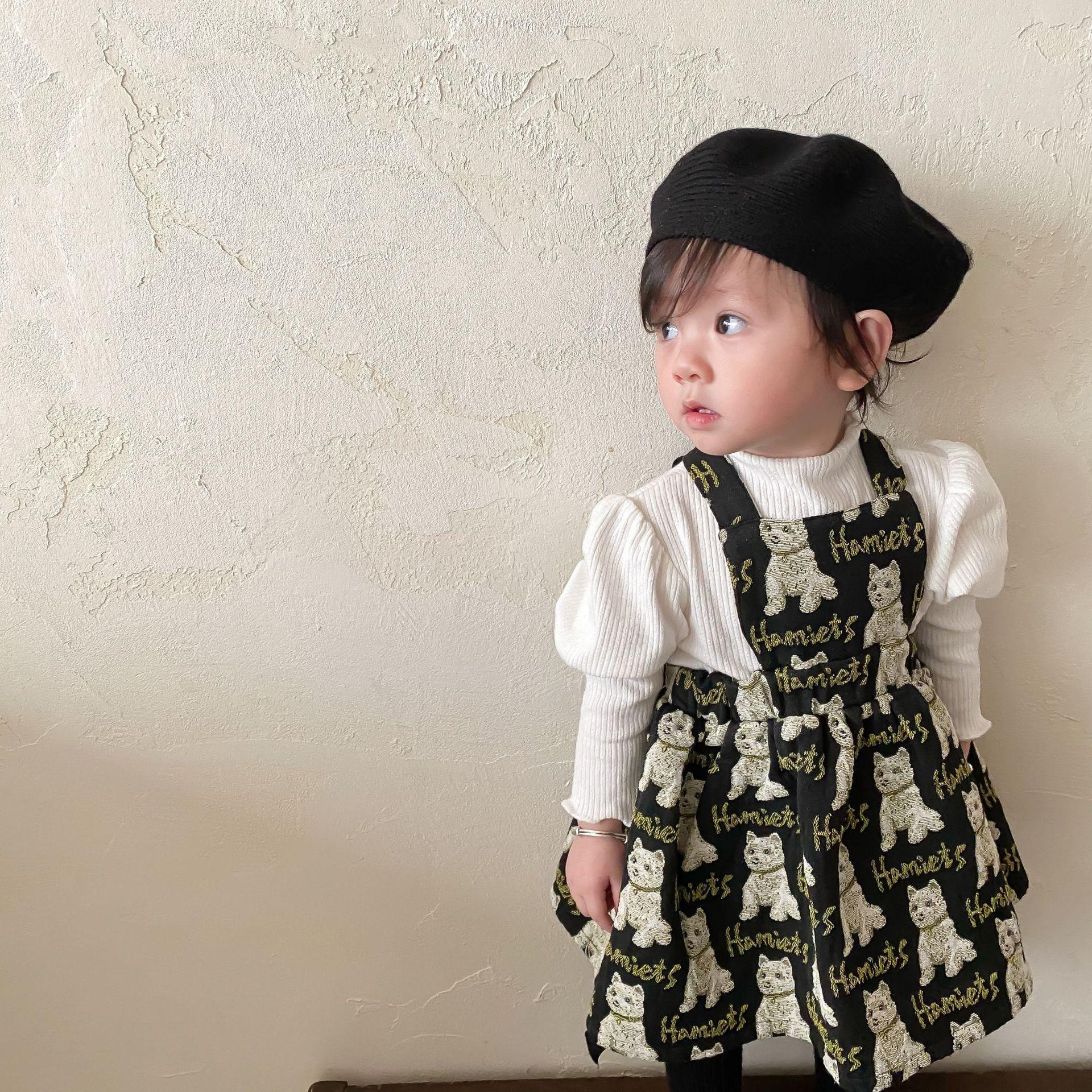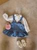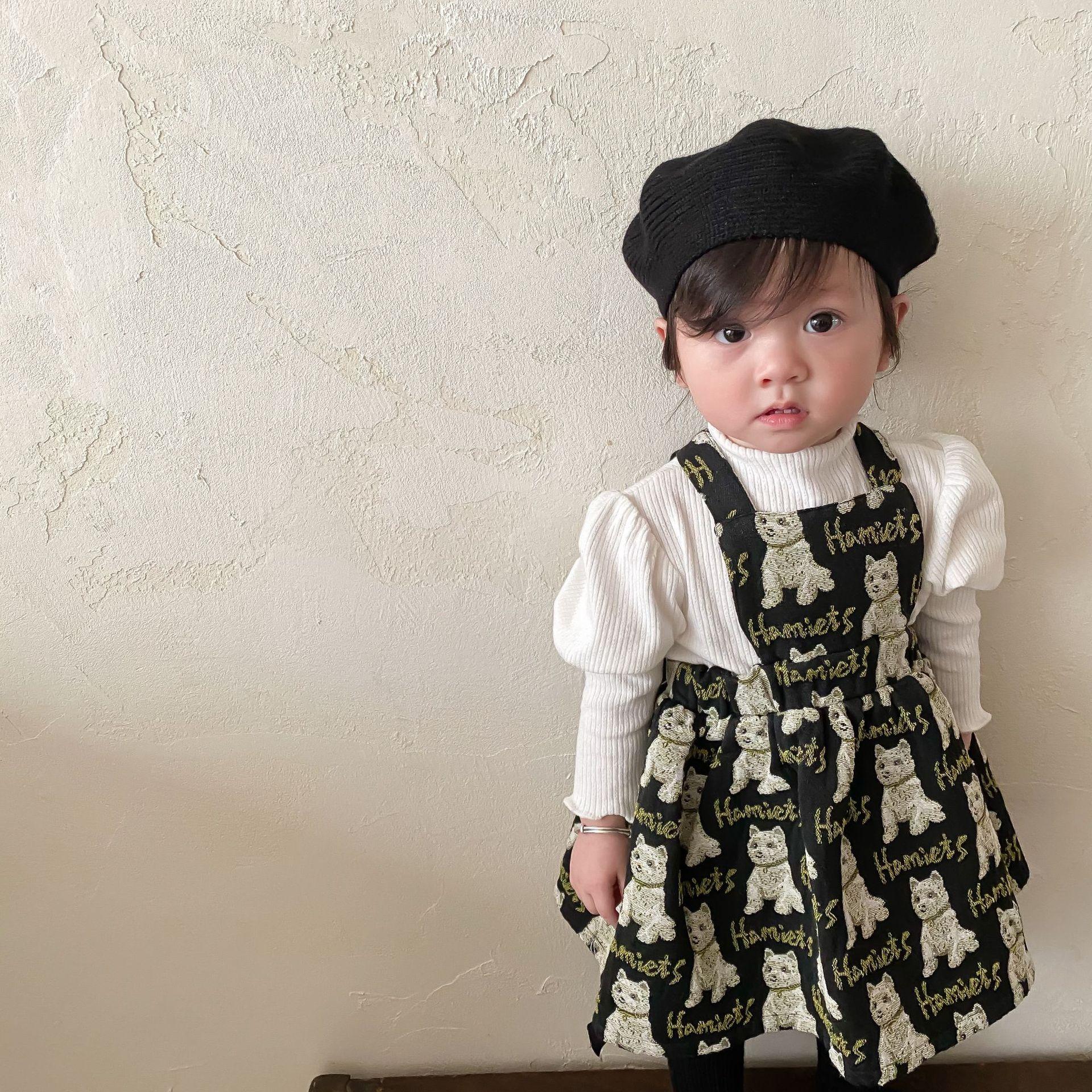 [Estilo de Gran Venta] Traje Niñas Falda de Tirantes Manga Abullonada Ropa Infantil Coreana Ropa Infantil para Bebé Primavera Niña
