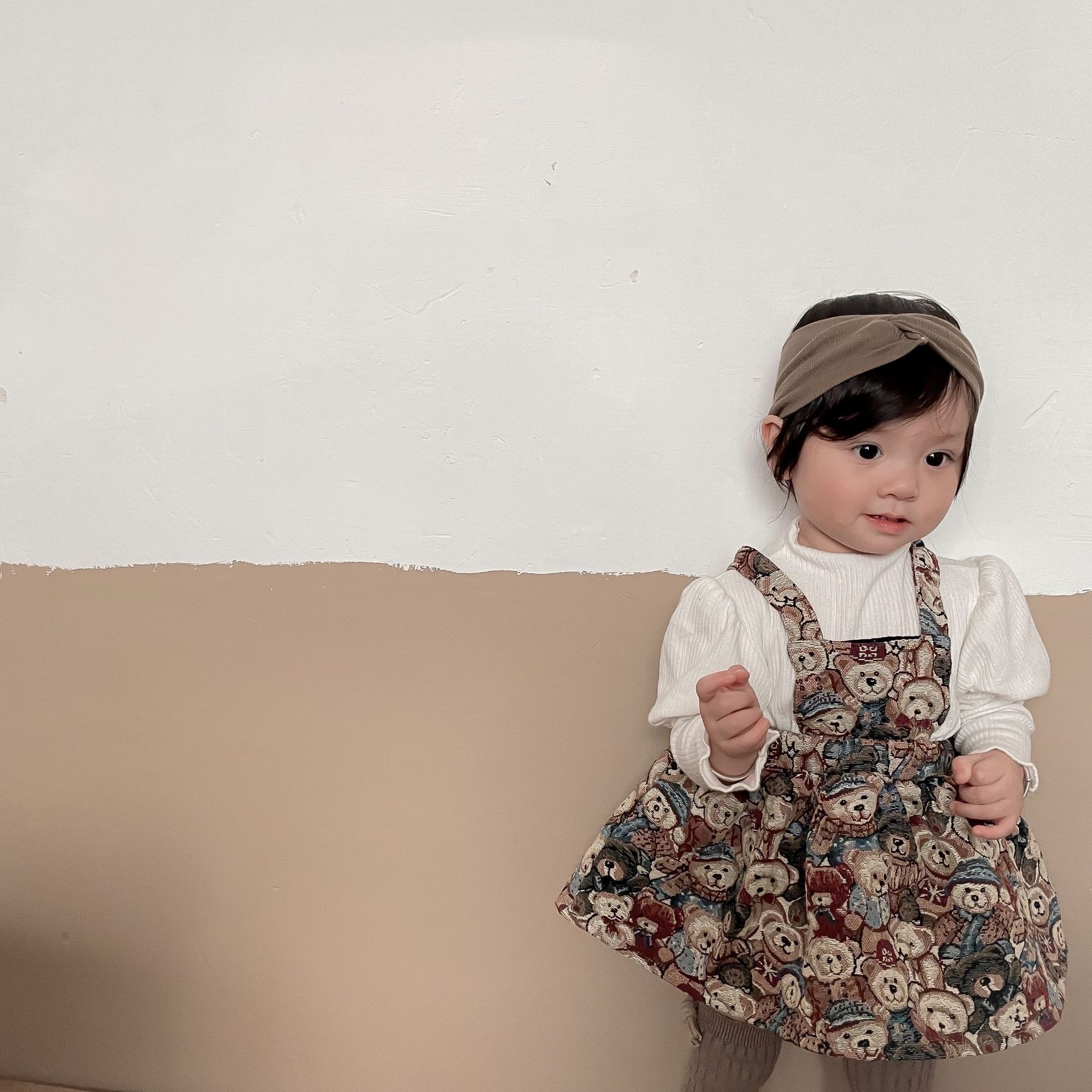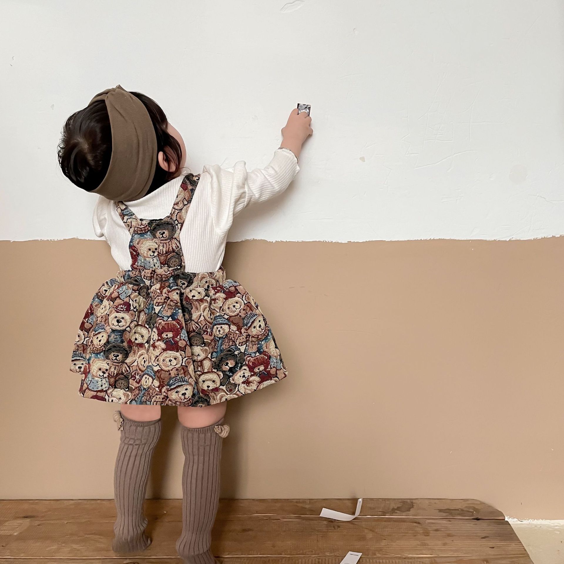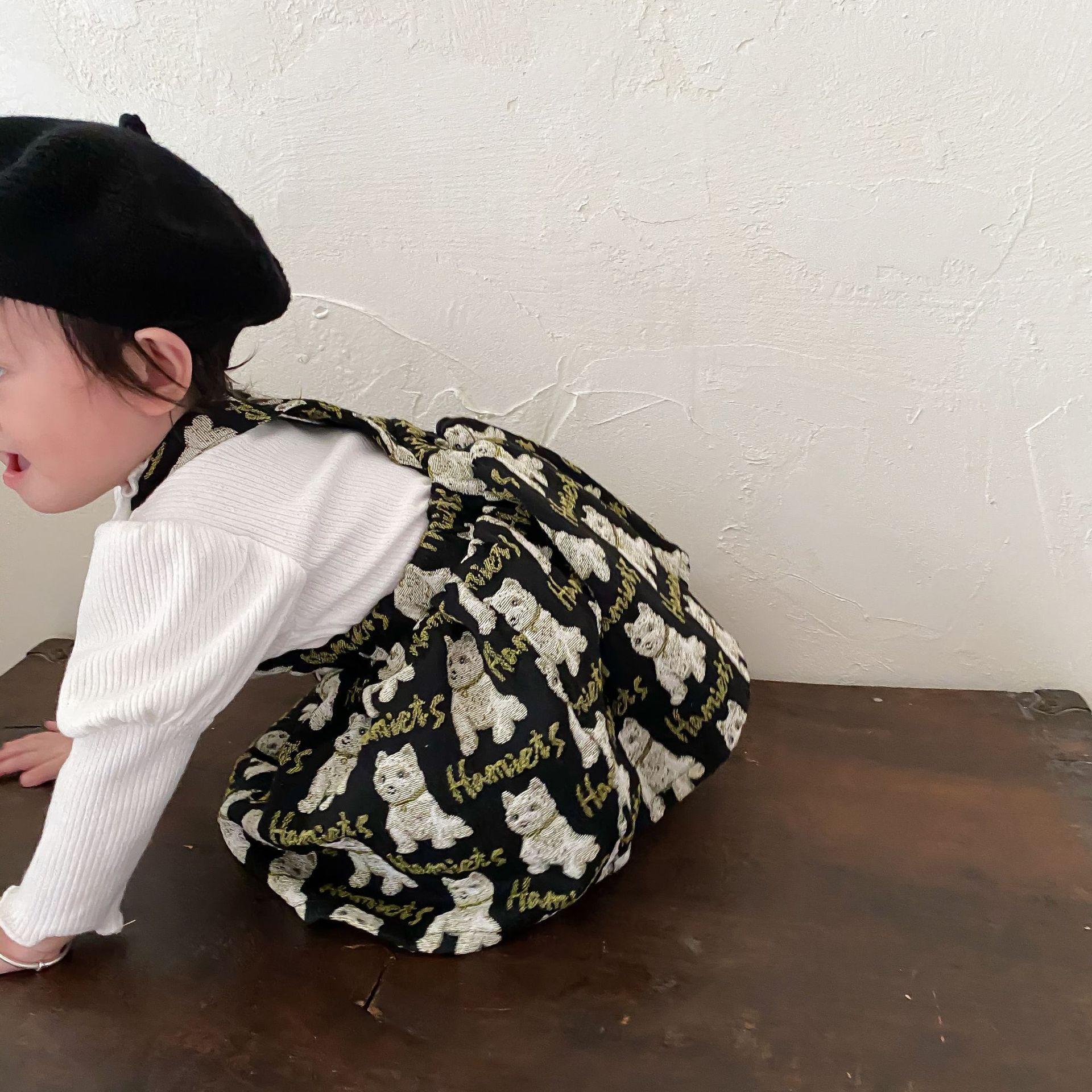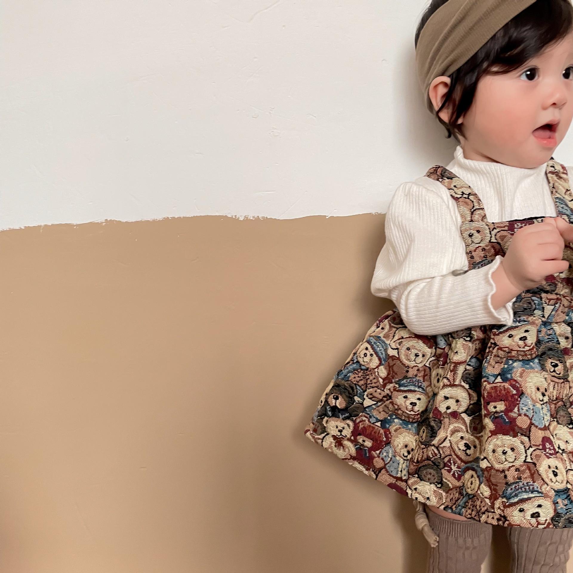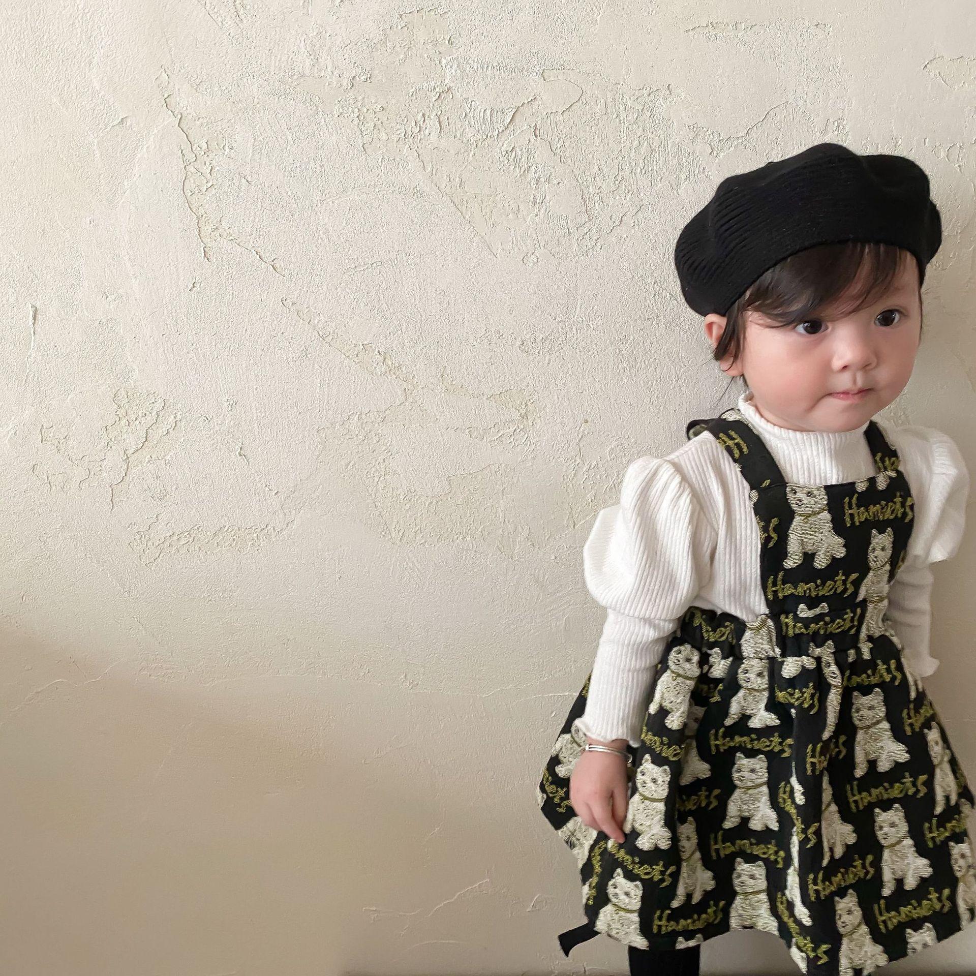[Estilo de Gran Venta] Traje Niñas Falda de Tirantes Manga Abullonada Ropa Infantil Coreana Ropa Infantil para Bebé Primavera Niña