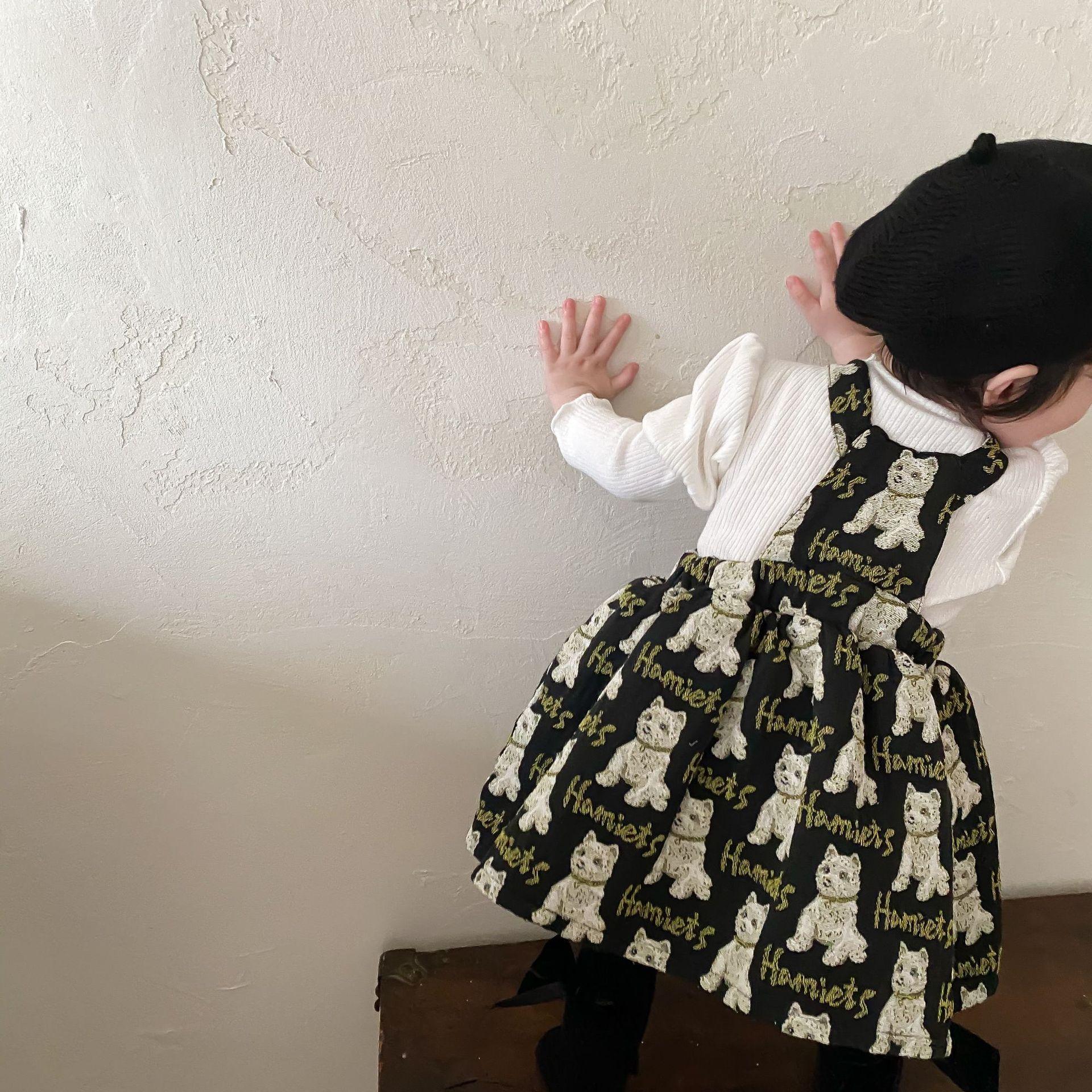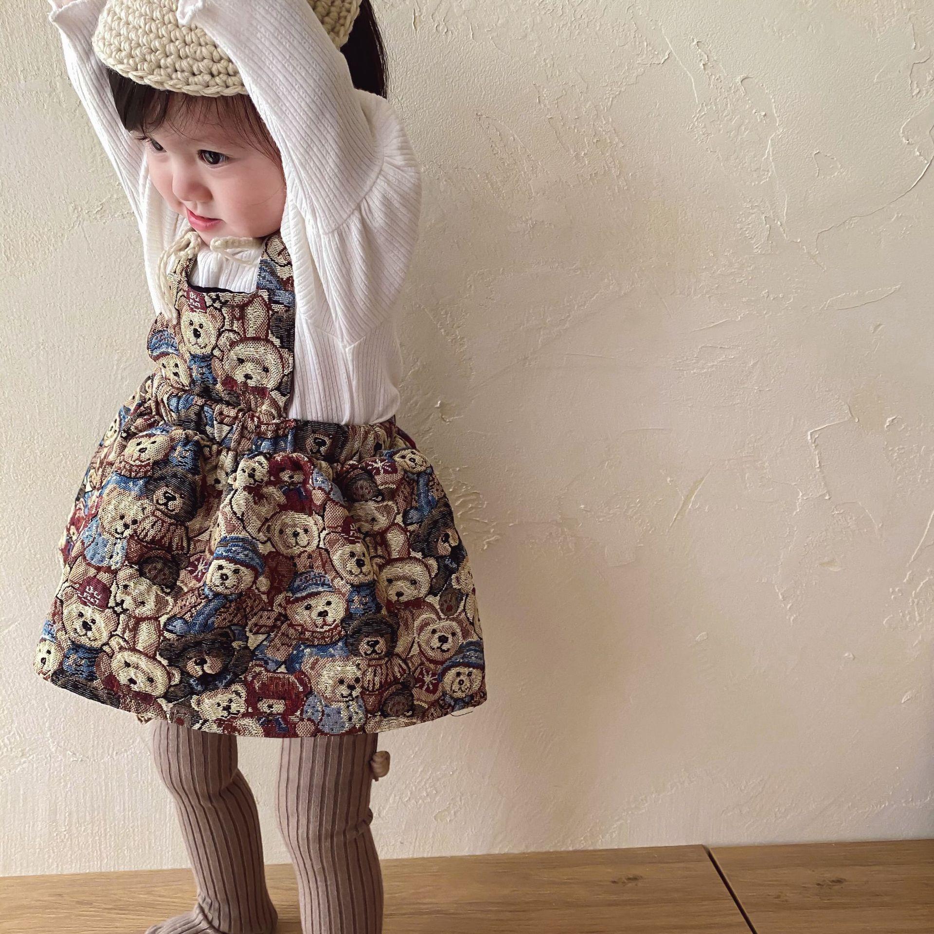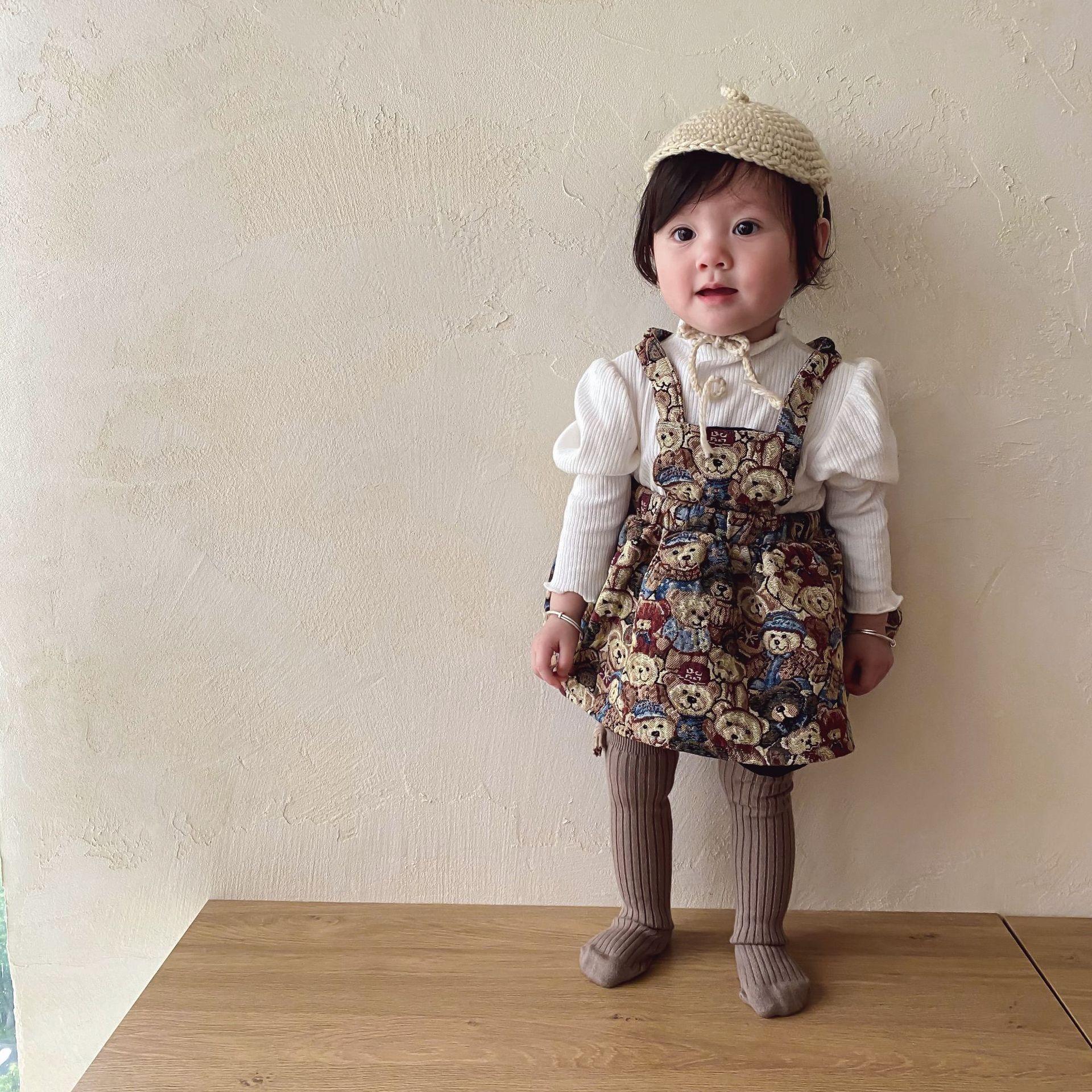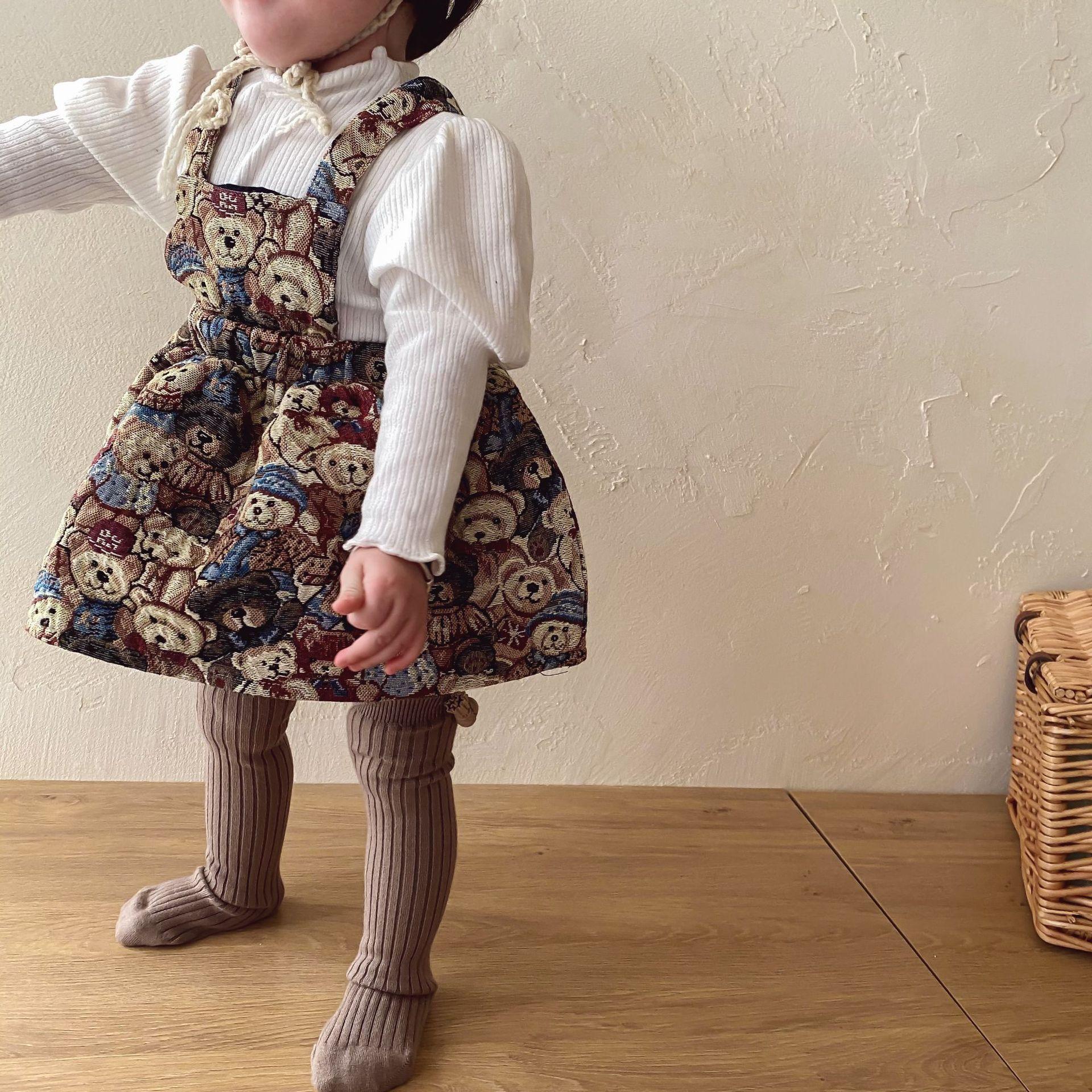 [Estilo de Gran Venta] Traje Niñas Falda de Tirantes Manga Abullonada Ropa Infantil Coreana Ropa Infantil para Bebé Primavera Niña