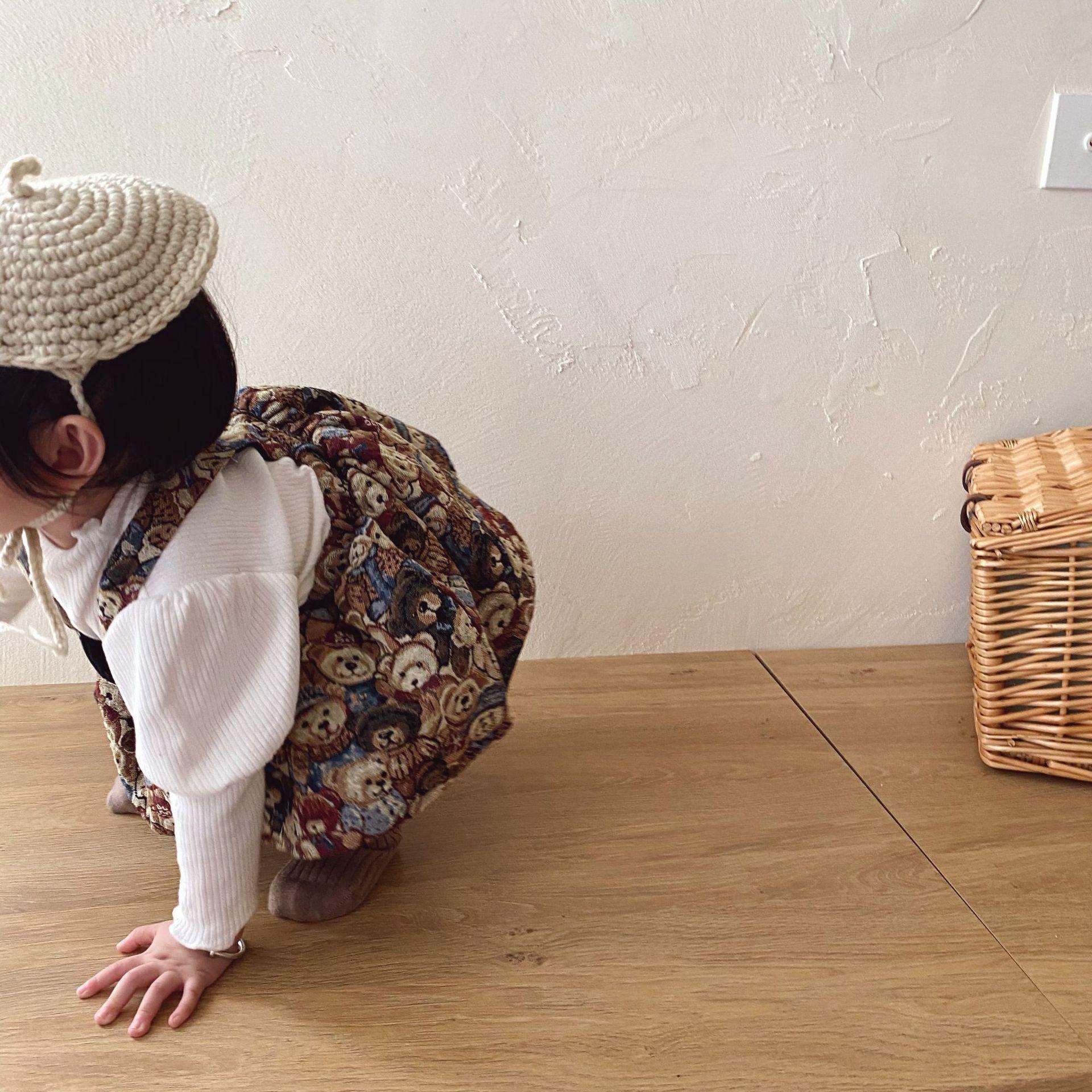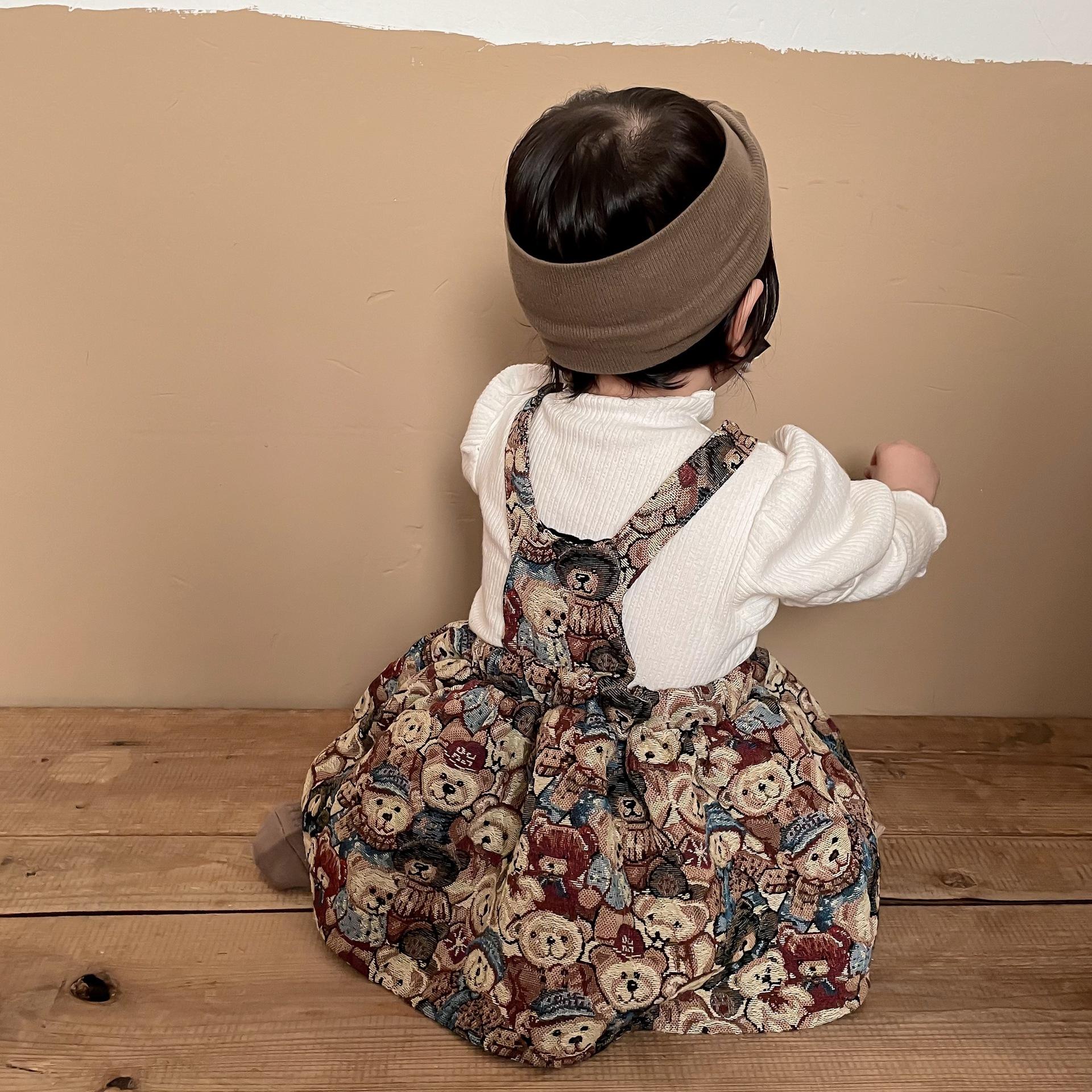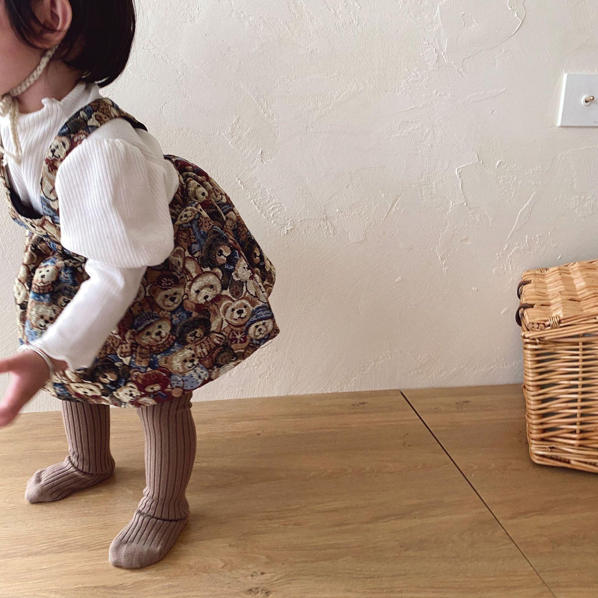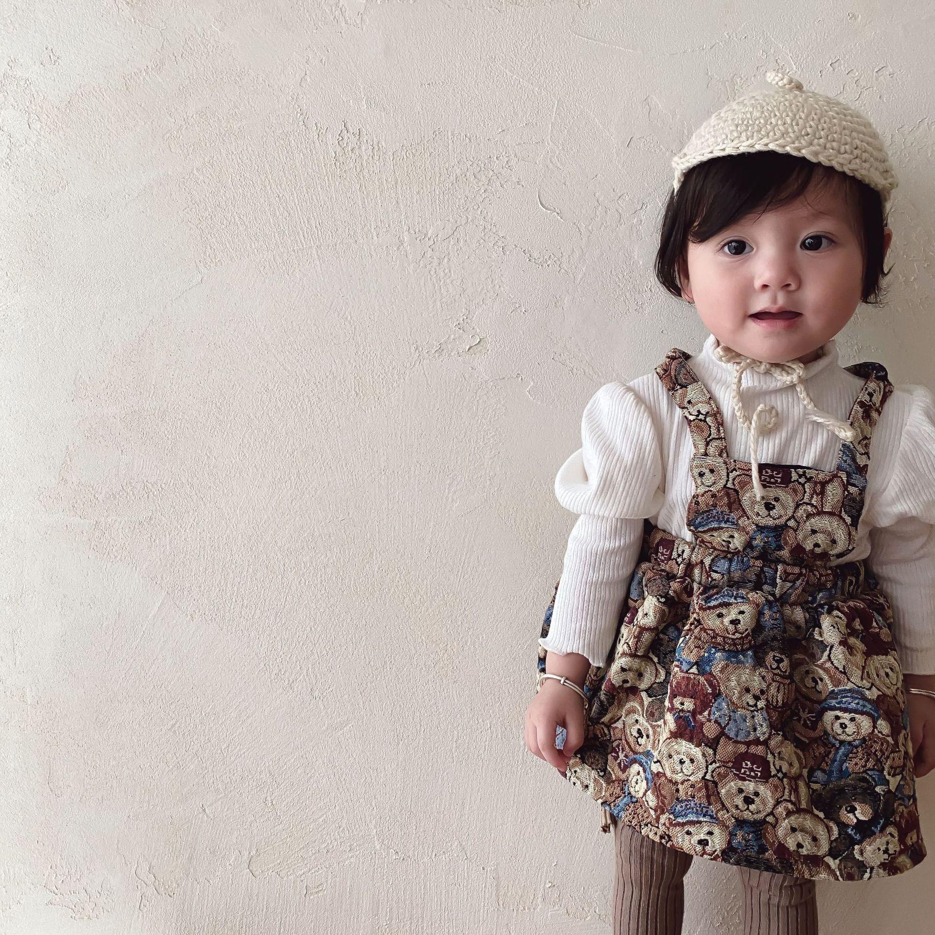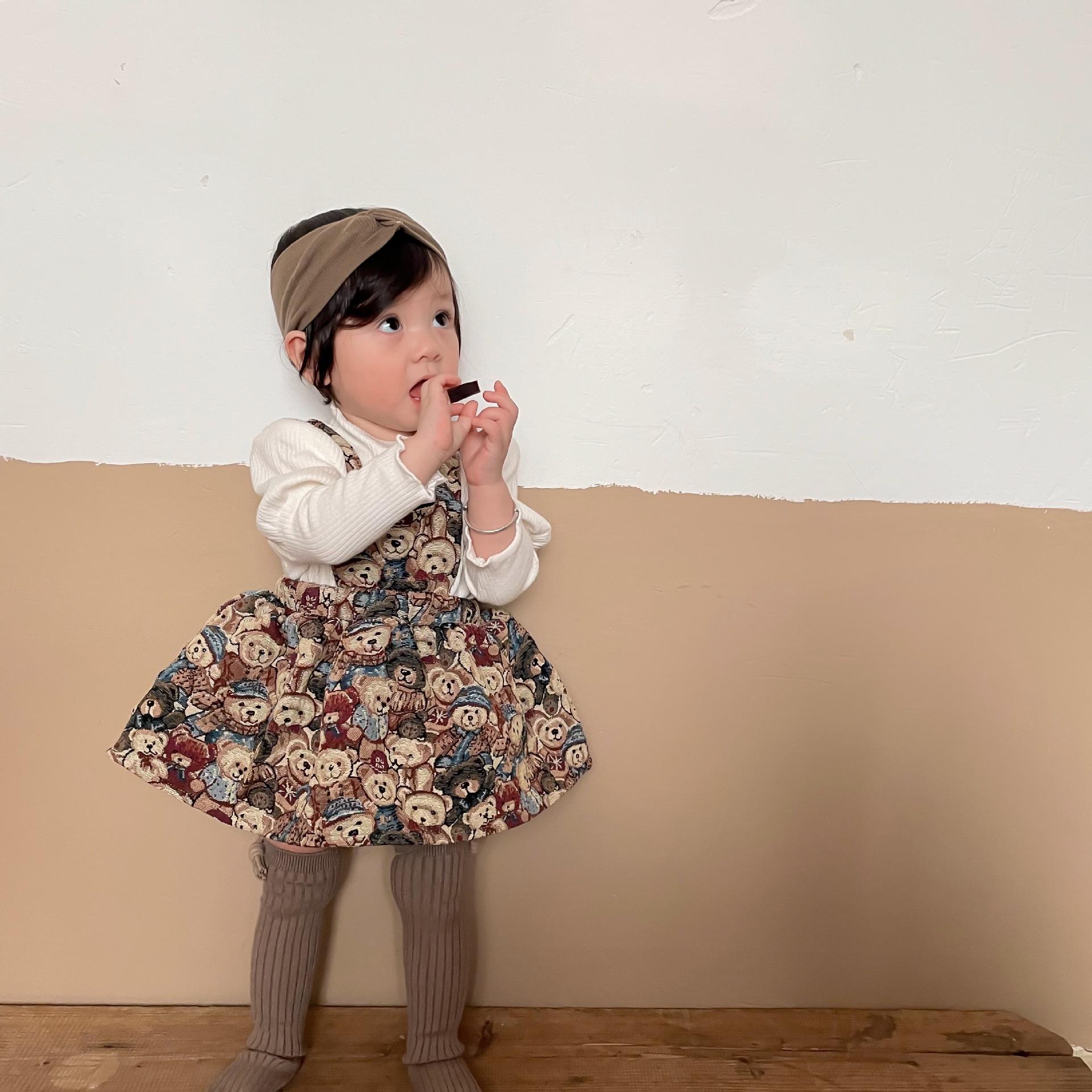 [Estilo de Gran Venta] Traje Niñas Falda de Tirantes Manga Abullonada Ropa Infantil Coreana Ropa Infantil para Bebé Primavera Niña