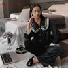 Conjunto de pijama de terciopelo para otoño e invierno para mujer, suave, sin aros, con almohadilla en el pecho, pantalones de manga larga, cálido para estar en casa, primavera y otoño