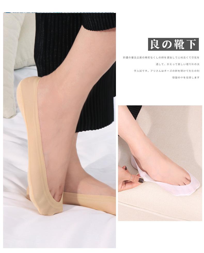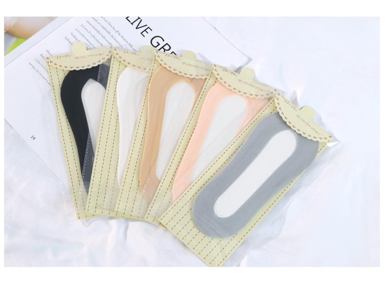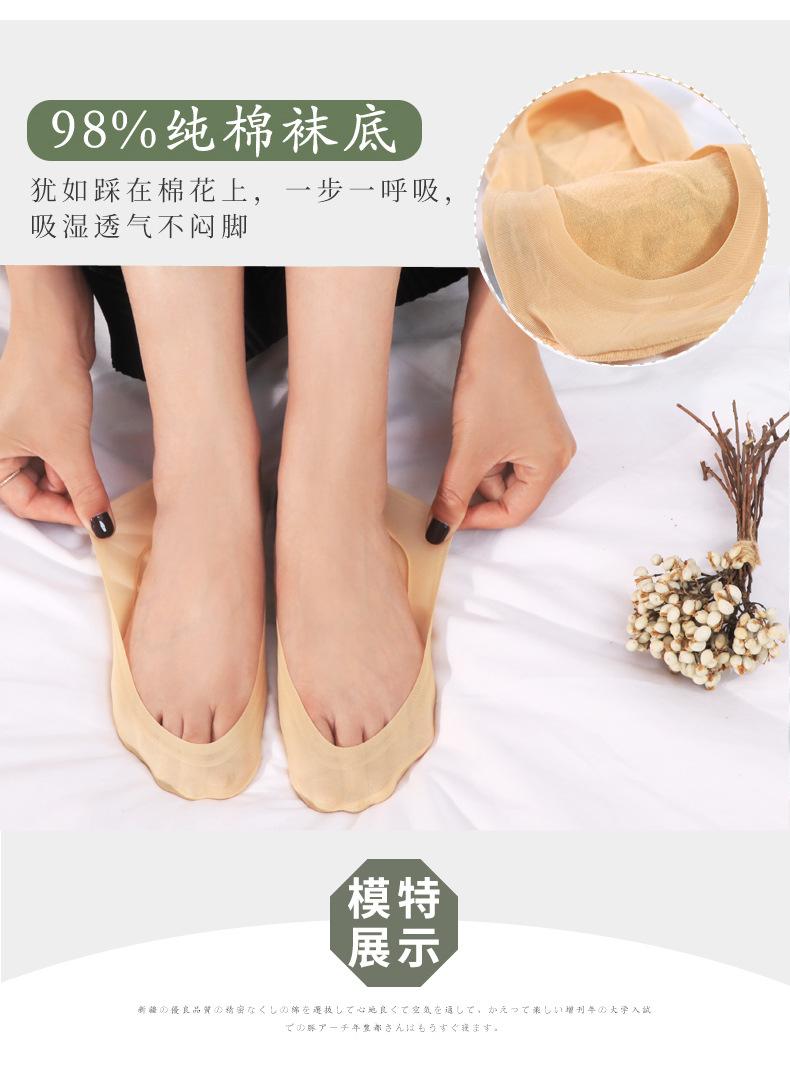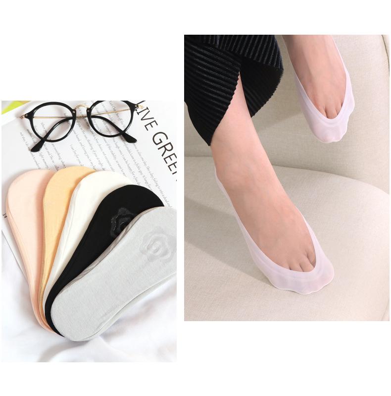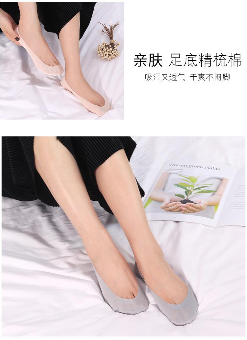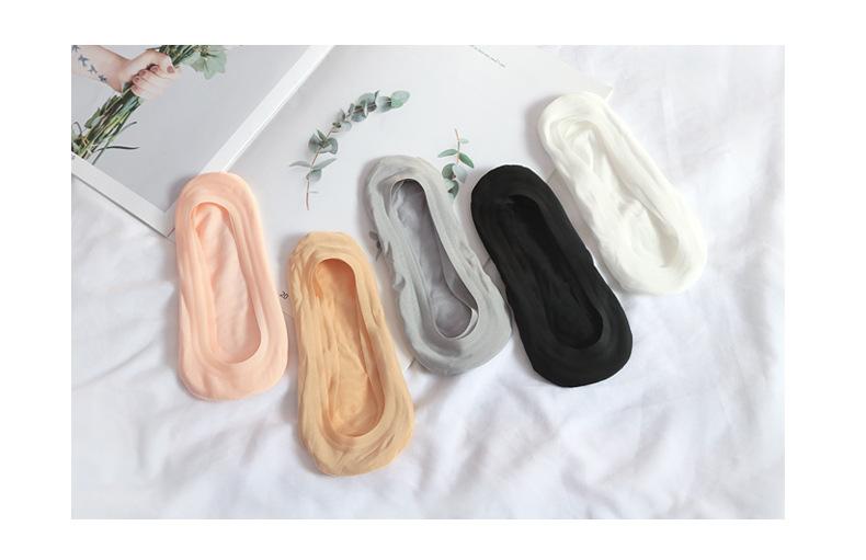 Calcetines de seda de hielo de verano para mujer, invisibles, antideslizantes, de silicona, de algodón, finos, de color liso