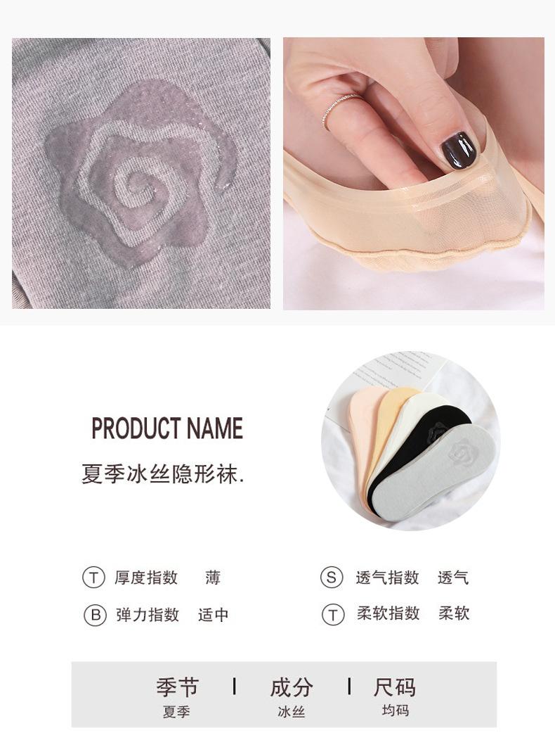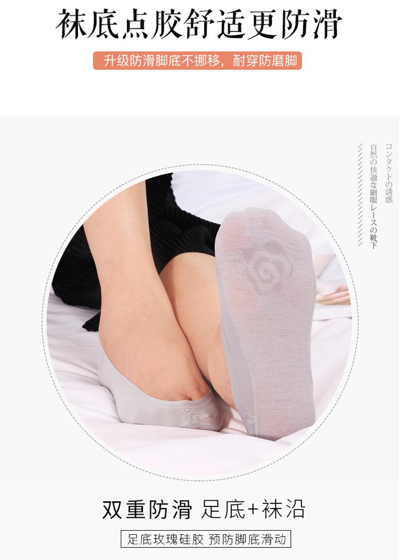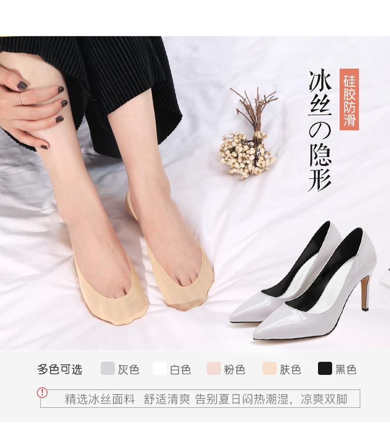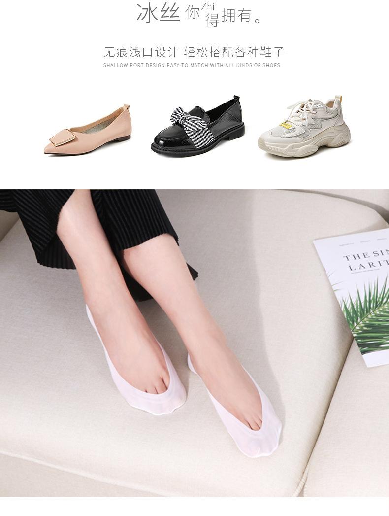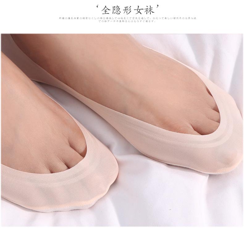 Calcetines de seda de hielo de verano para mujer, invisibles, antideslizantes, de silicona, de algodón, finos, de color liso