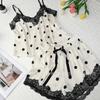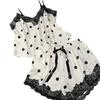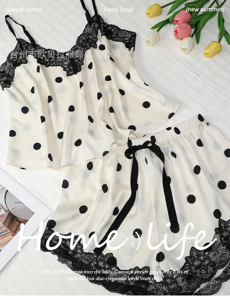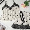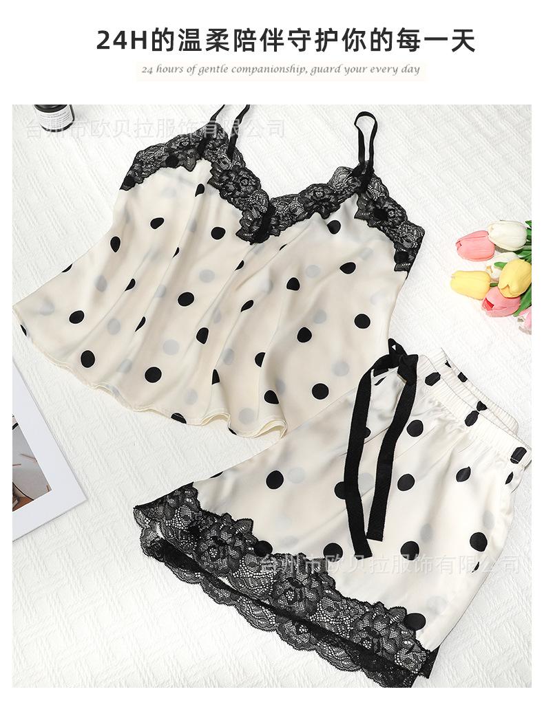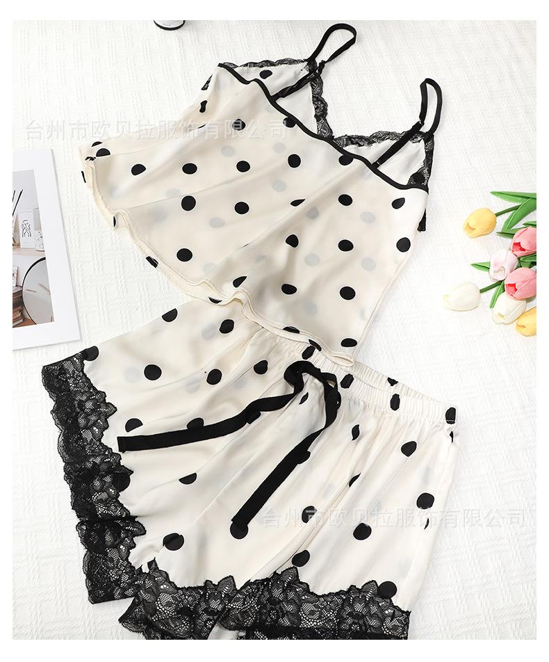 Pantalones cortos de dos piezas con escote en V y tirantes finos y bonitos de seda helada para primavera y verano.