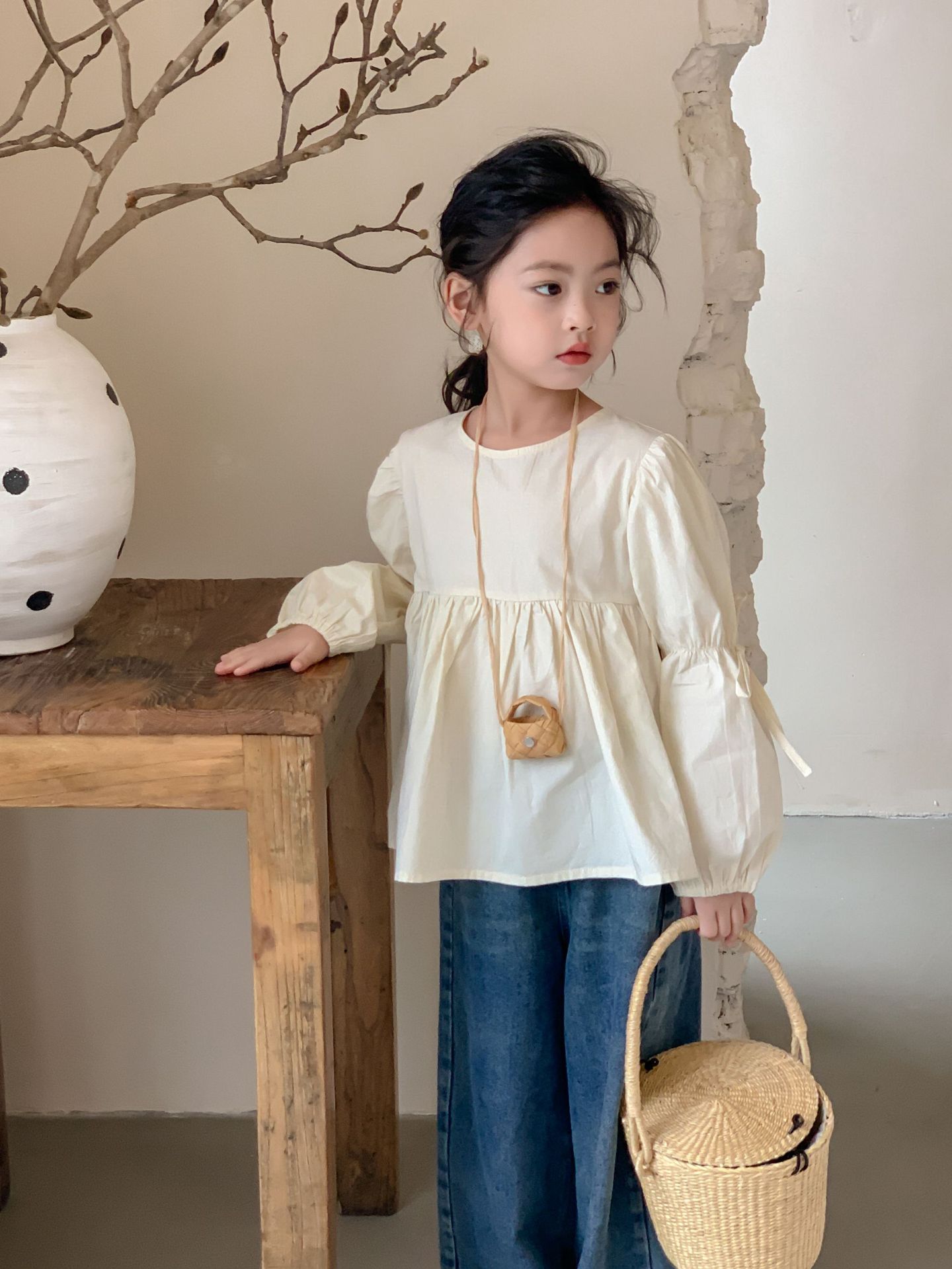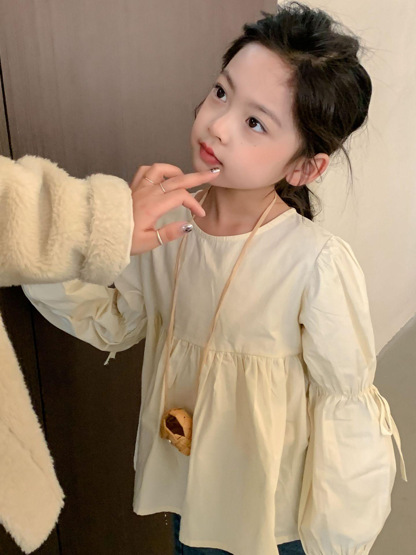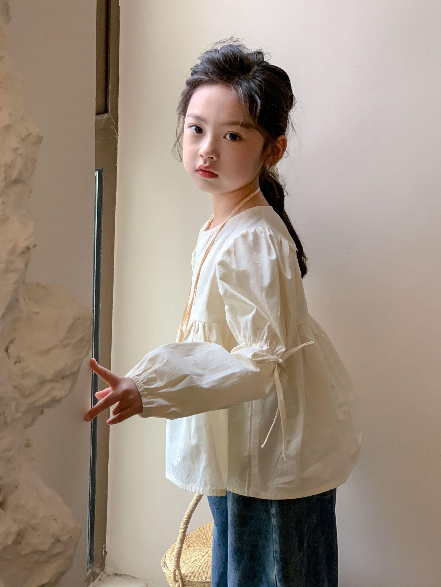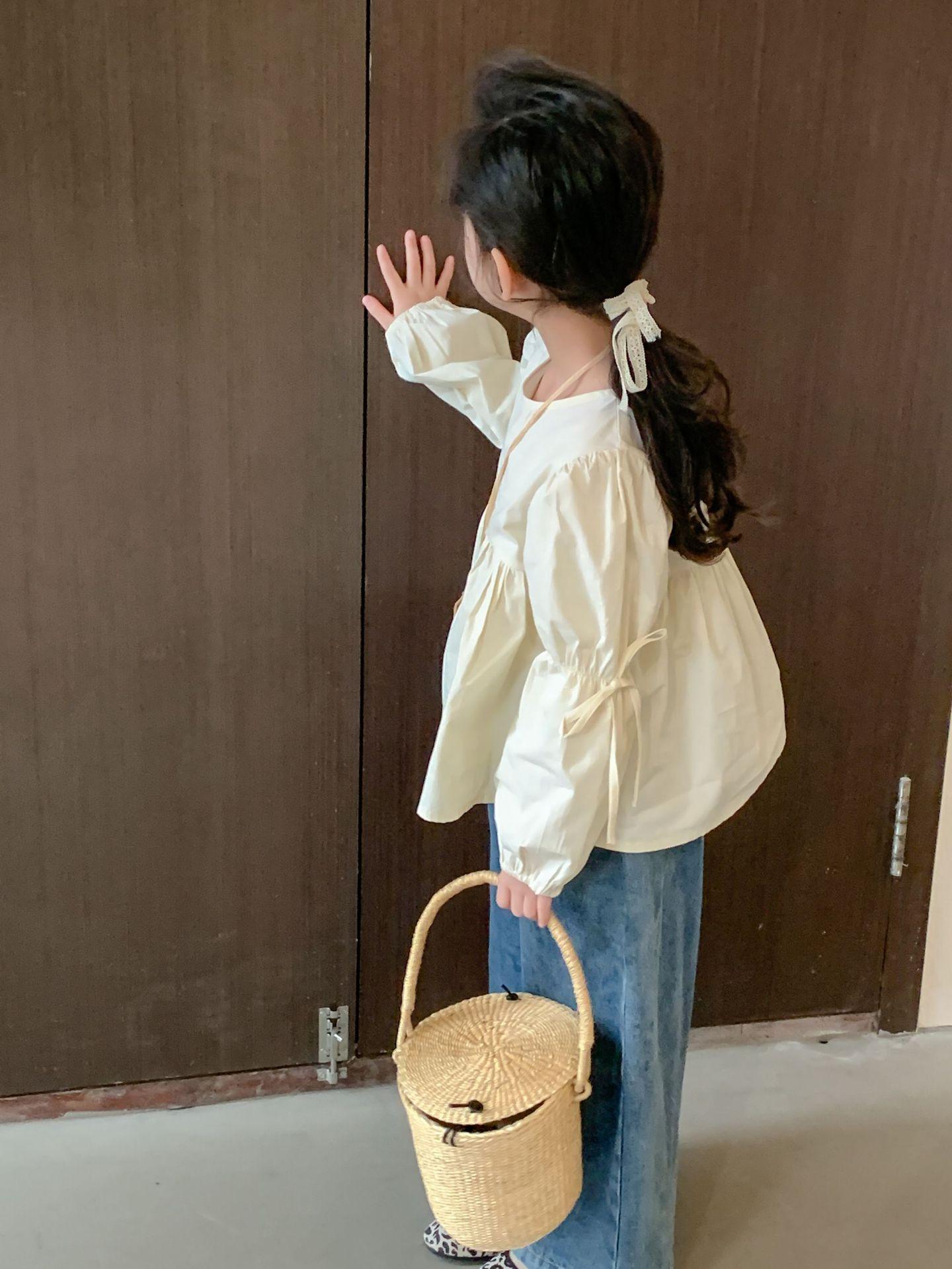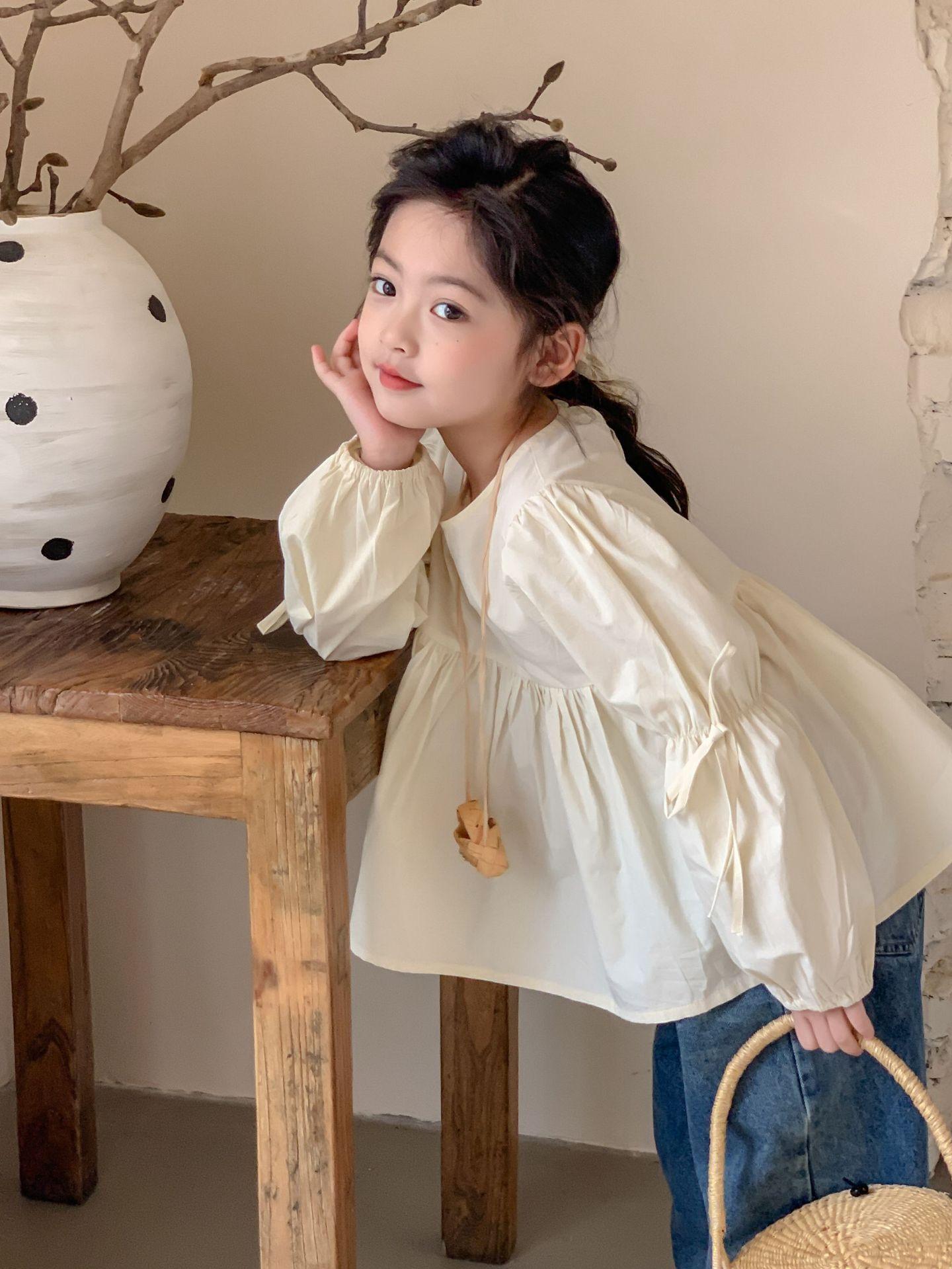 Ropa Infantil INS Primavera 2024 Camisa de Muñeca de Manga Larga con Lazo para Niñas Camisa Estilo Coreano Top