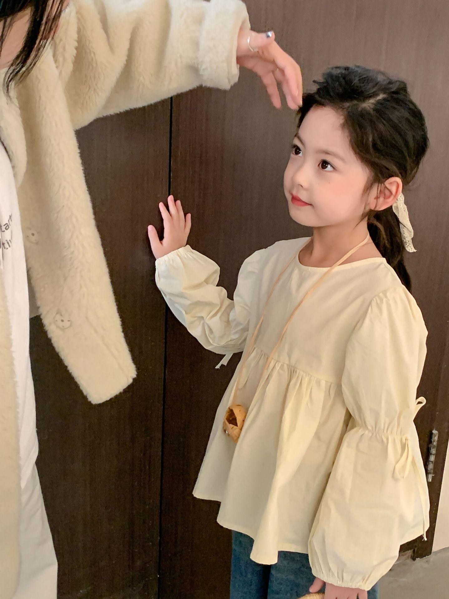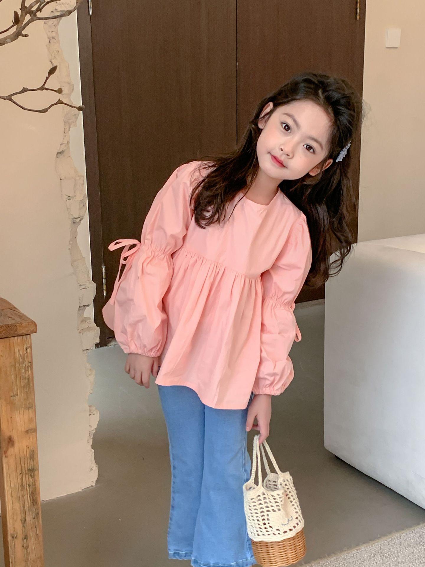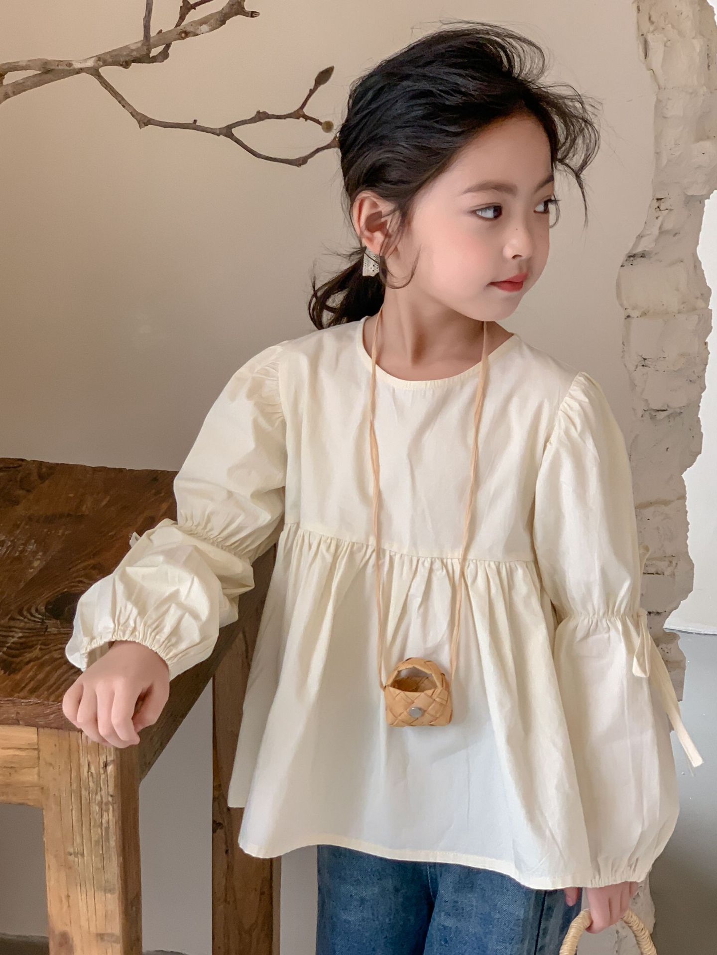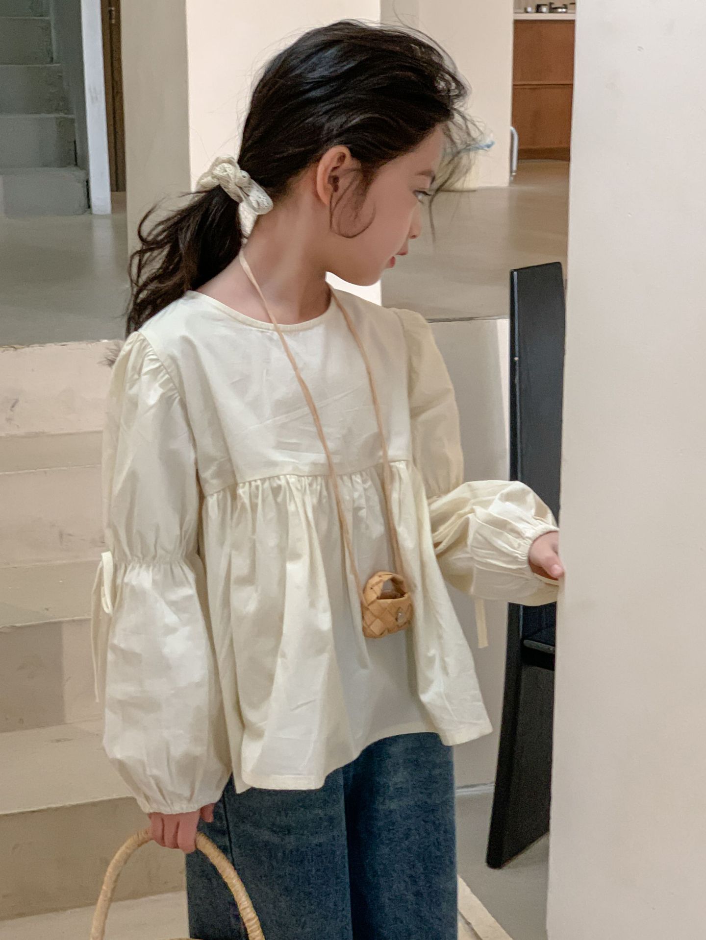 Ropa Infantil INS Primavera 2024 Camisa de Muñeca de Manga Larga con Lazo para Niñas Camisa Estilo Coreano Top