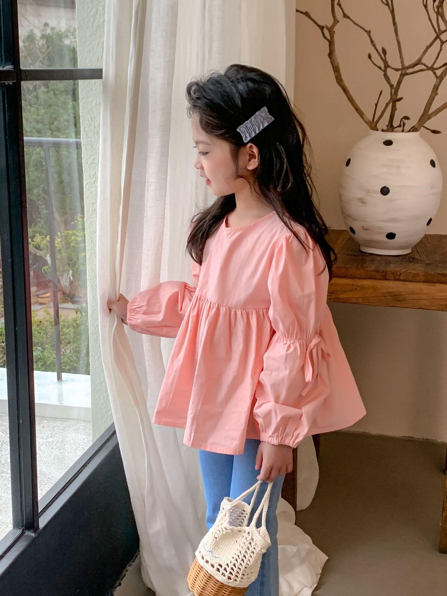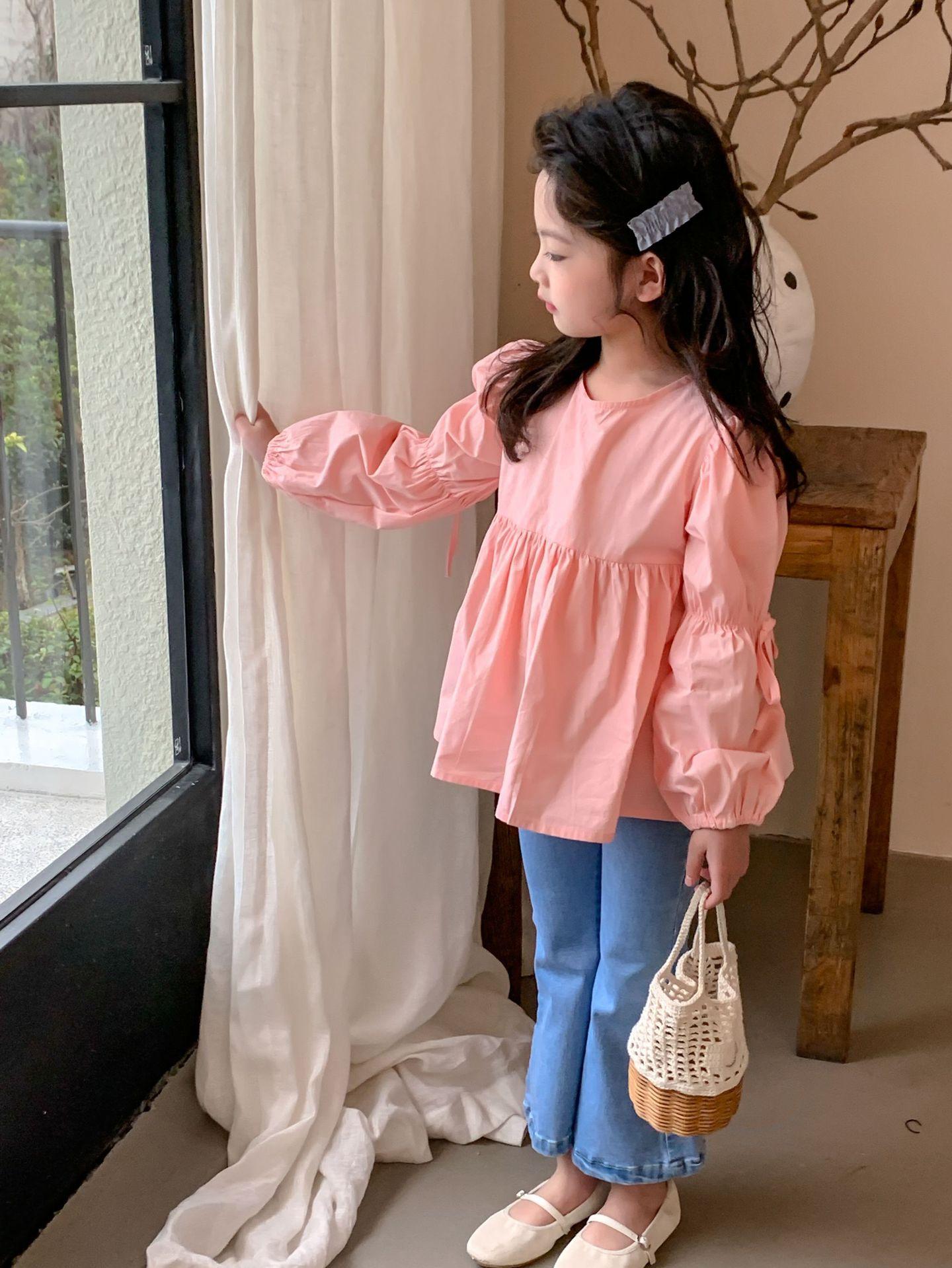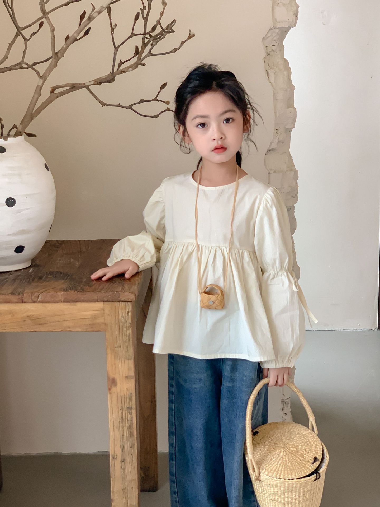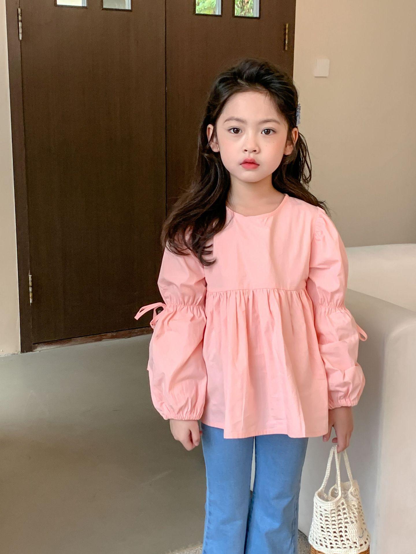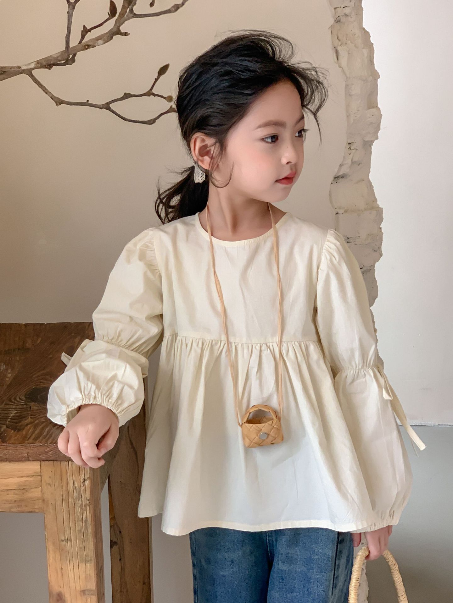 Ropa Infantil INS Primavera 2024 Camisa de Muñeca de Manga Larga con Lazo para Niñas Camisa Estilo Coreano Top